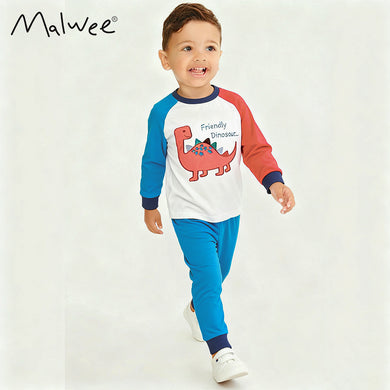 10598TG-秋冬圓領恐龍長袖上衣+長褲套