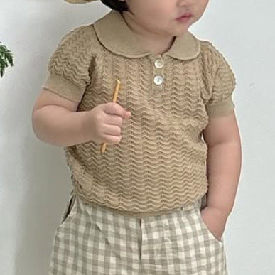 MY7501SE-夏季男女童小翻領氣質提花兩粒扣短袖薄上衣
