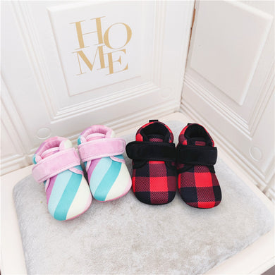 100709AC-秋冬魔鬼氈格條紋學步鞋