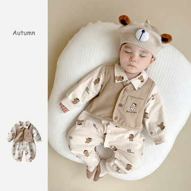 2304155LS-韓版三隻小熊嬰兒加厚連身衣