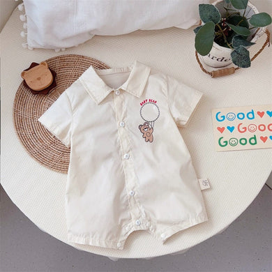 2402254LS-夏款短袖襯衫半袖小熊爬服