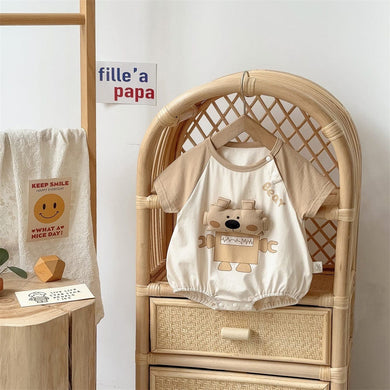 2402383LS-夏季韓版短袖機器人小熊包屁衣
