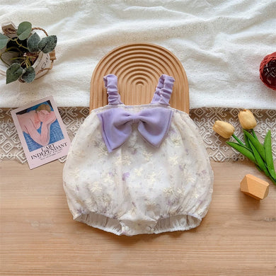 2402412LS-夏季蝴蝶結吊帶包屁衣