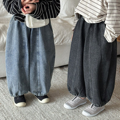 25C17PA-秋季拼接闊腿蘿蔔九分褲