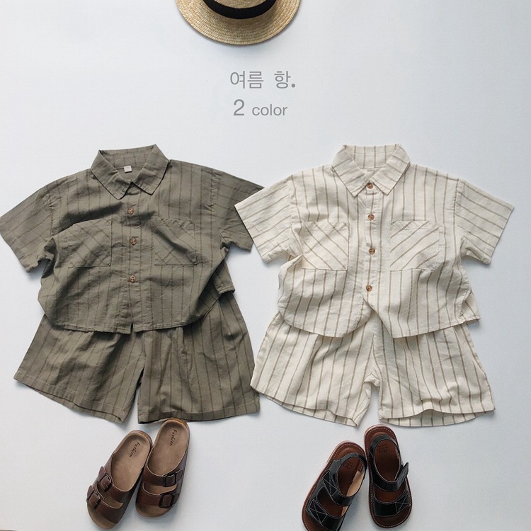 1116PA-Korean version of boys striped shorts summer thin pants for small and medium-sized children ramie loose casual shorts