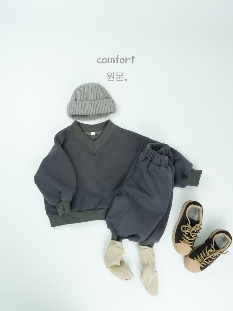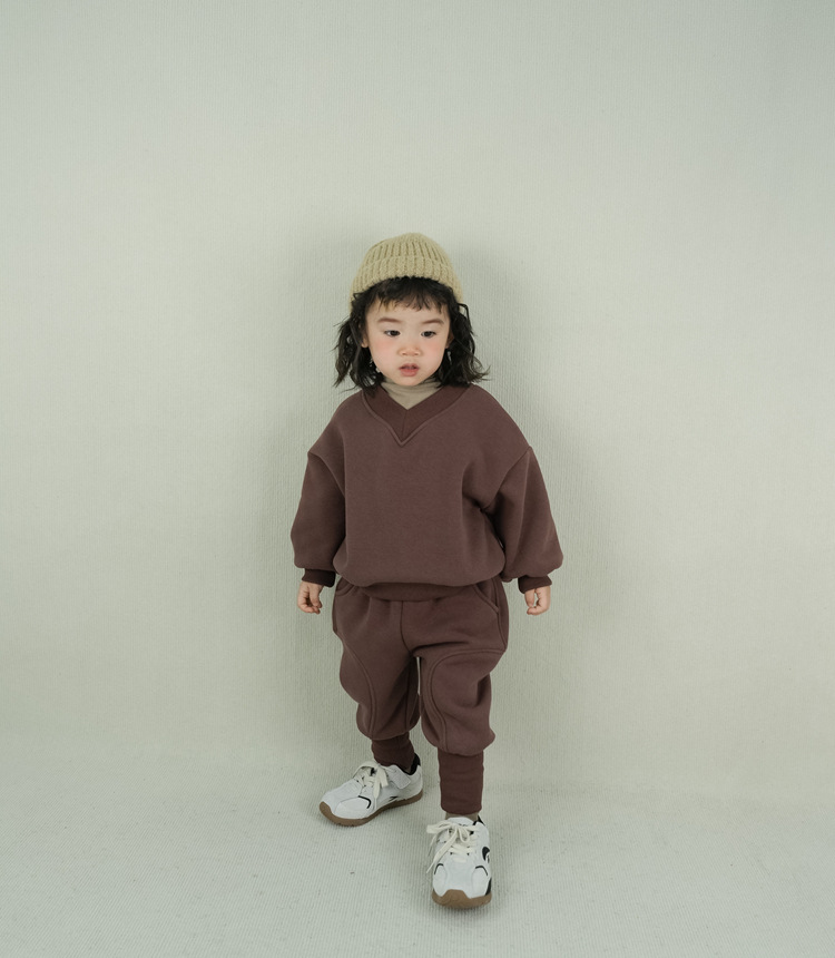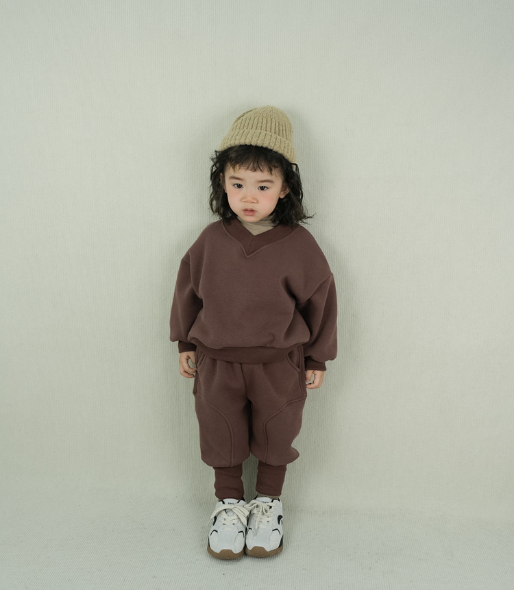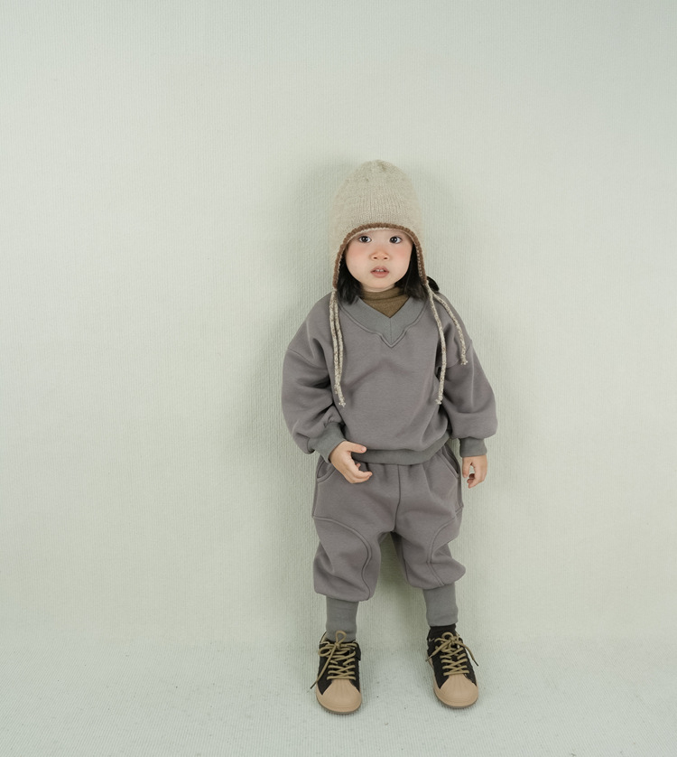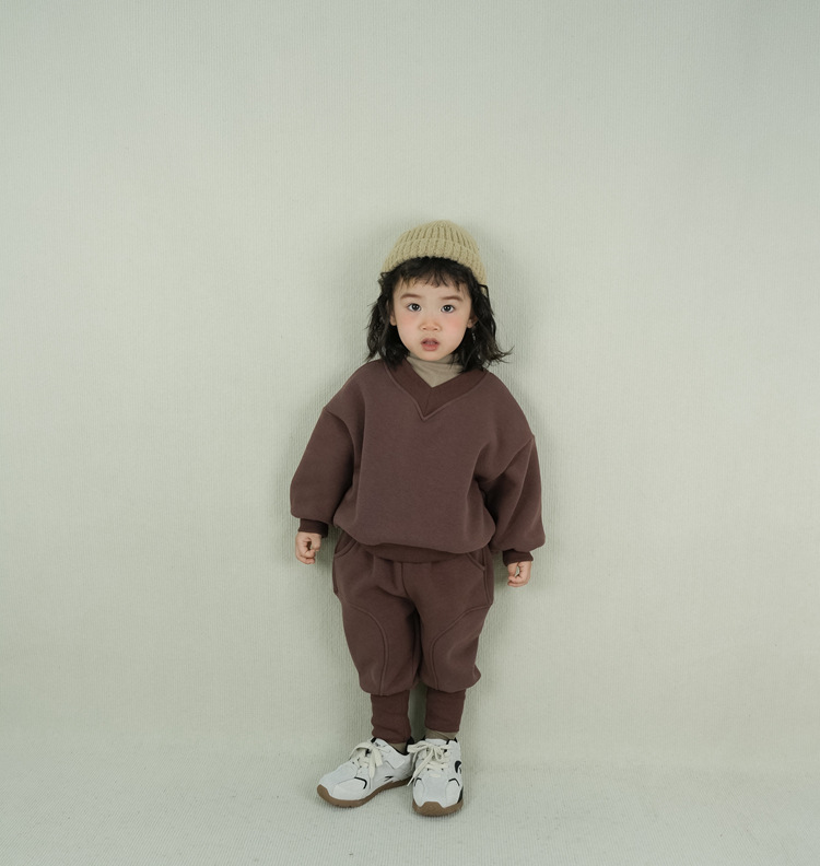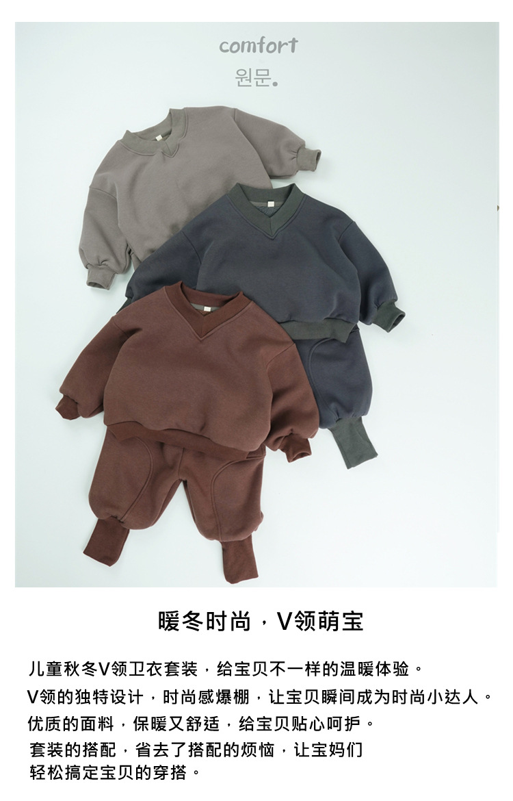 1136TG-Winter one-piece fleece V-neck top + thickened leggings two-piece set