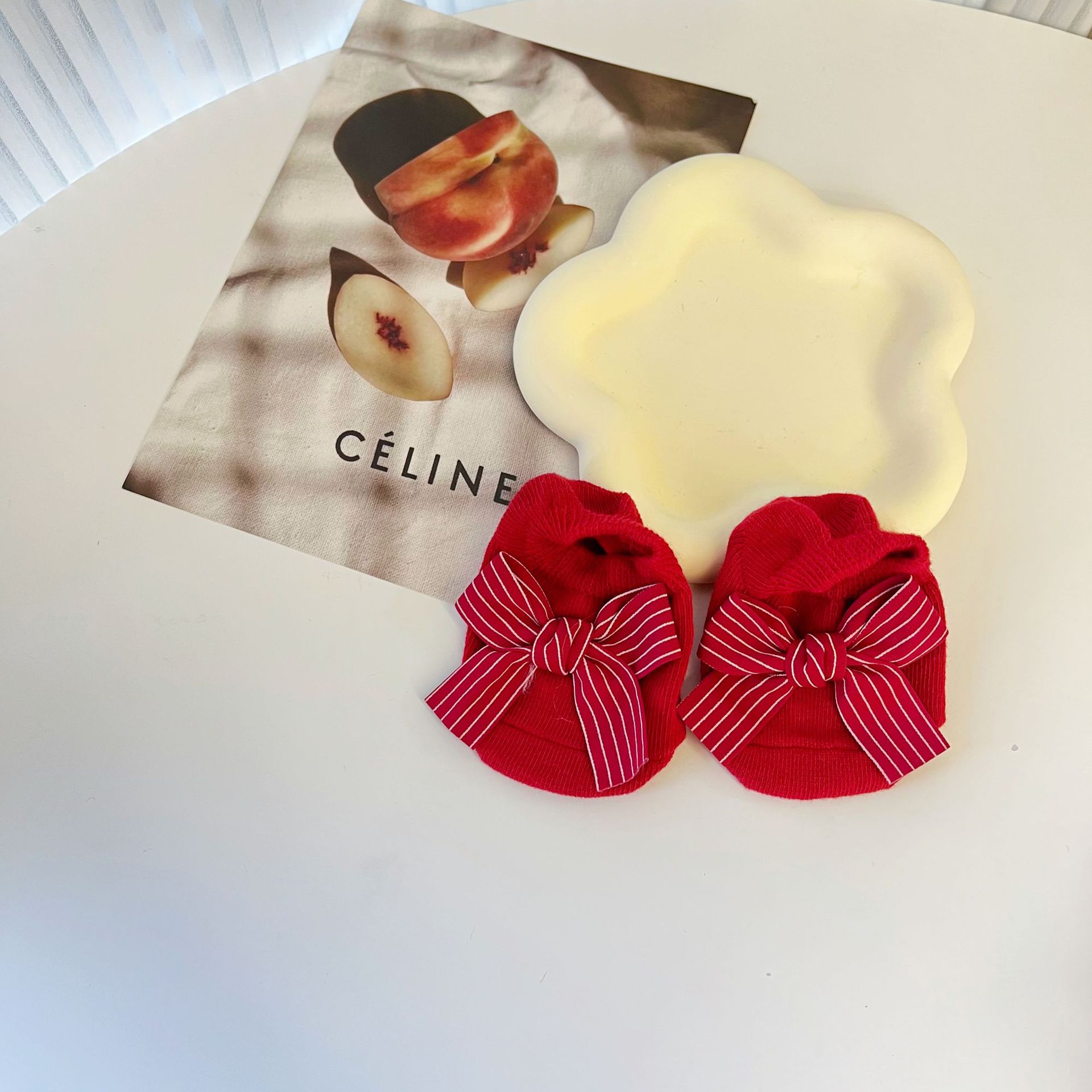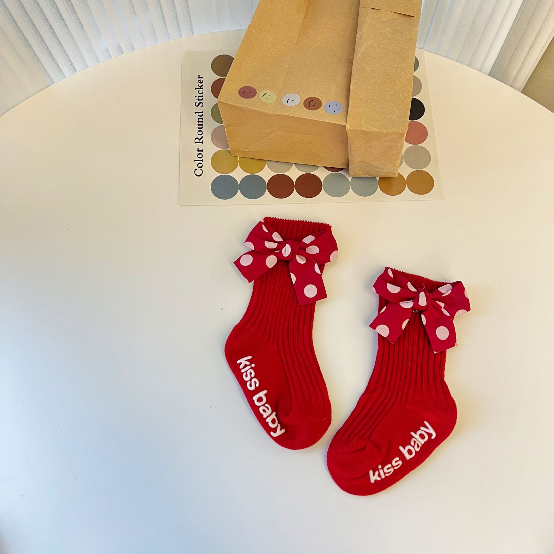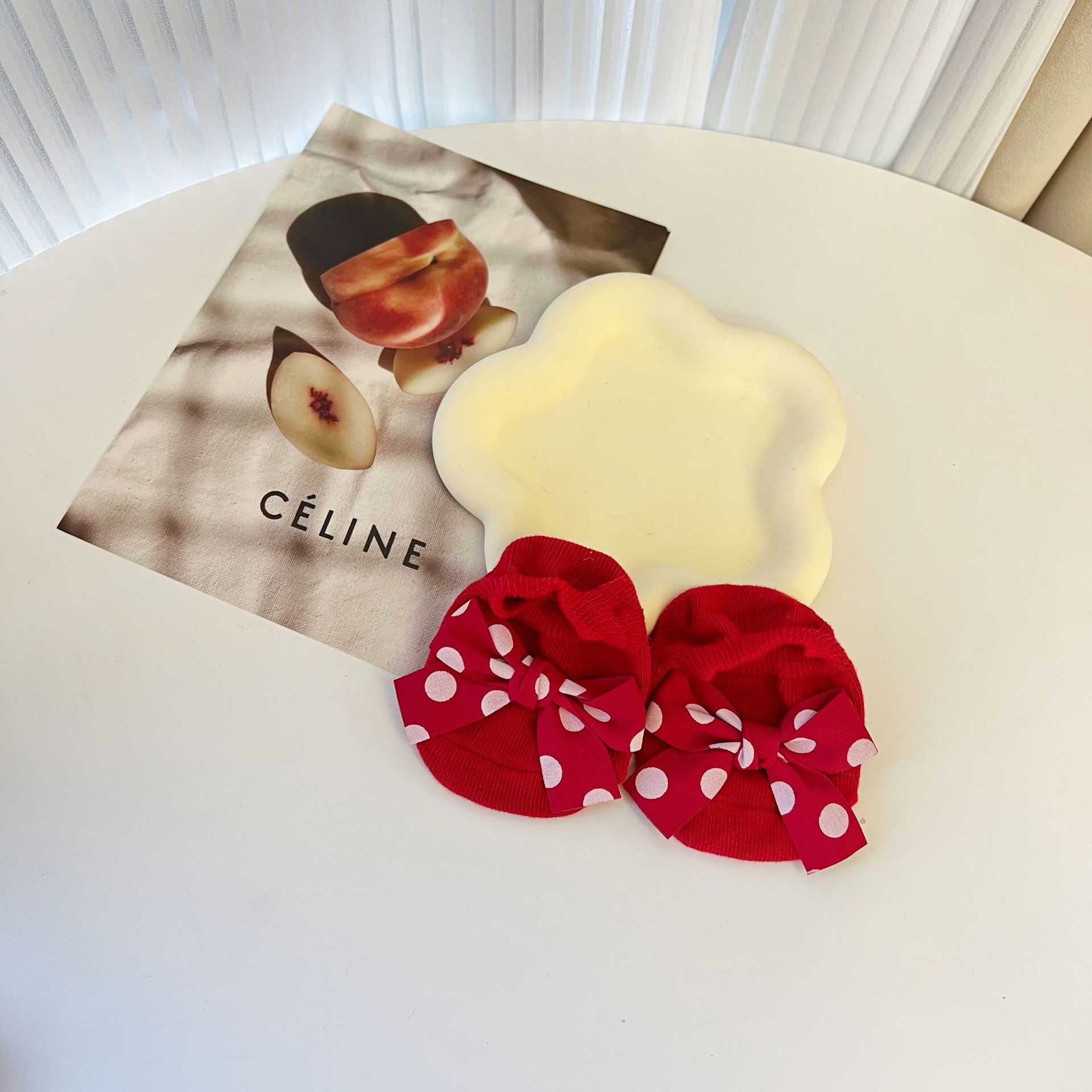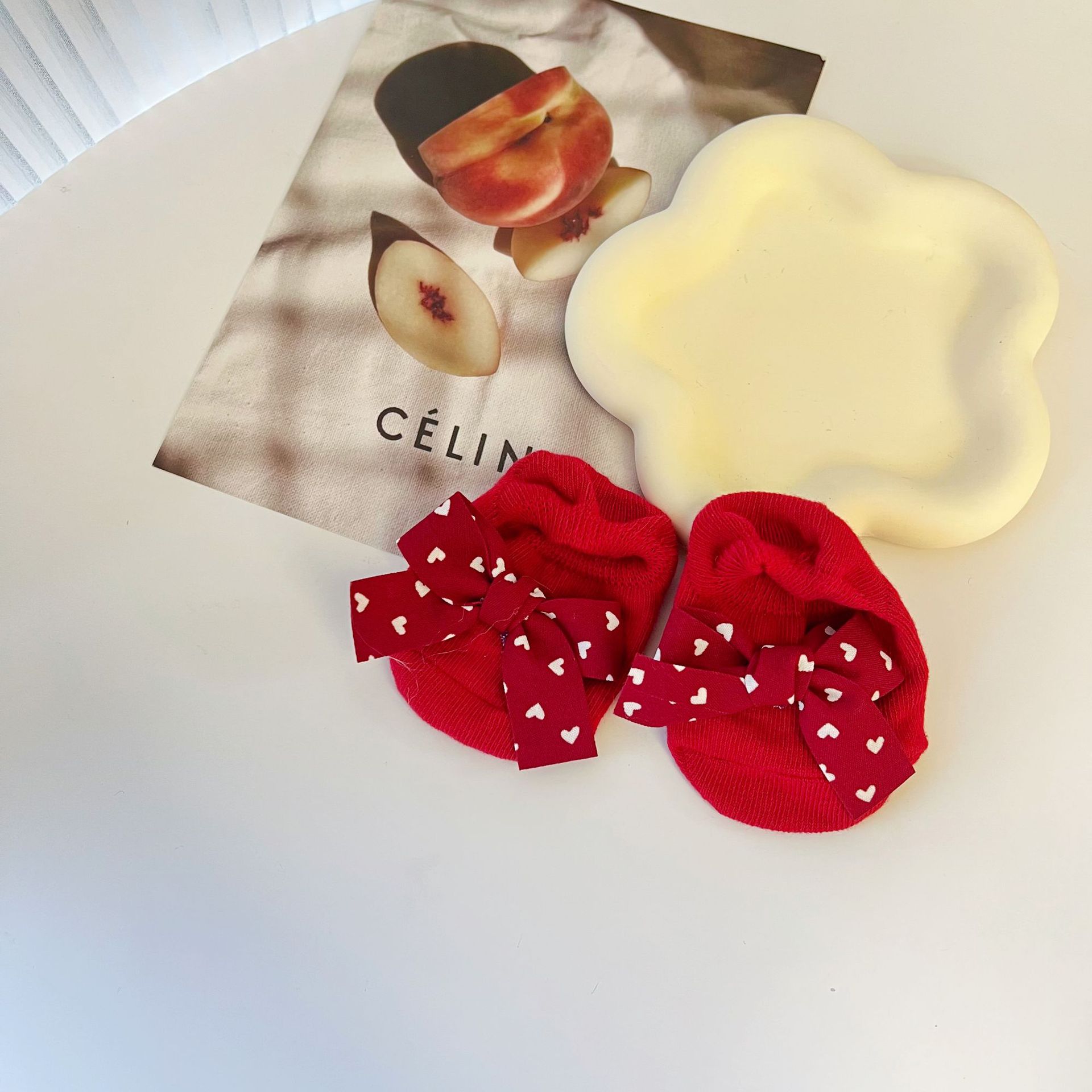 121110AC-Polka dot love big red bow cute shallow mouth double needle middle tube socks non-slip floor socks