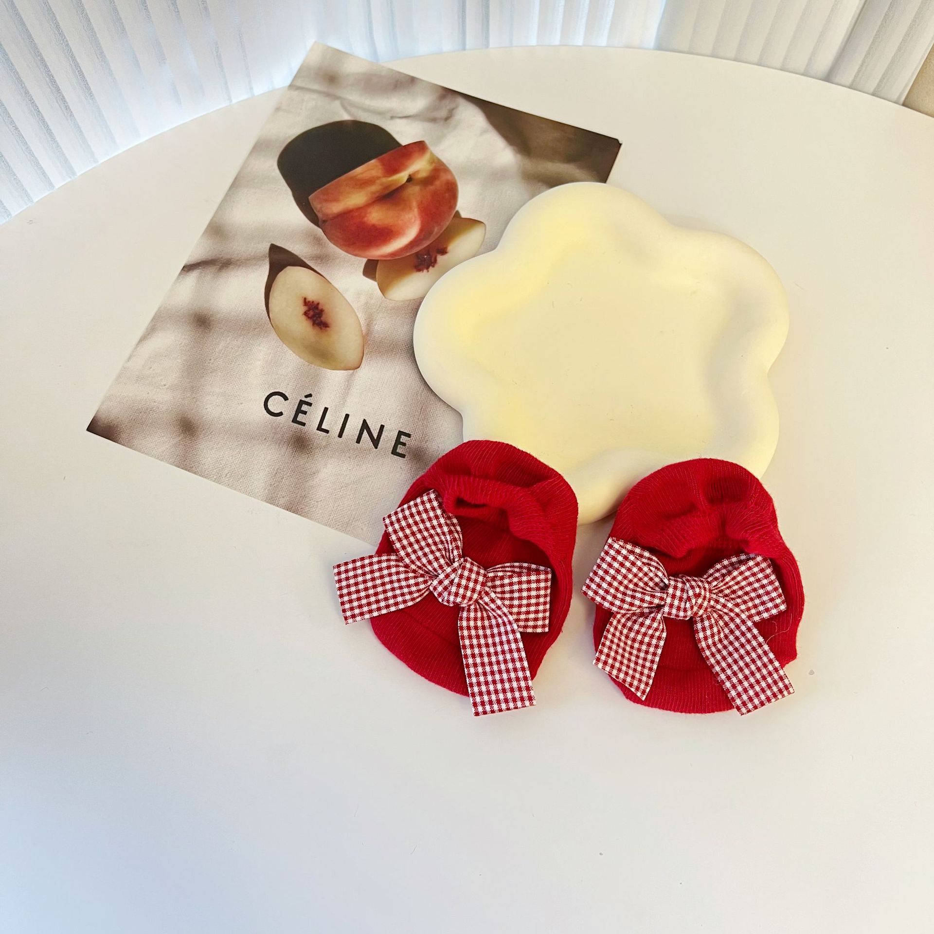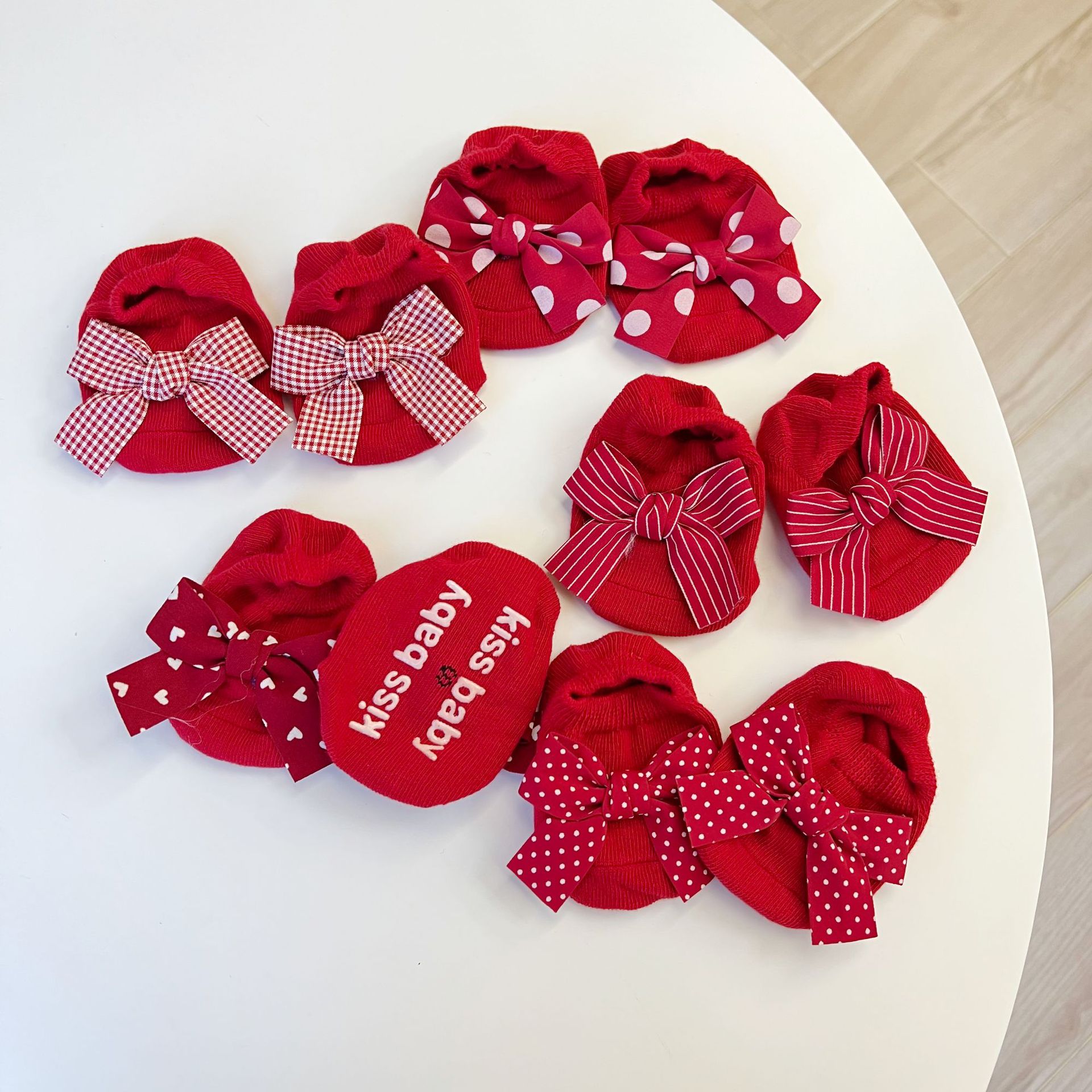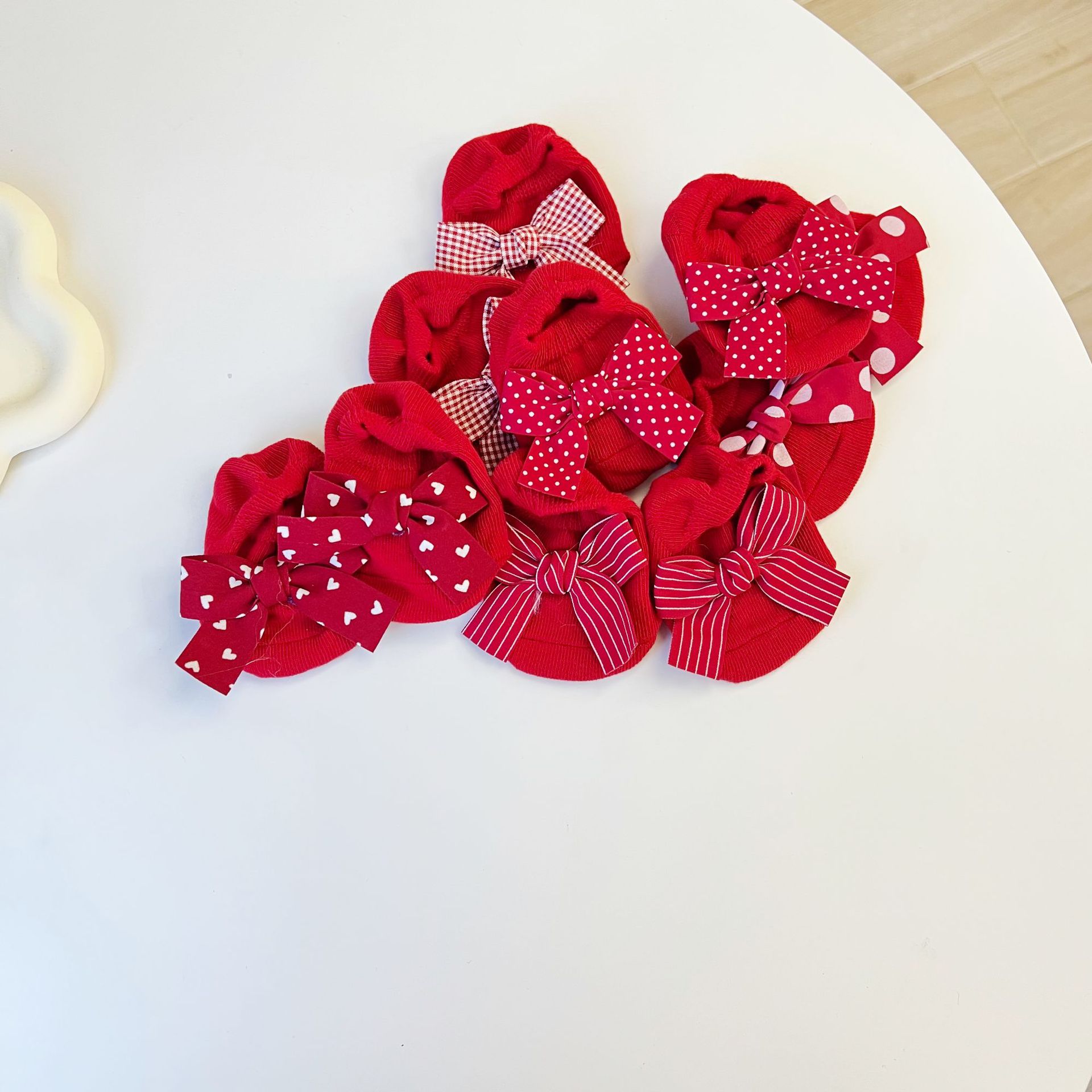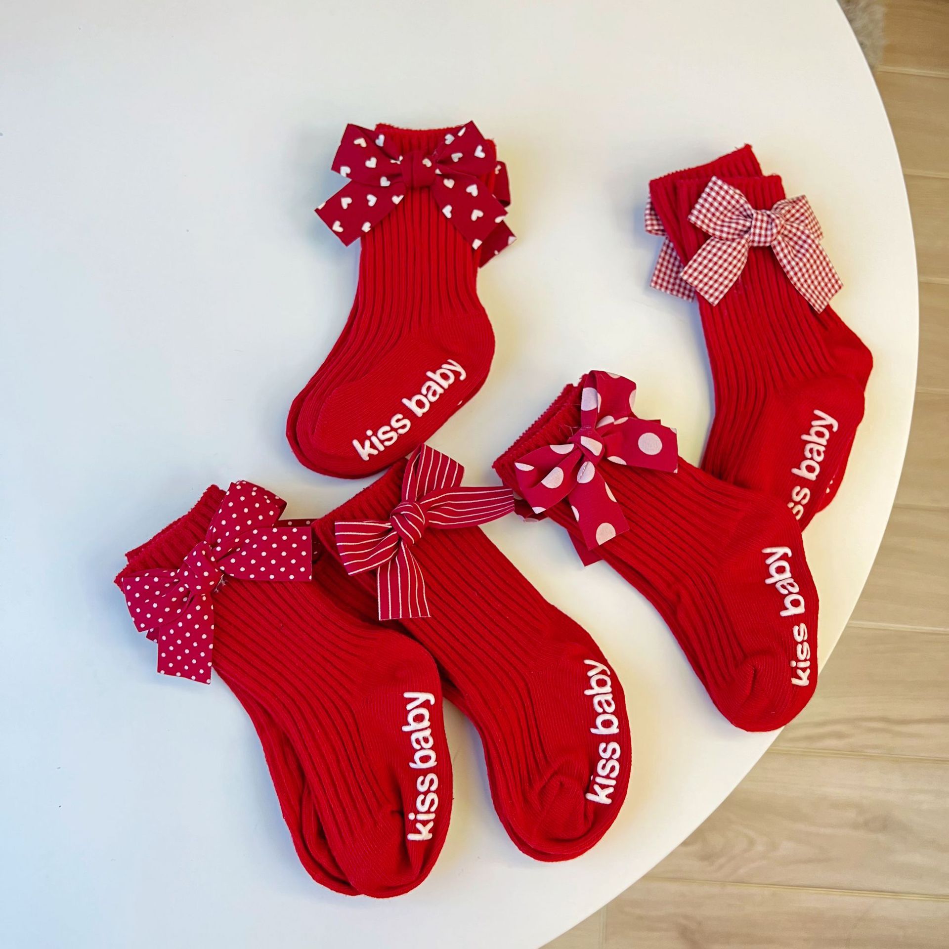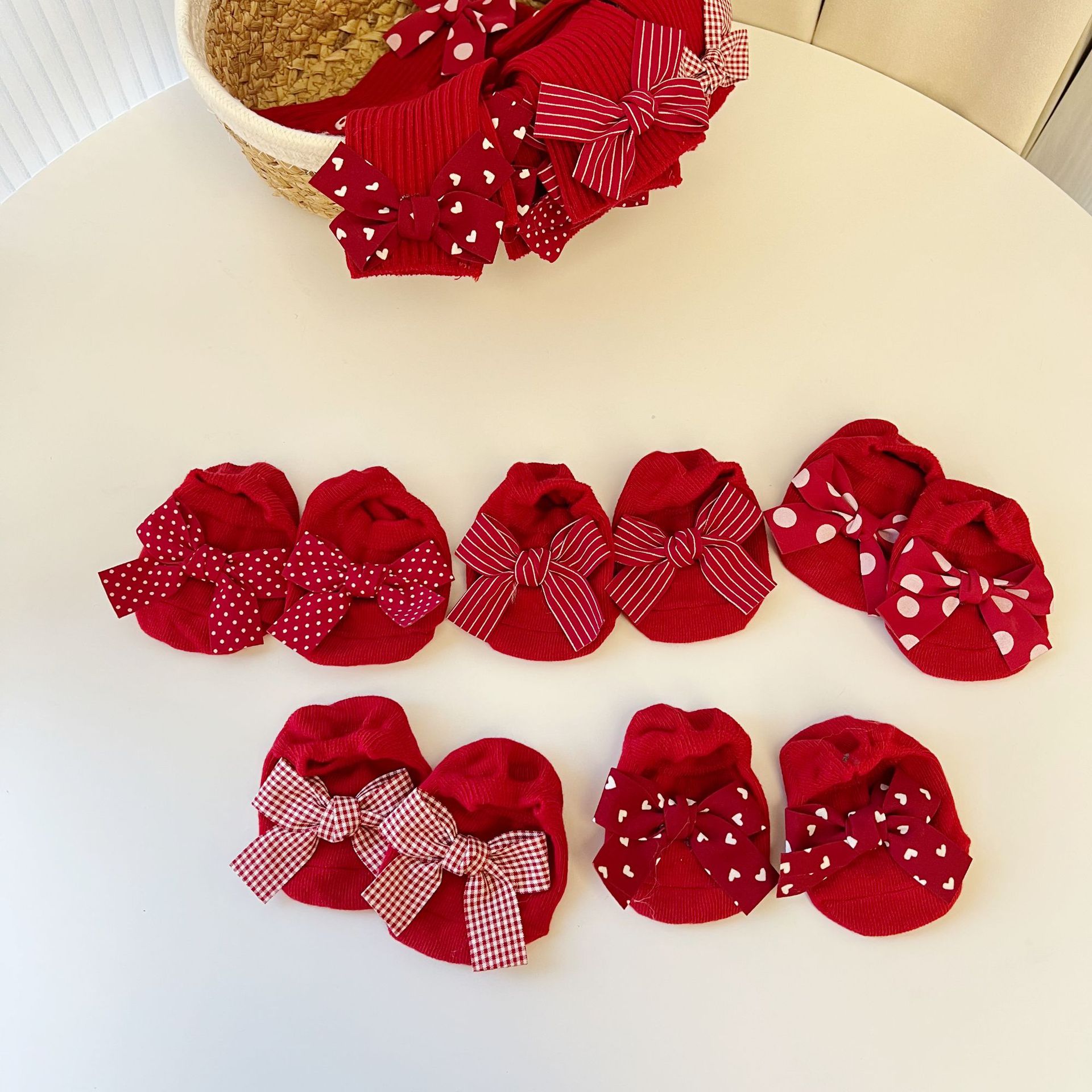 121110AC-Polka dot love big red bow cute shallow mouth double needle middle tube socks non-slip floor socks