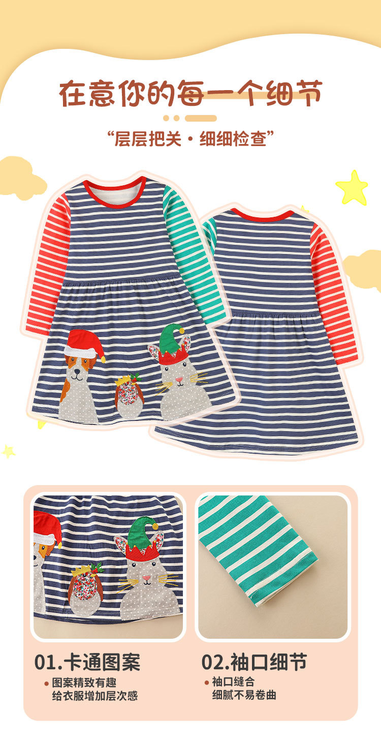1439DS-Autumn Christmas cartoon animal patchwork striped long skirt