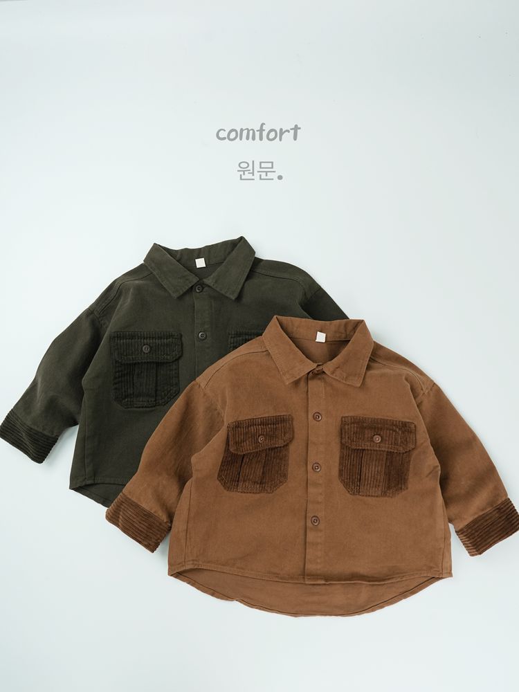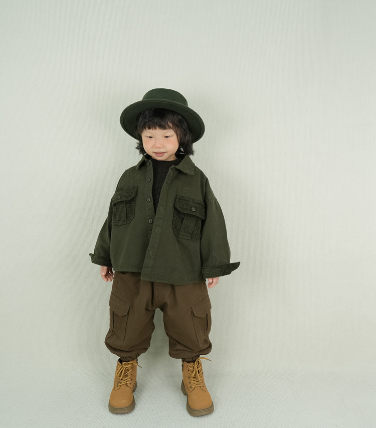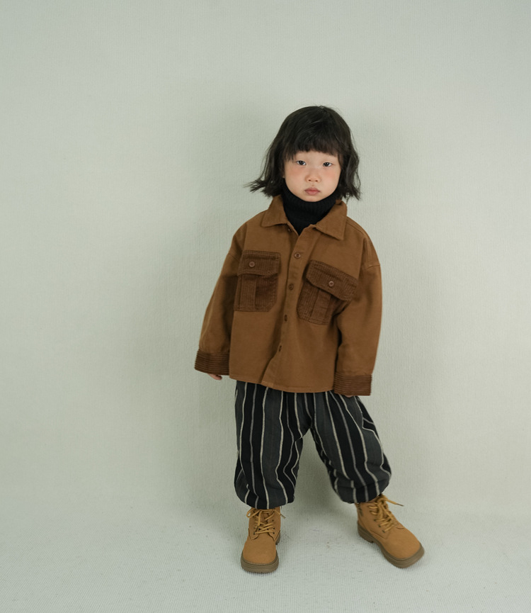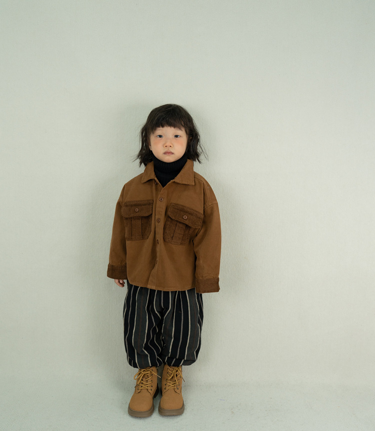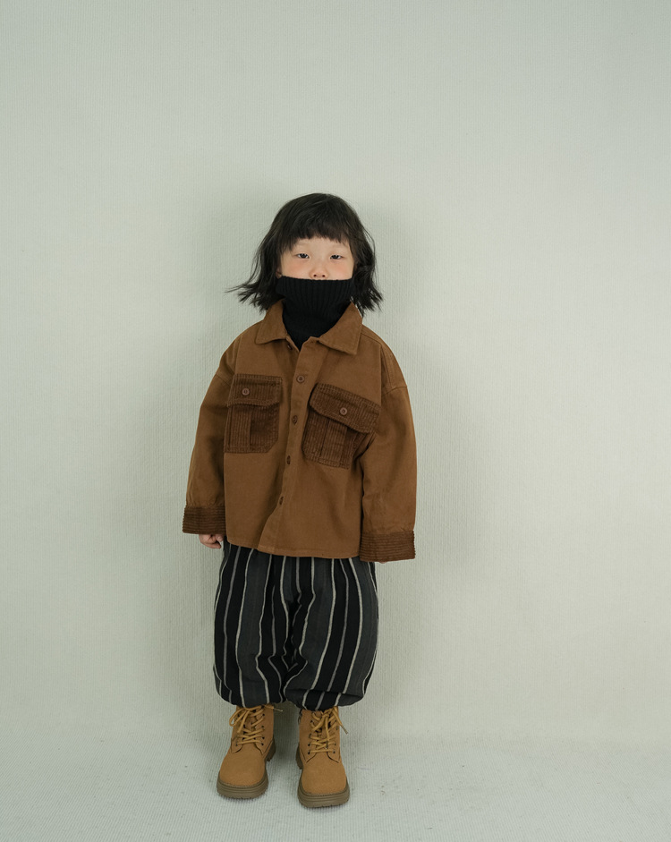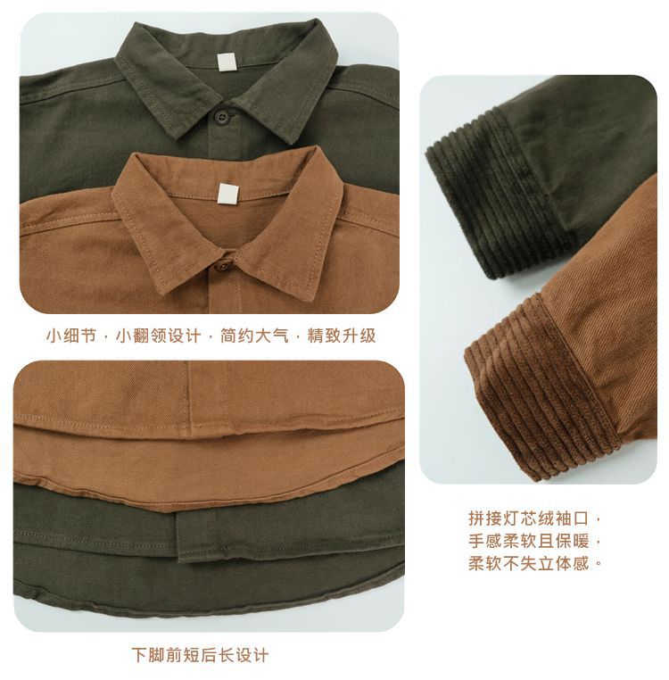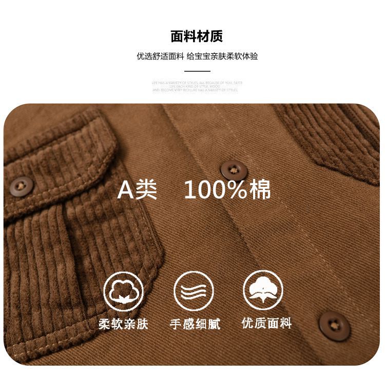 1516SE-Autumn and Winter Korean Corduroy Pocket Work Shirt