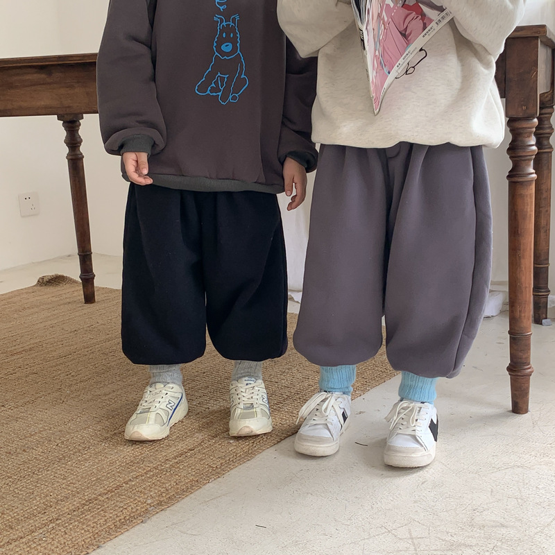 2022D53PA-Autumn and winter plus velvet solid color versatile casual warm ankle-length bloomers