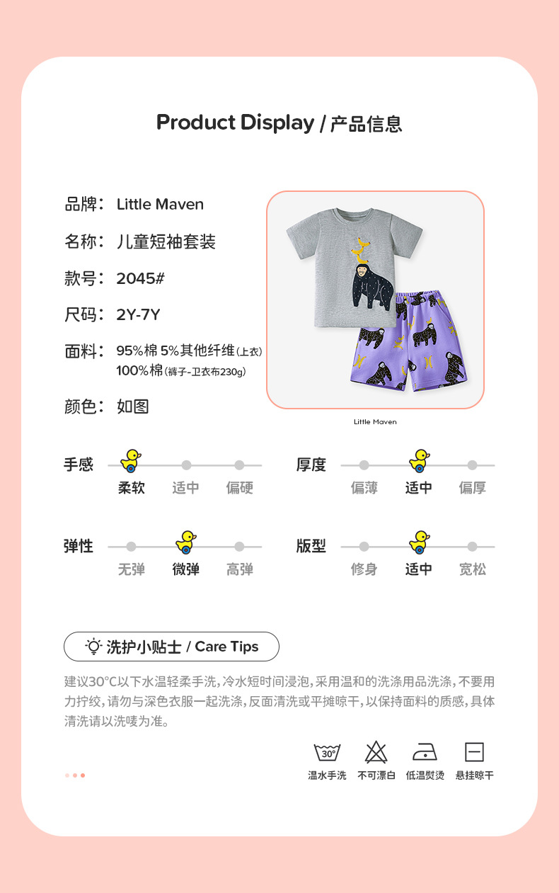 2045TG-夏季卡通貼布繡兒童短袖上下套裝