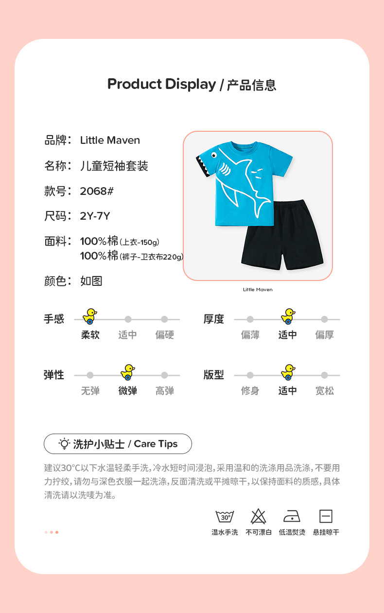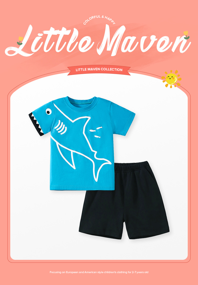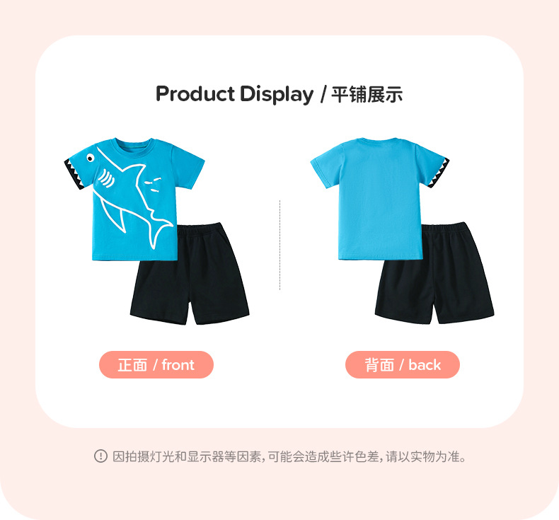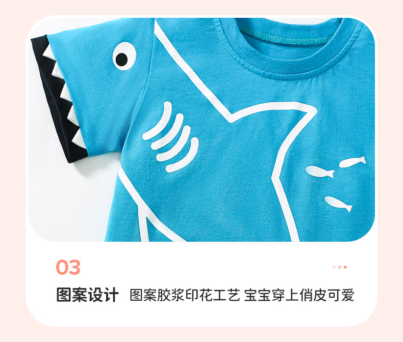 2068TG-夏季卡通鯊魚純棉兒童短袖上下套裝
