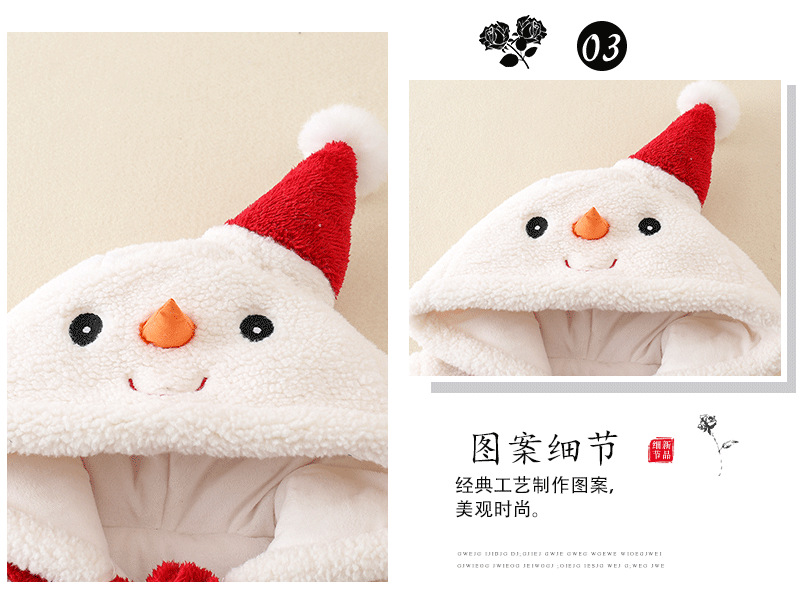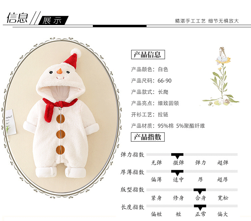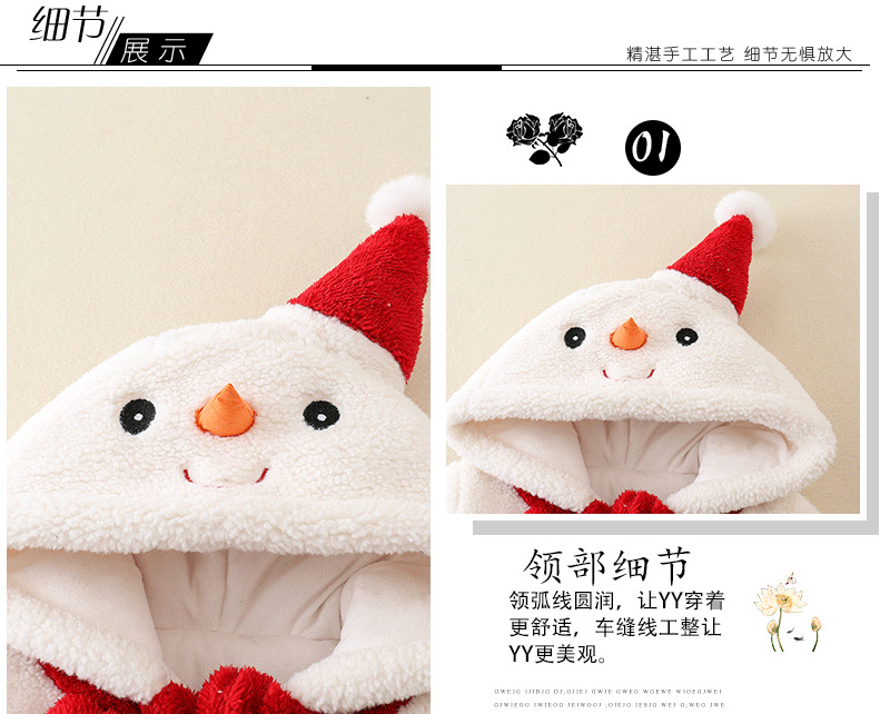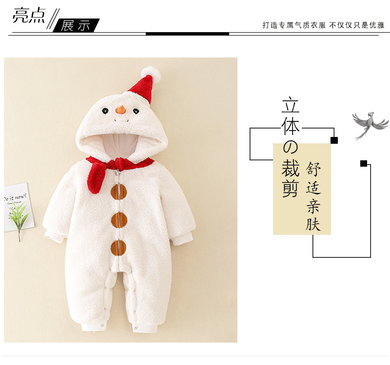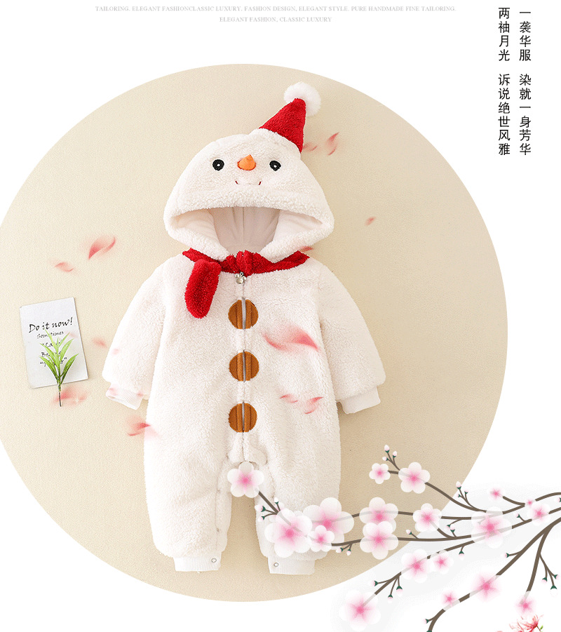 22B202LS-Autumn and winter baby snowman shape one-piece romper