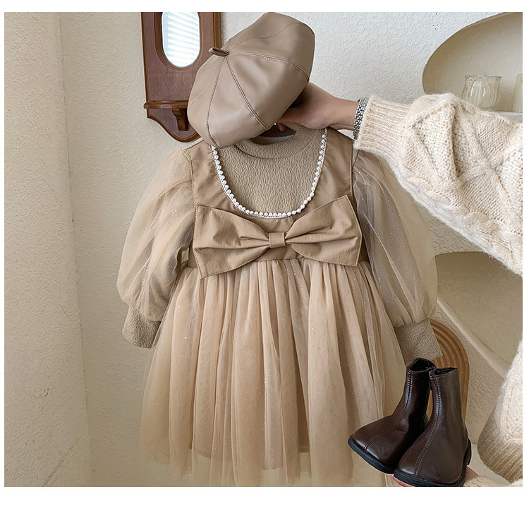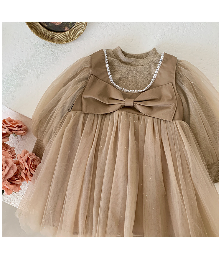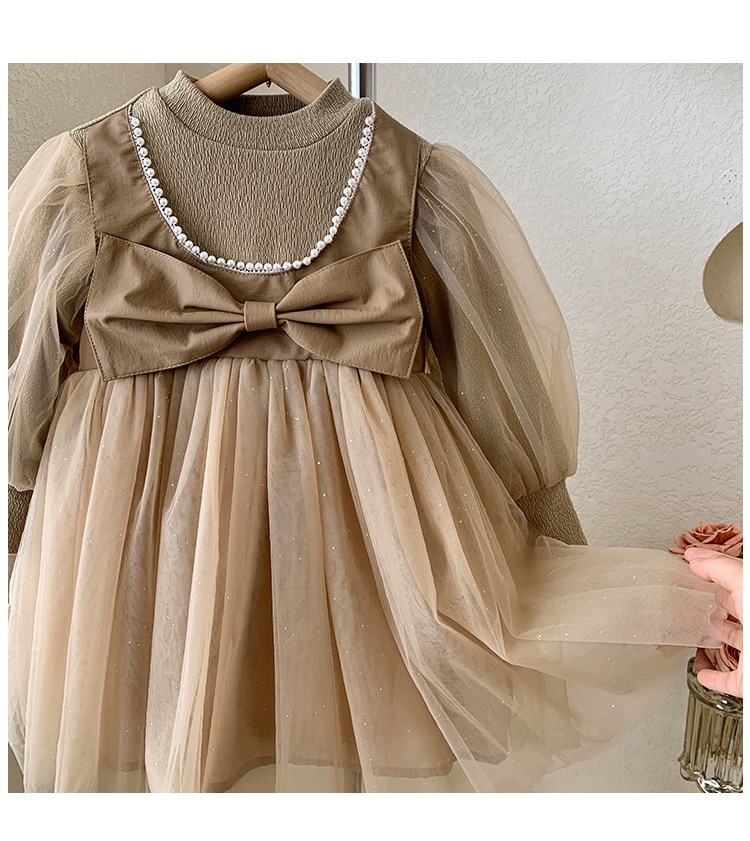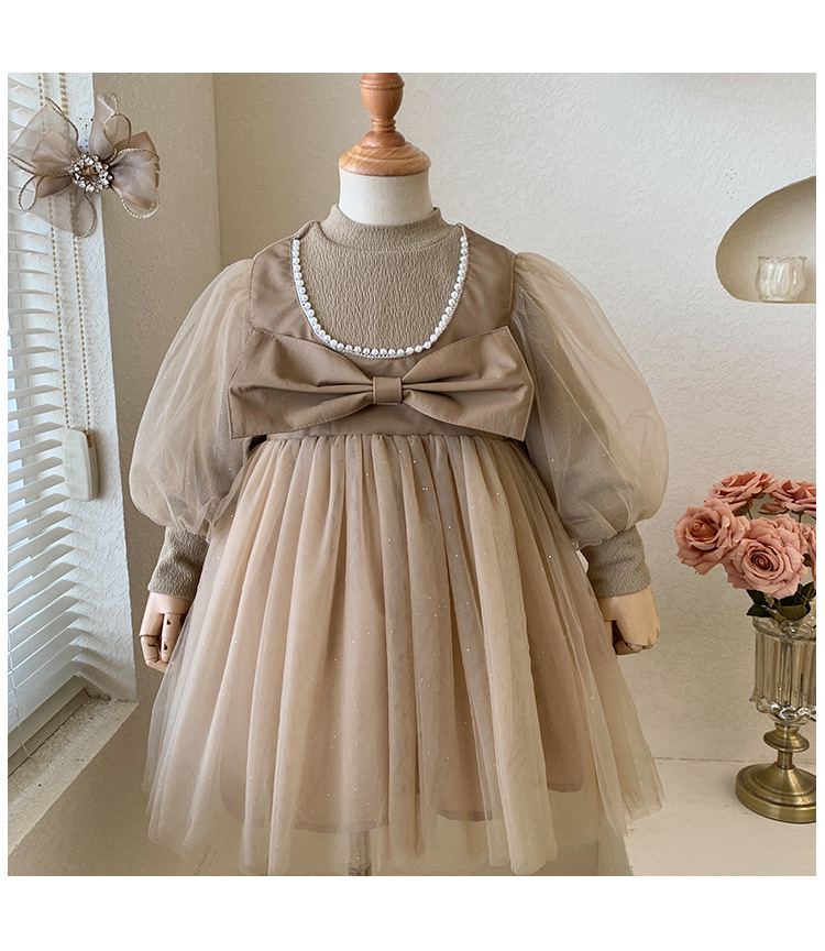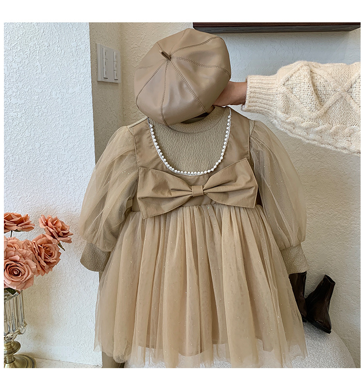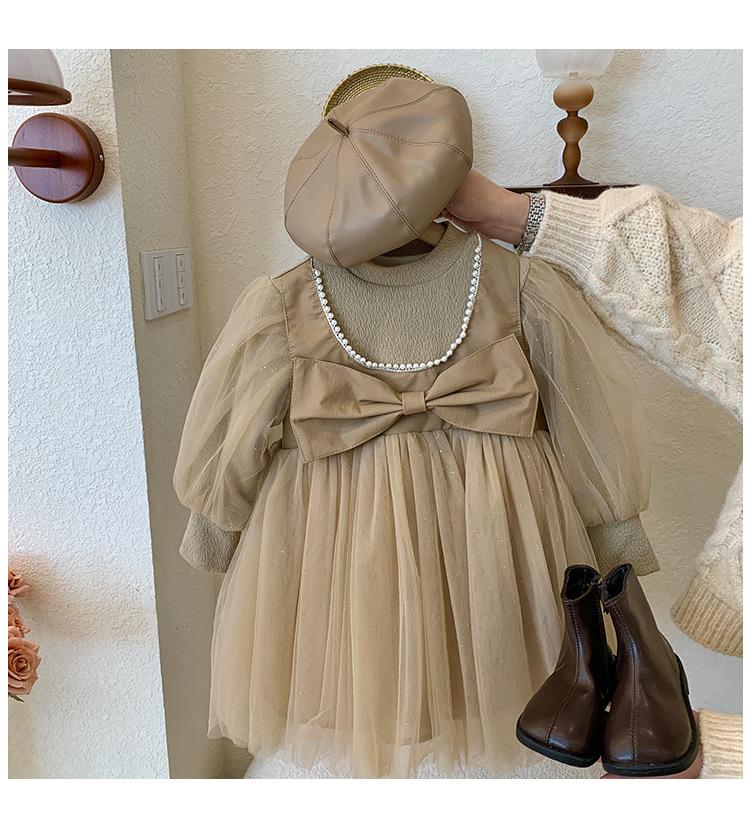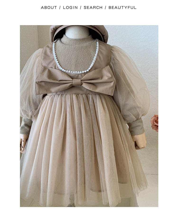 22Q072DS-Winter style big bow plus velvet long-sleeved dress