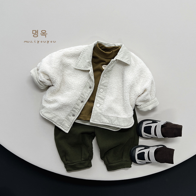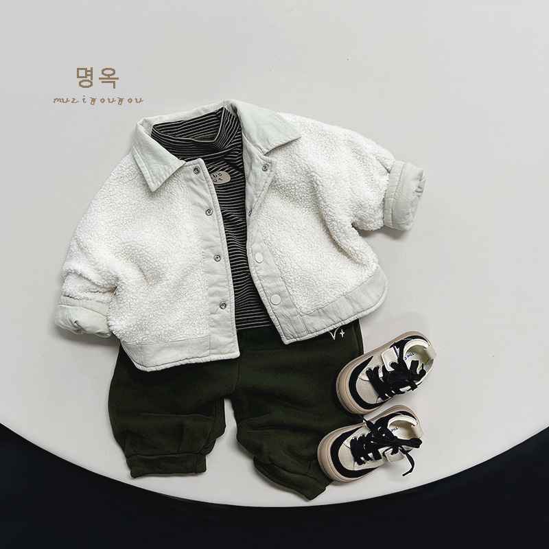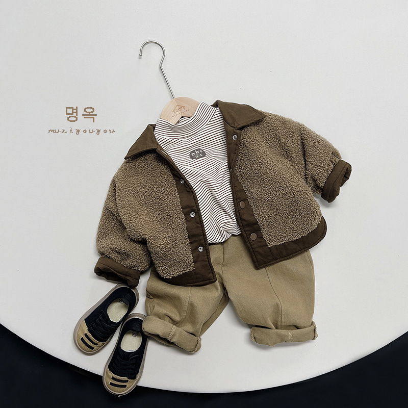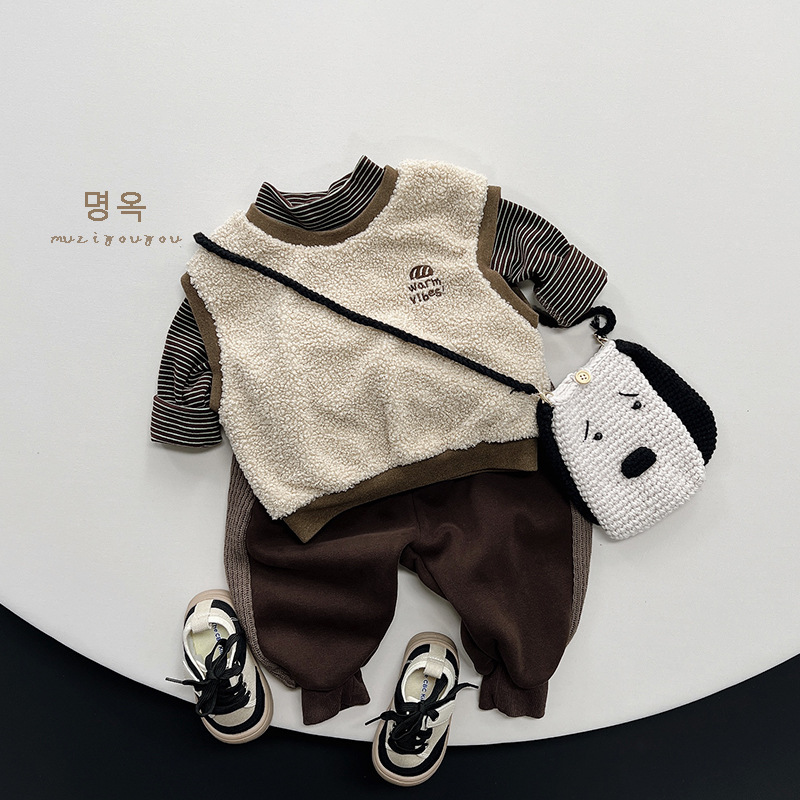 23128SE-Winter warm and versatile striped printed children's fleece bottoming top