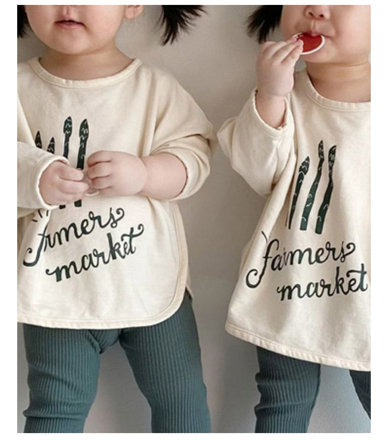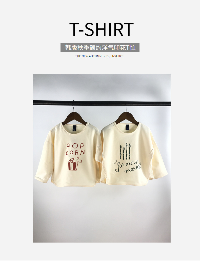 23D1265SE-Children's Korean autumn new tops for boys and girls simple and fashionable letter printing loose long-sleeved bottoming shirt T-shirt