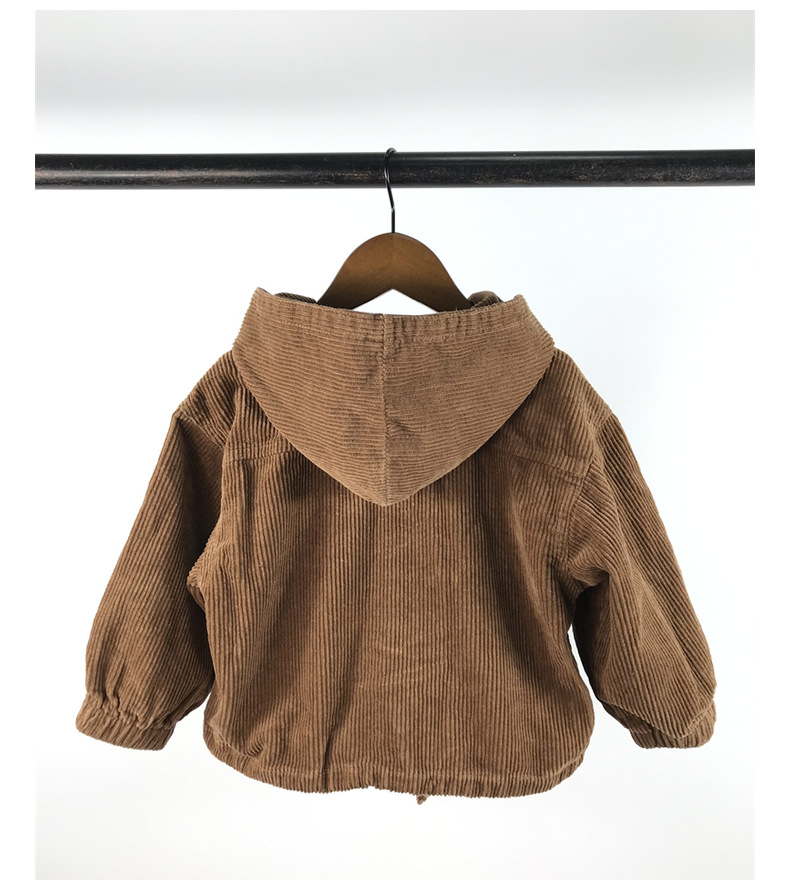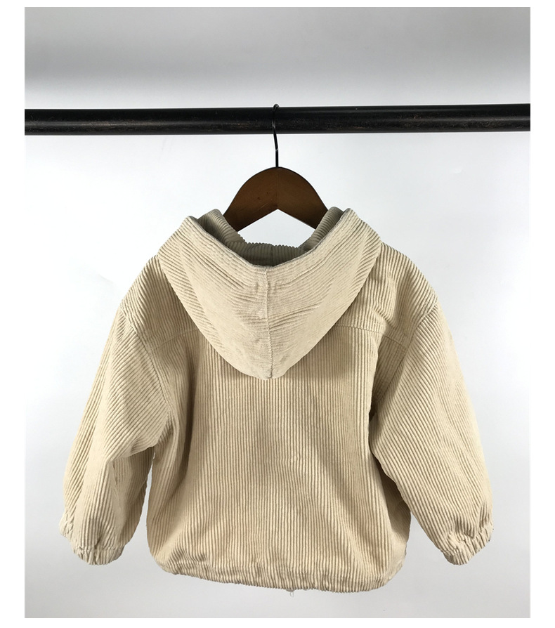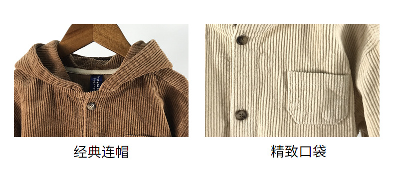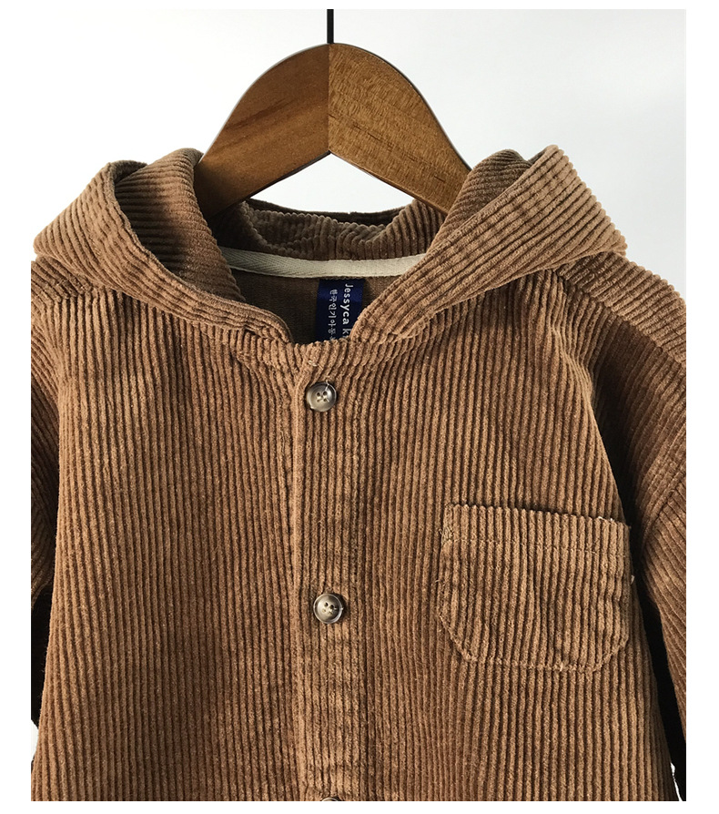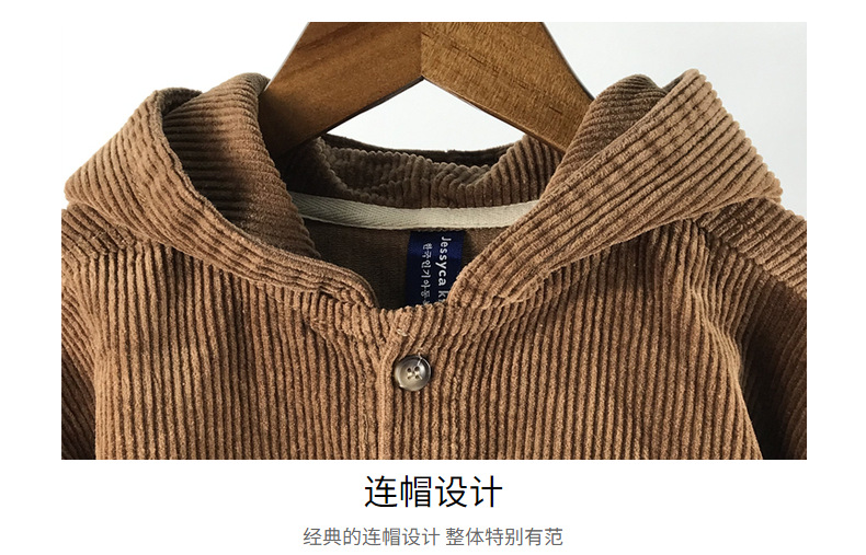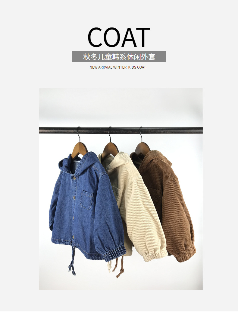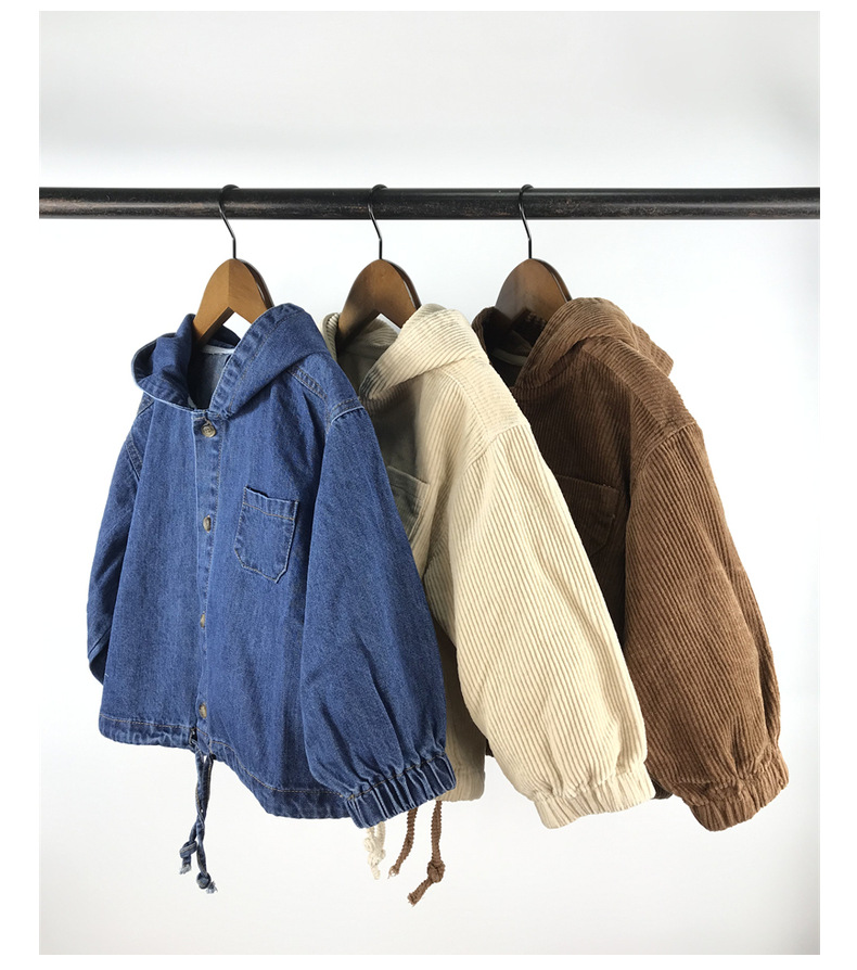 23D1837SE-Children's new spring and autumn cardigan, simple Japanese and Korean style, fashionable hooded denim corduroy casual jacket