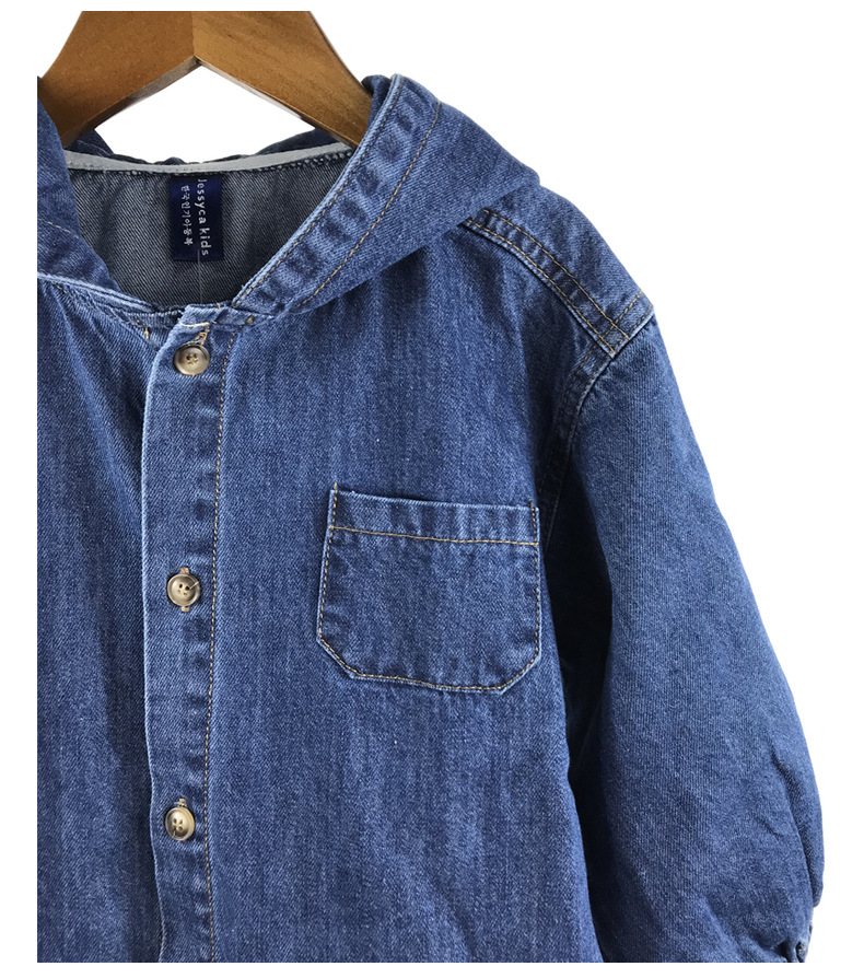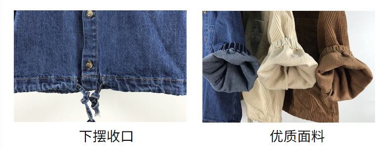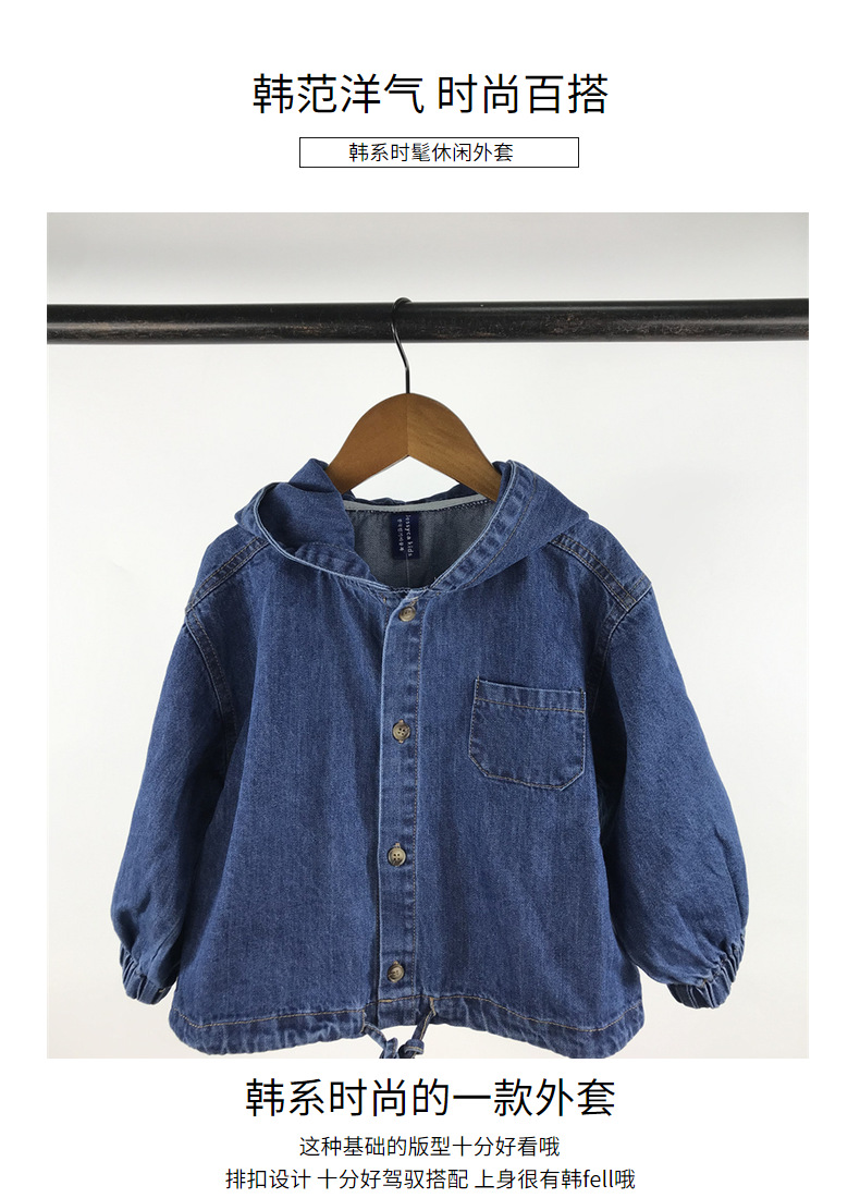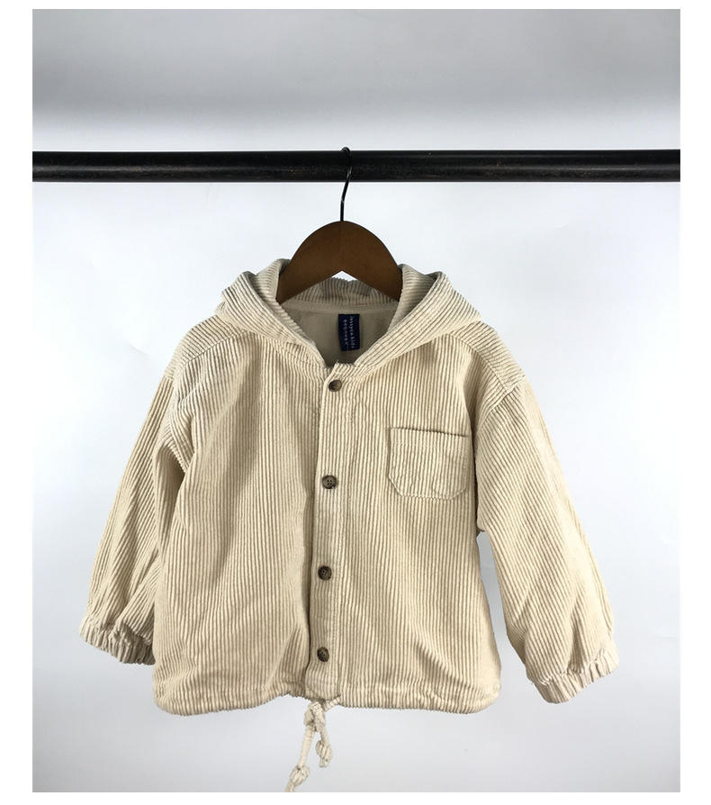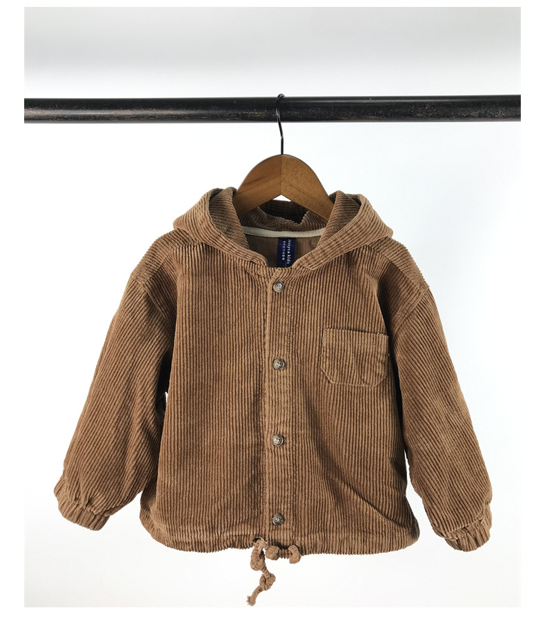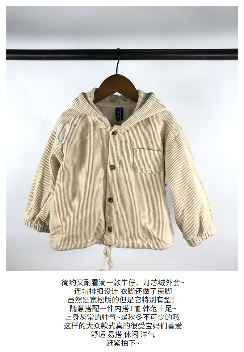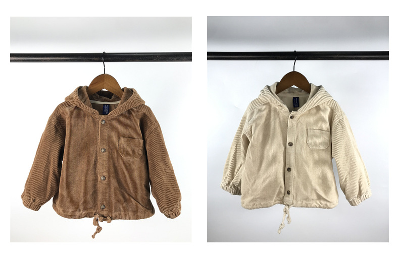 23D1837SE-Children's new spring and autumn cardigan, simple Japanese and Korean style, fashionable hooded denim corduroy casual jacket