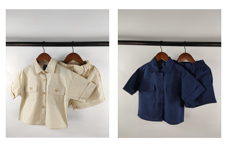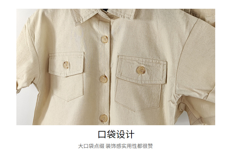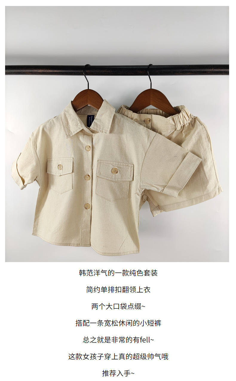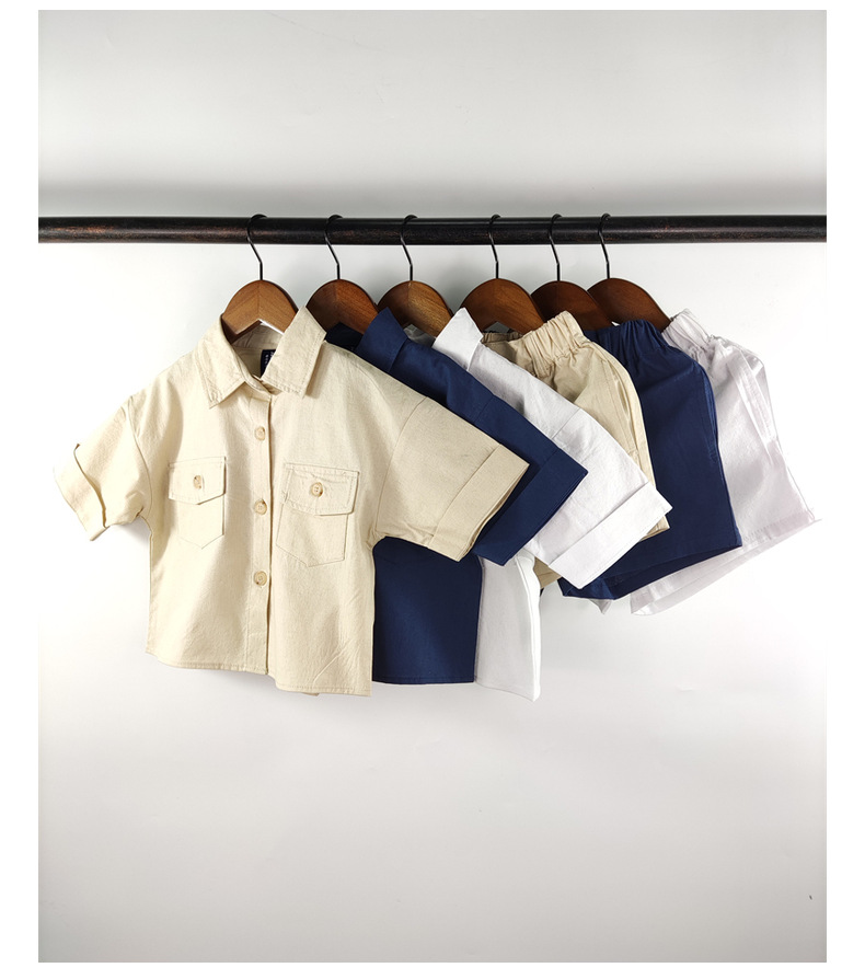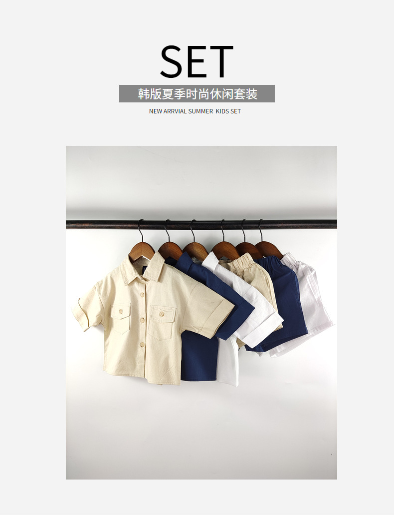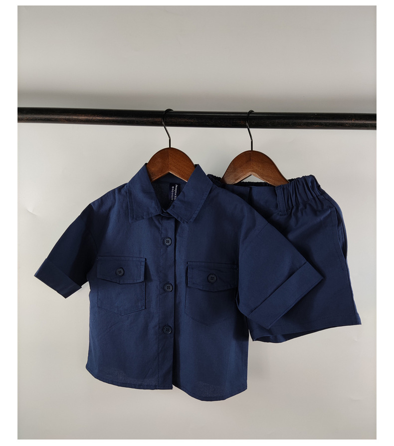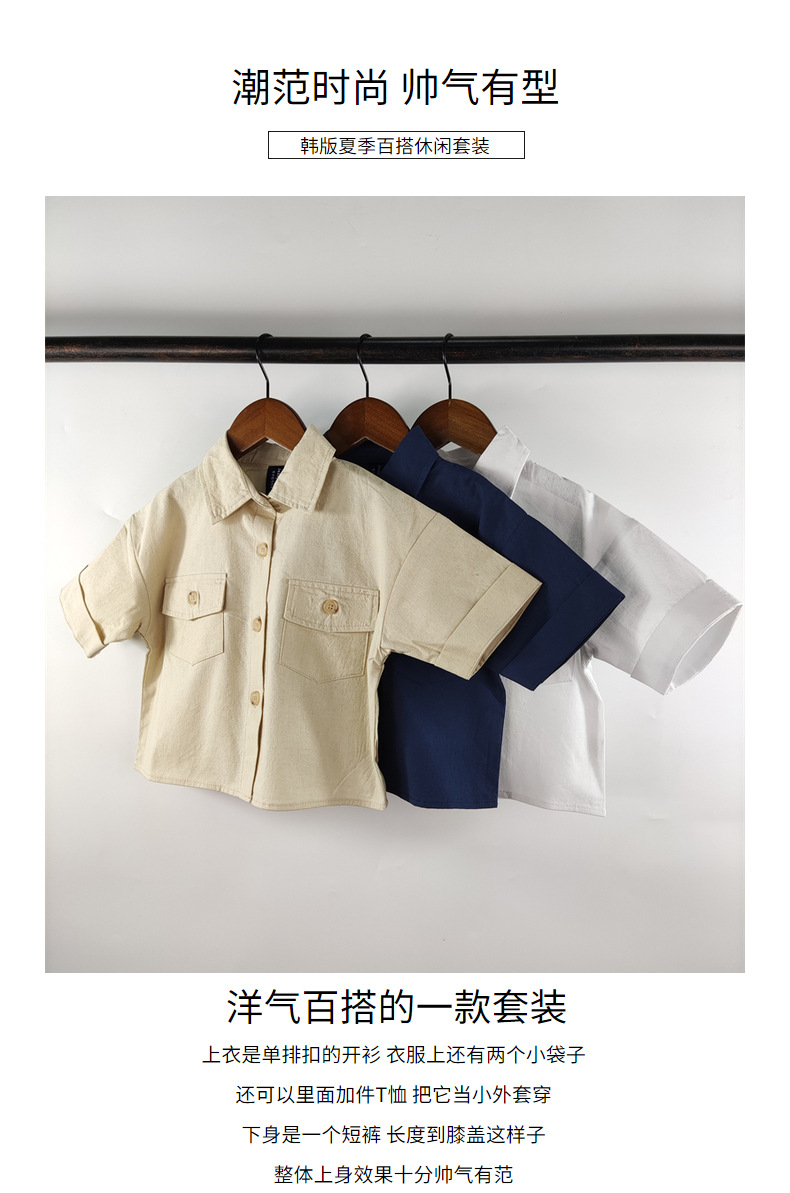 23D627TG-ins Korean summer new style boys and girls fashion trend handsome double pocket lapel shirt shorts two-piece suit