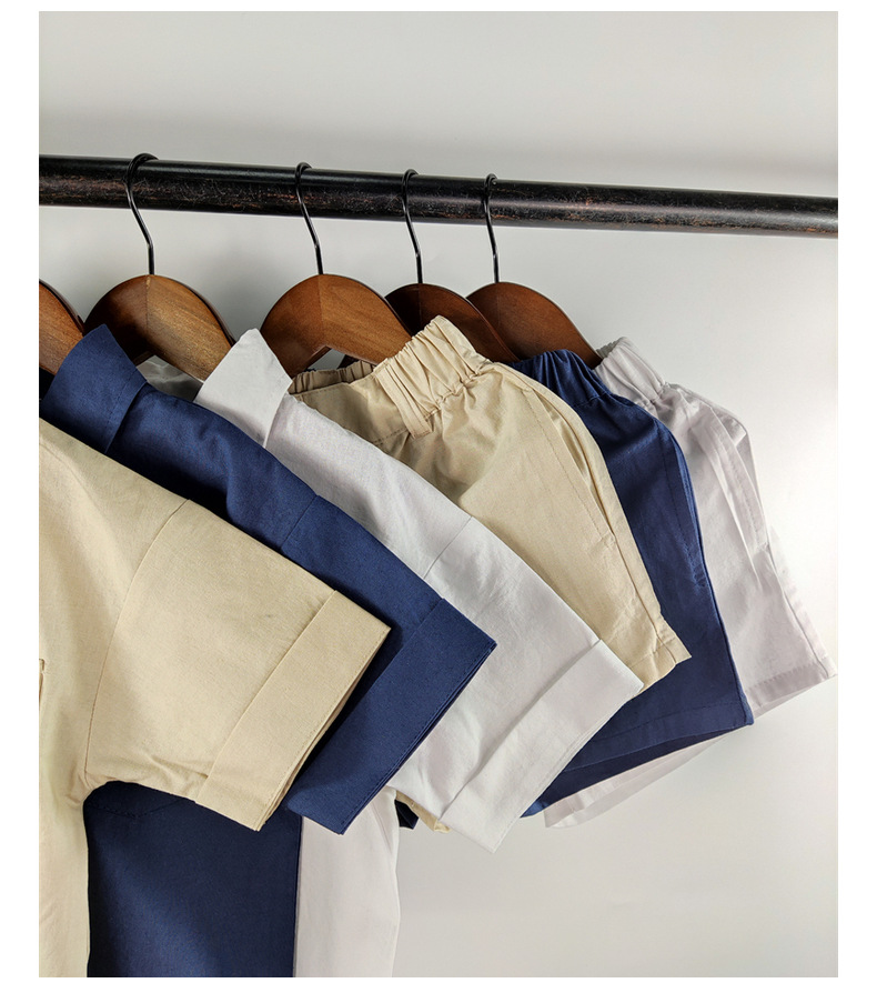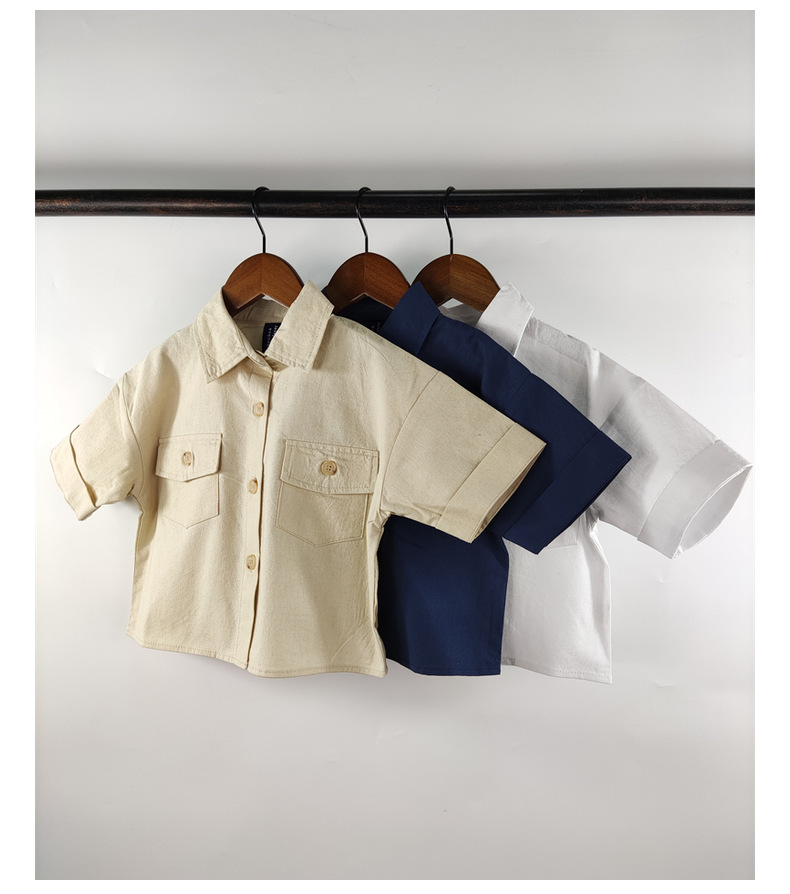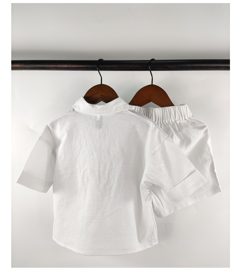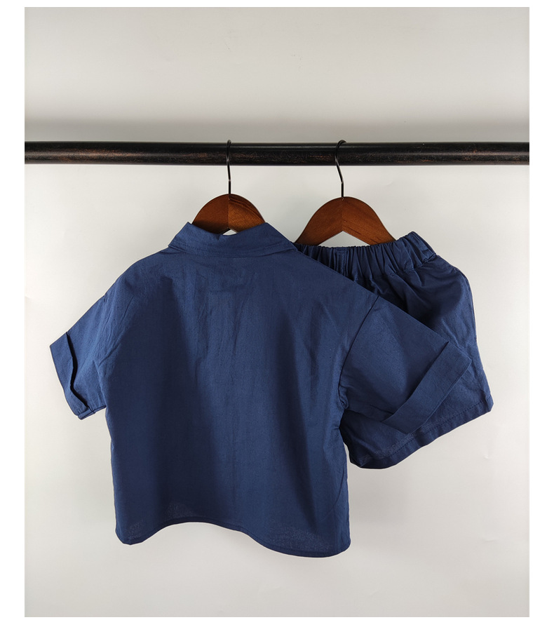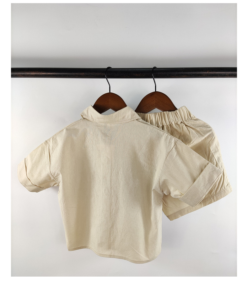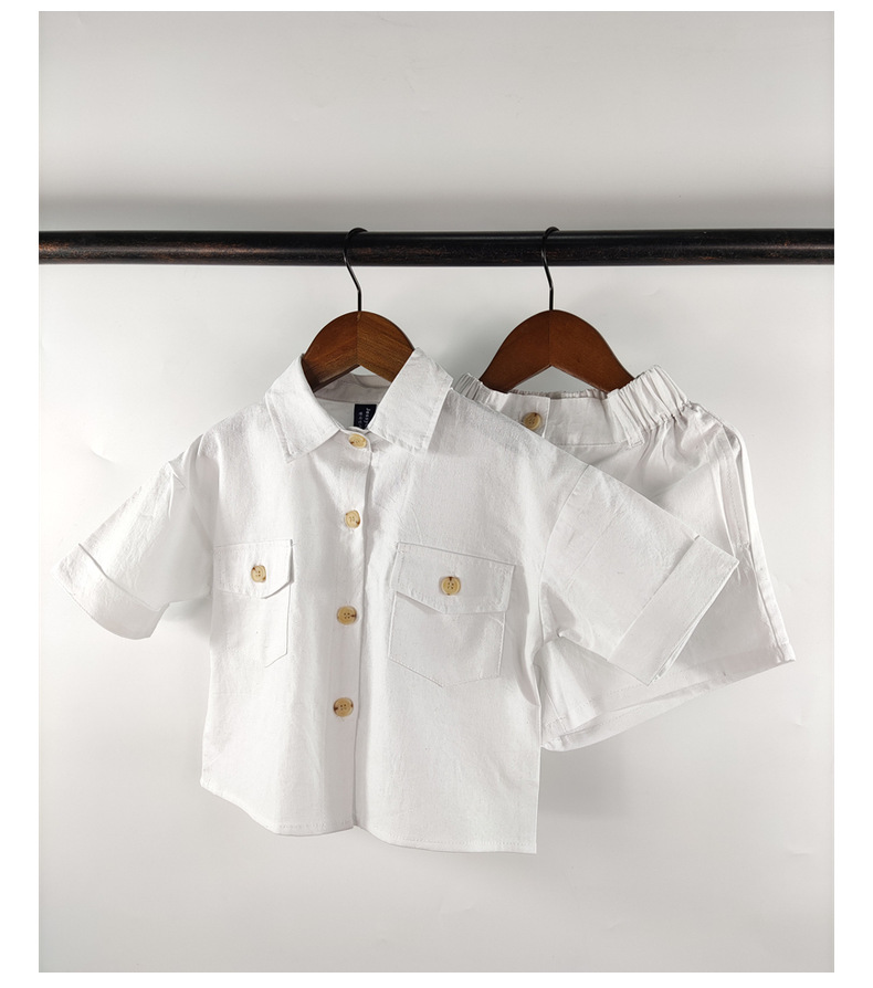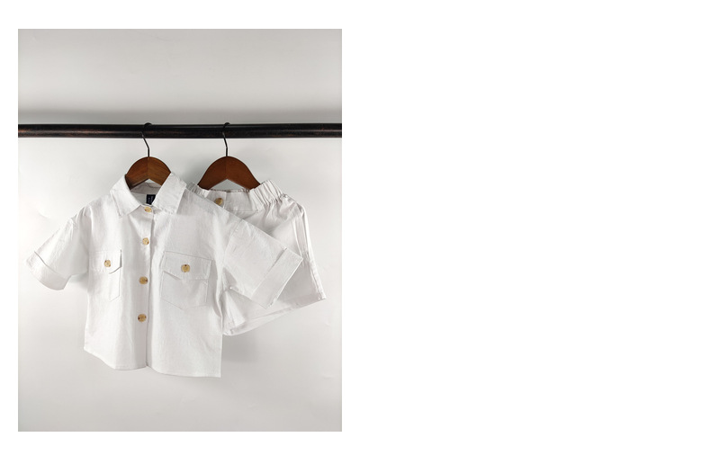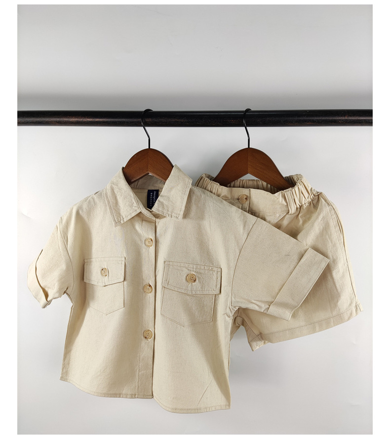 23D627TG-ins Korean summer new style boys and girls fashion trend handsome double pocket lapel shirt shorts two-piece suit