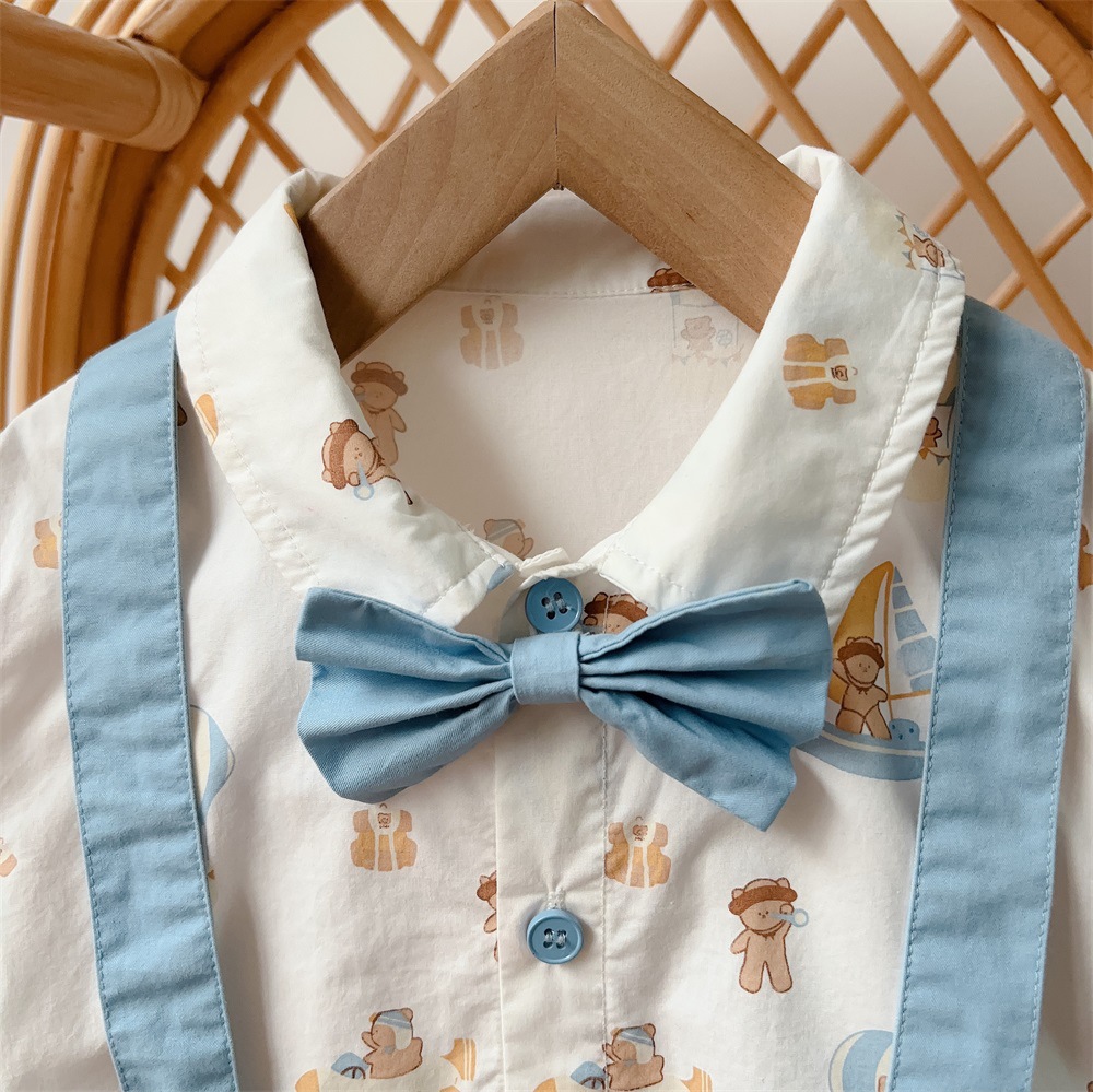 2402219LS- Summer thin fake two-piece suspender short-sleeved climbing suit