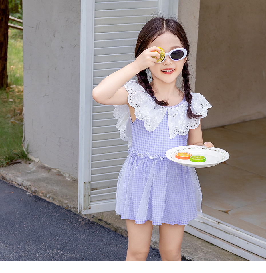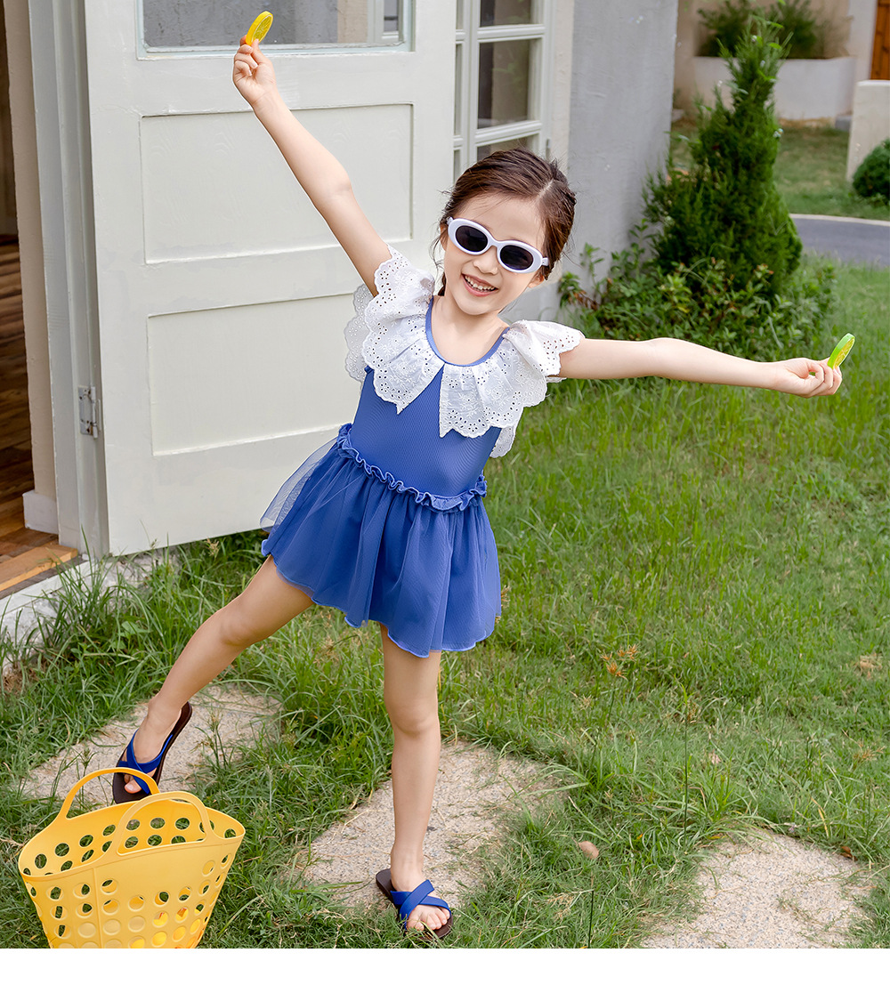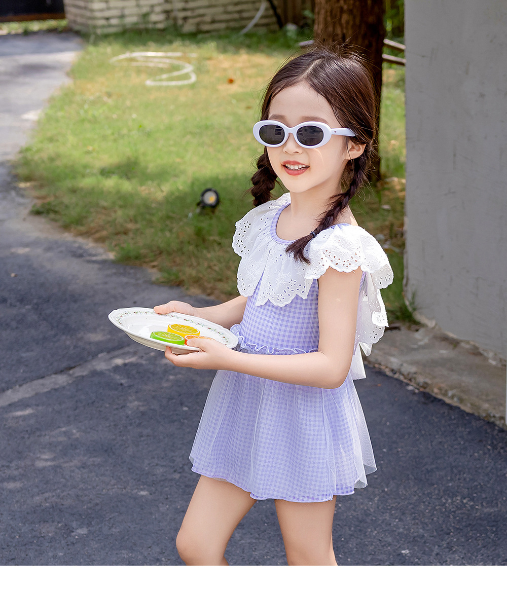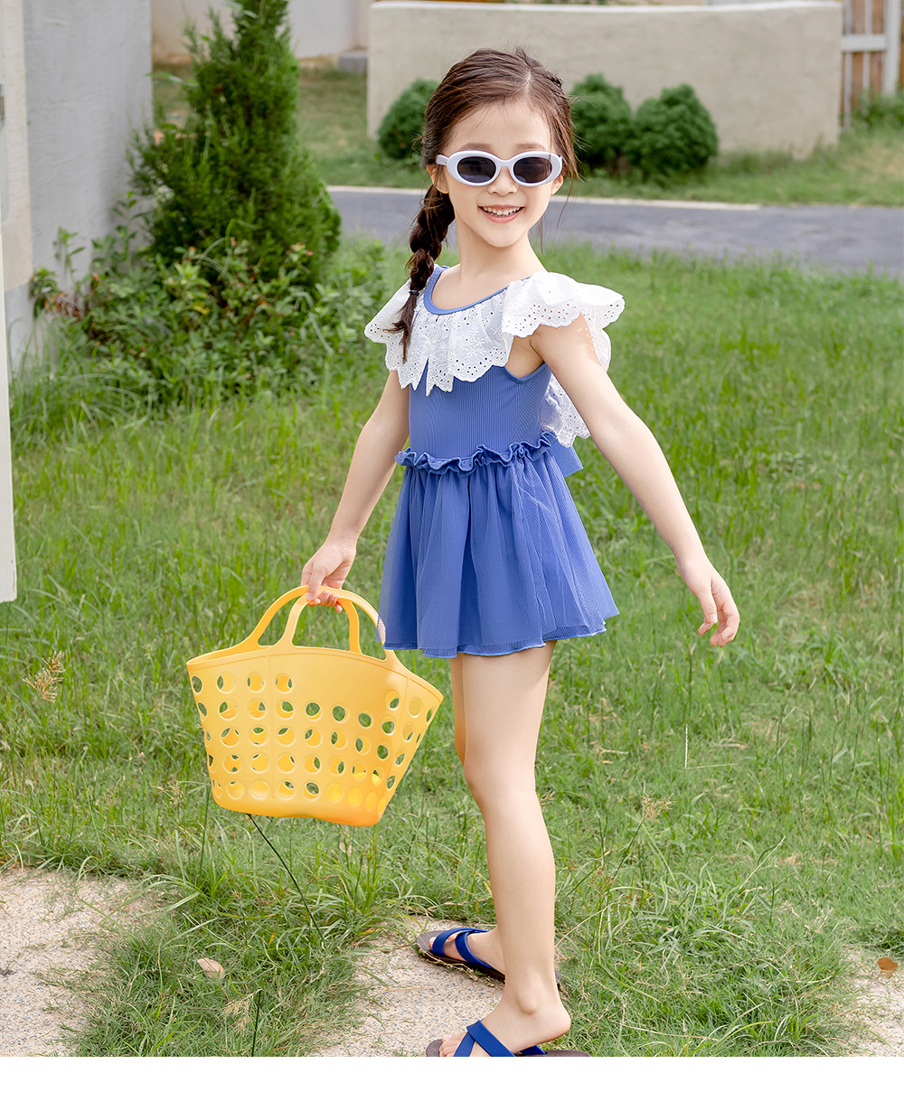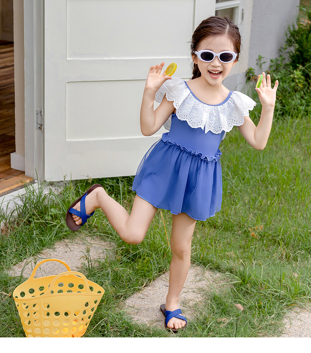 25103LS-Summer children's back skirt one-piece swimsuit + swimming cap