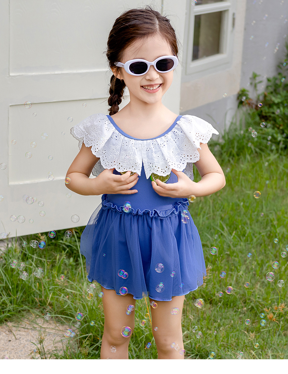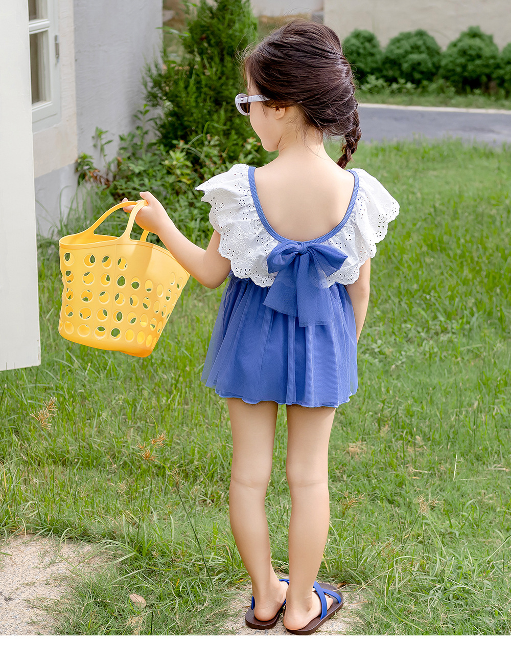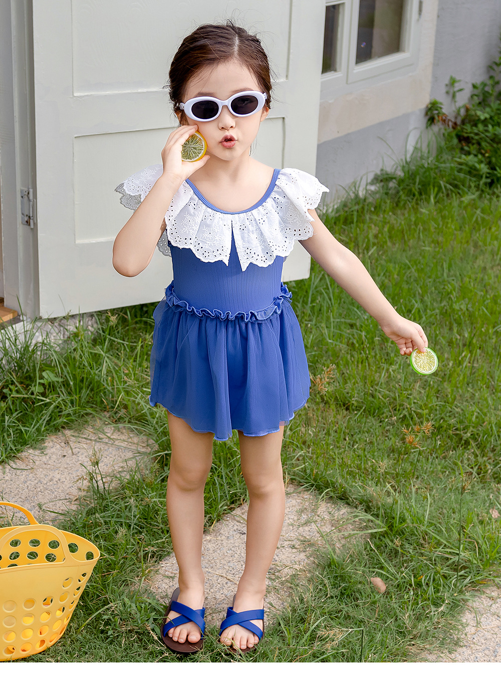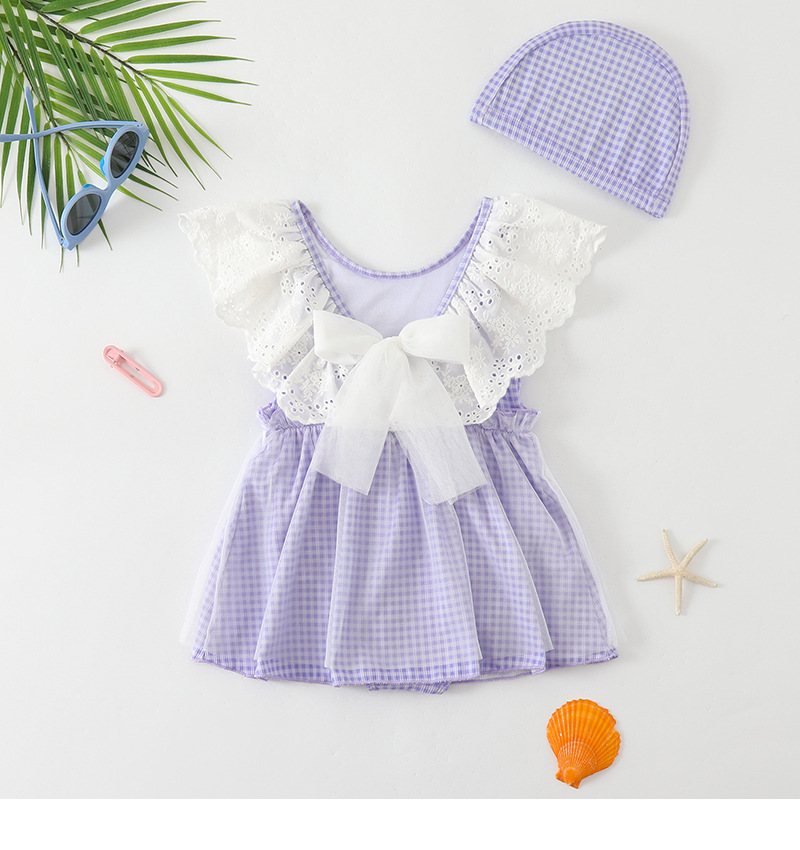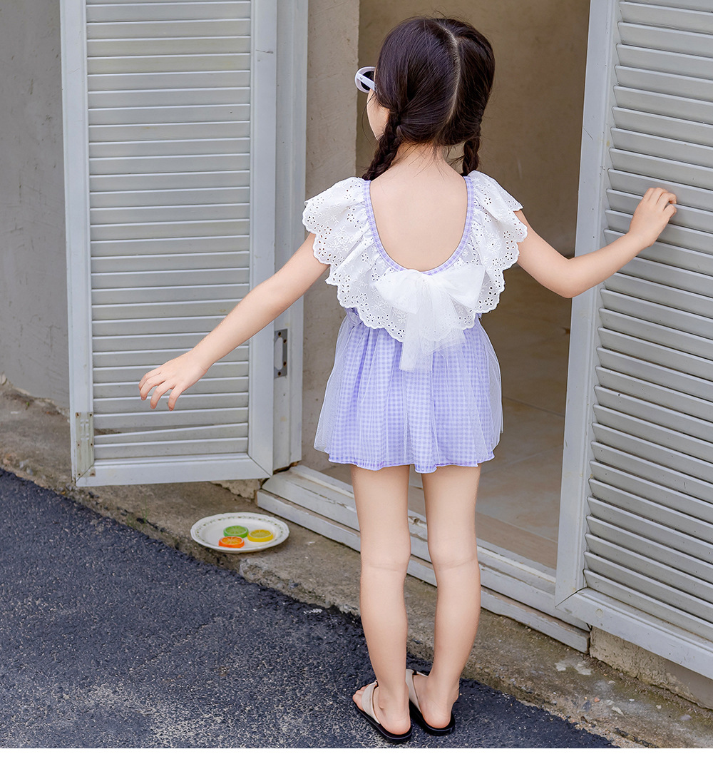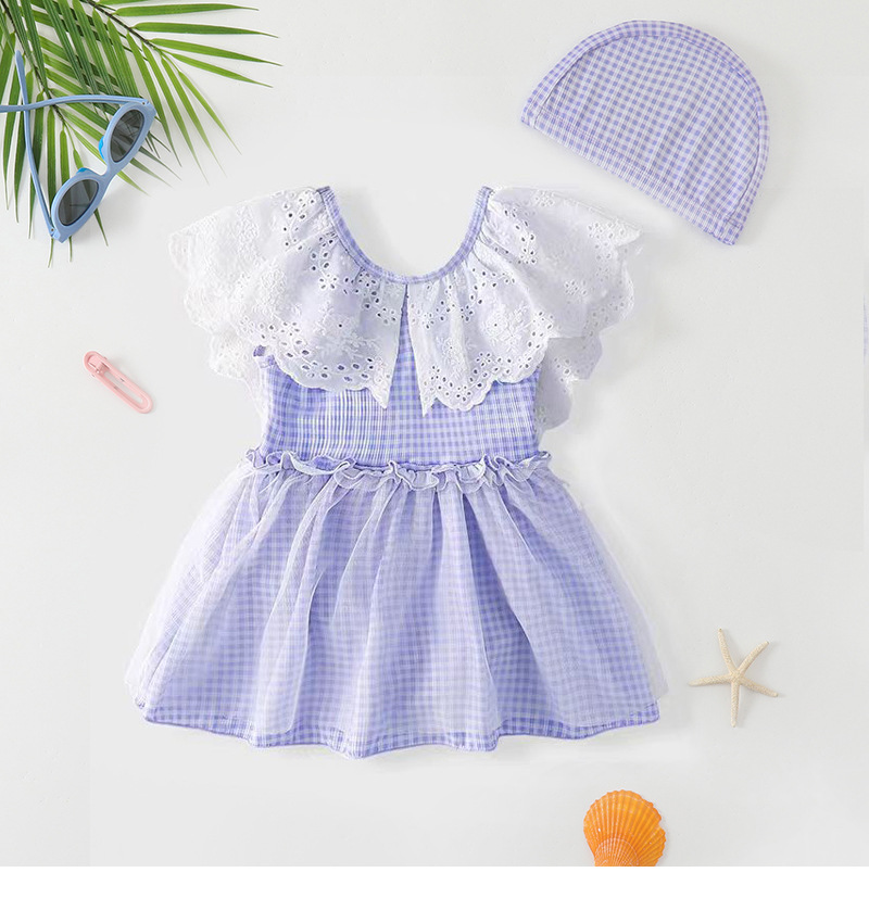 25103LS-Summer children's back skirt one-piece swimsuit + swimming cap
