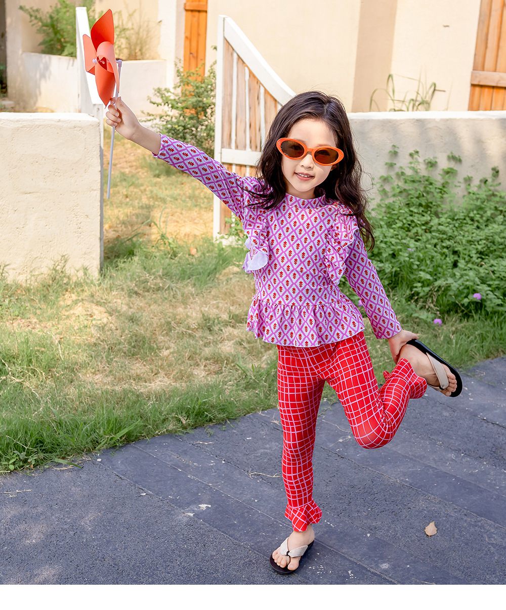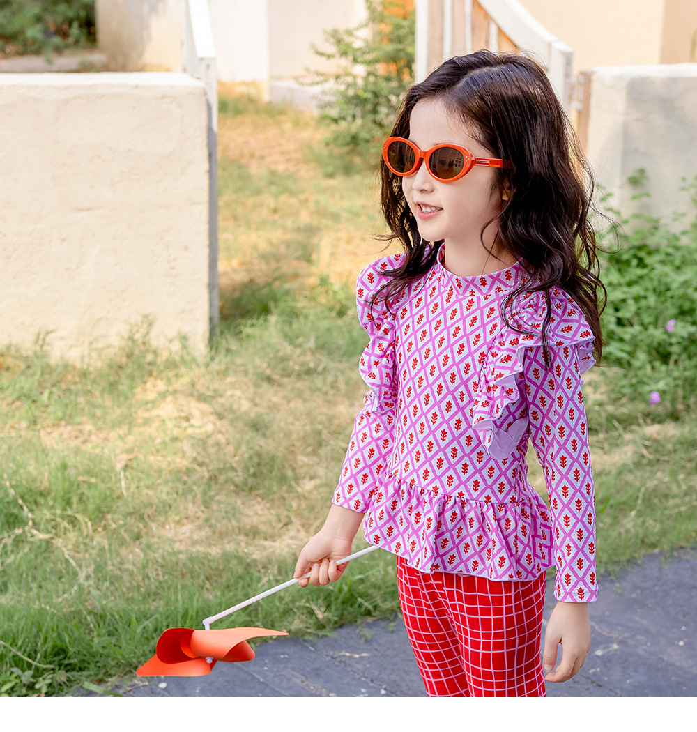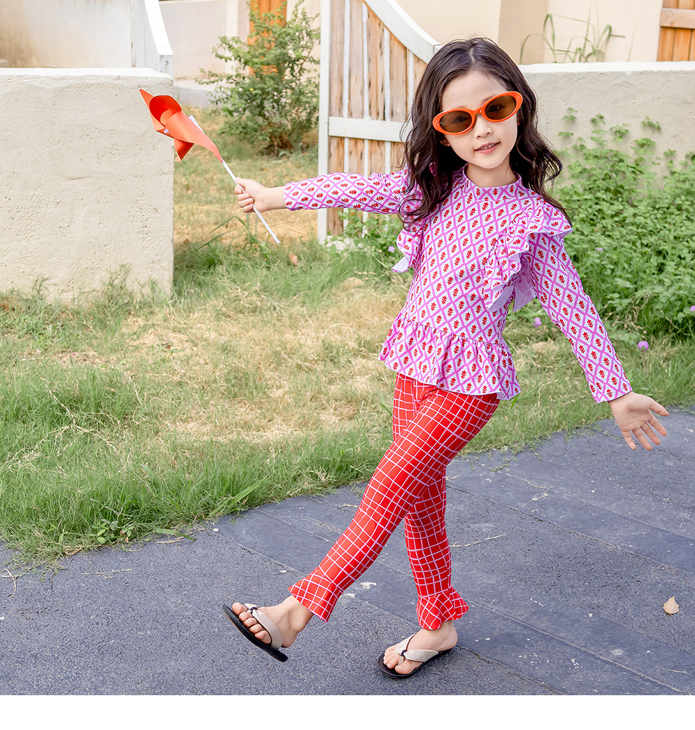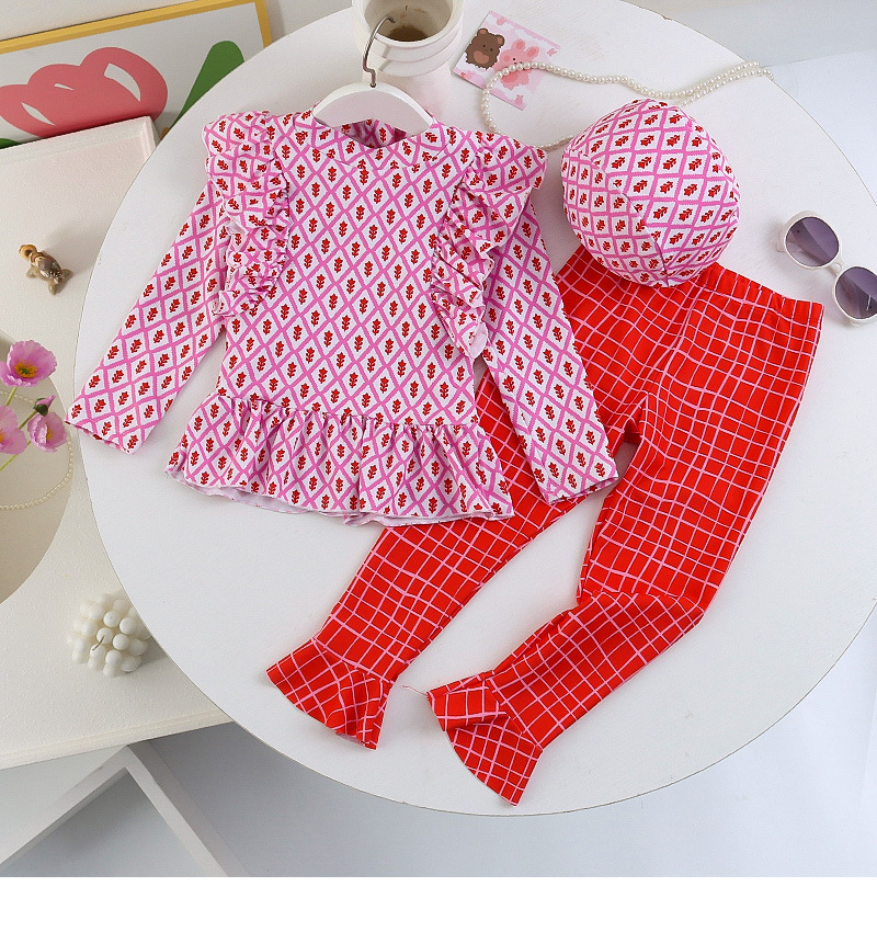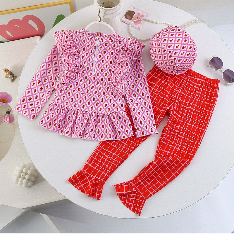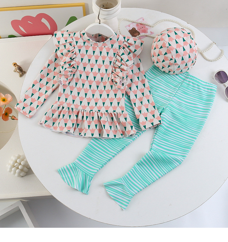 25107TG-Children's floral long-sleeved swimsuit and trousers set + swimming cap