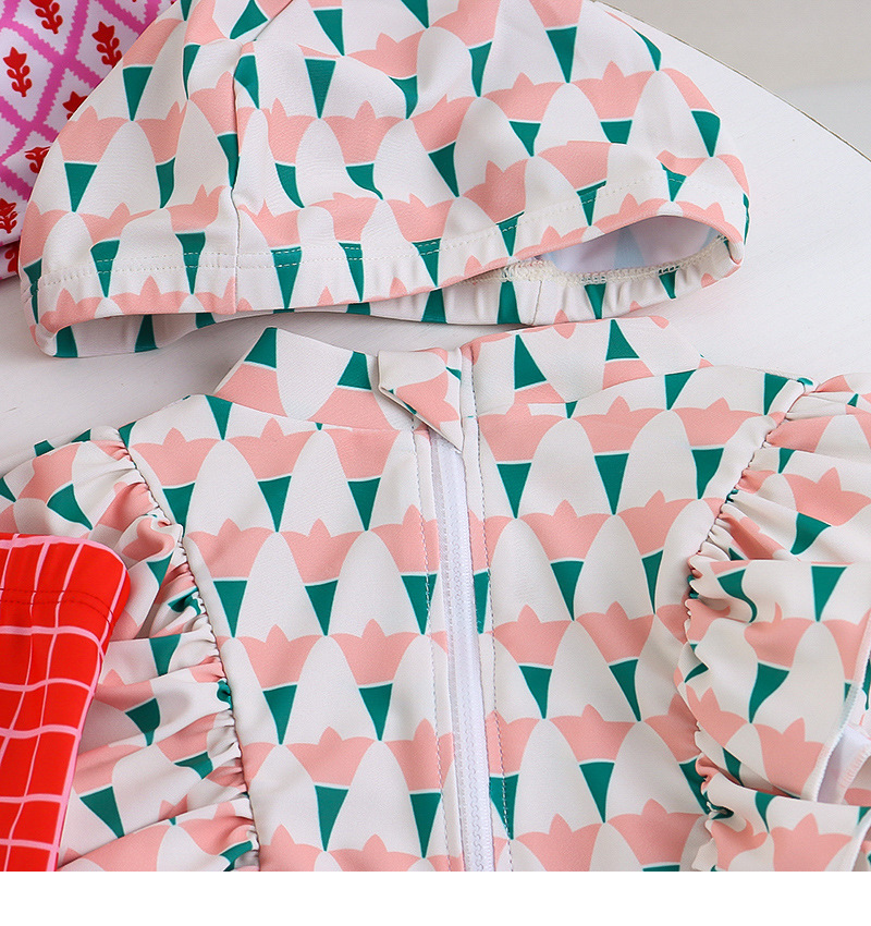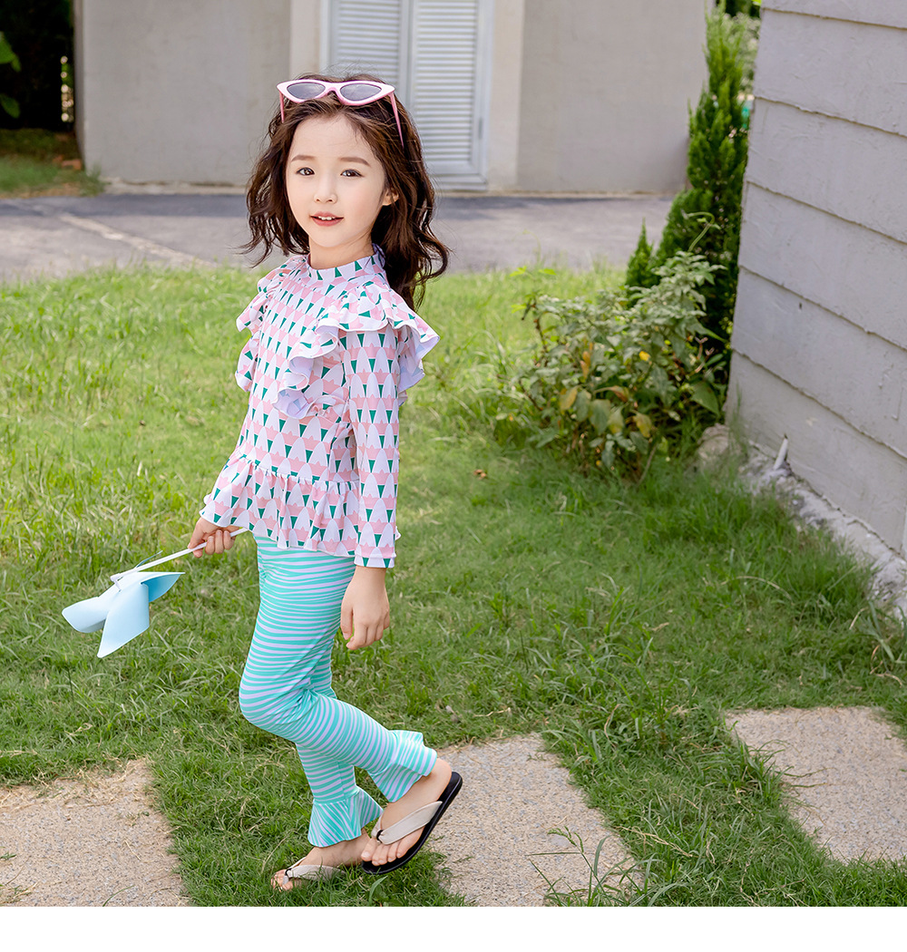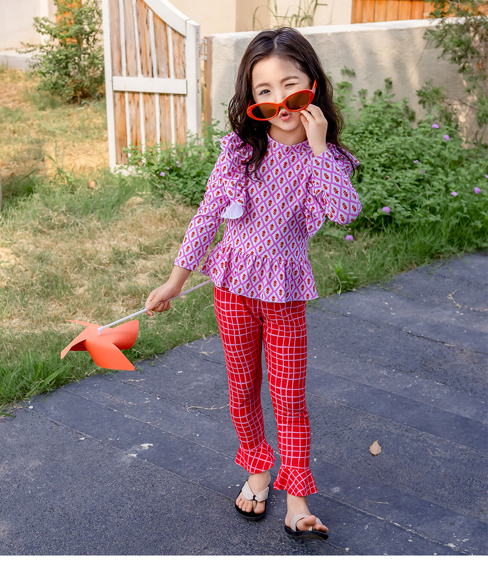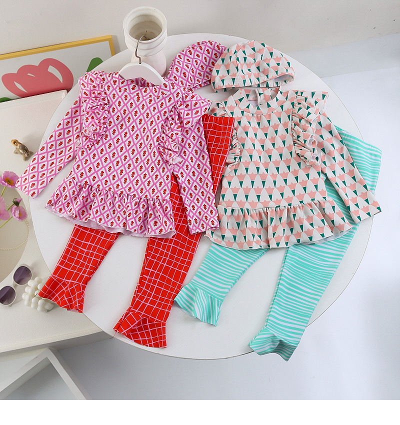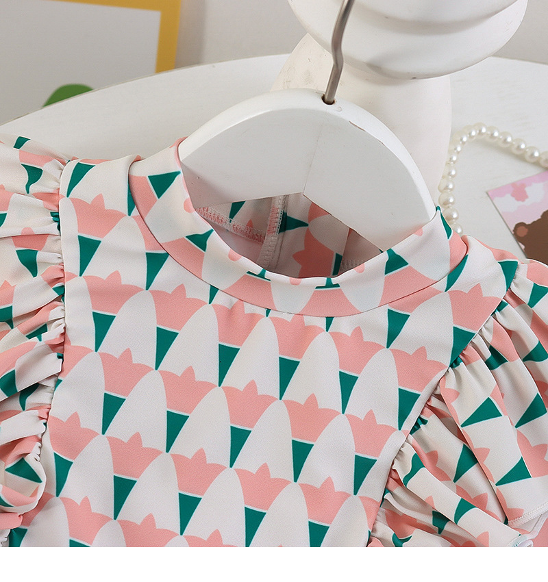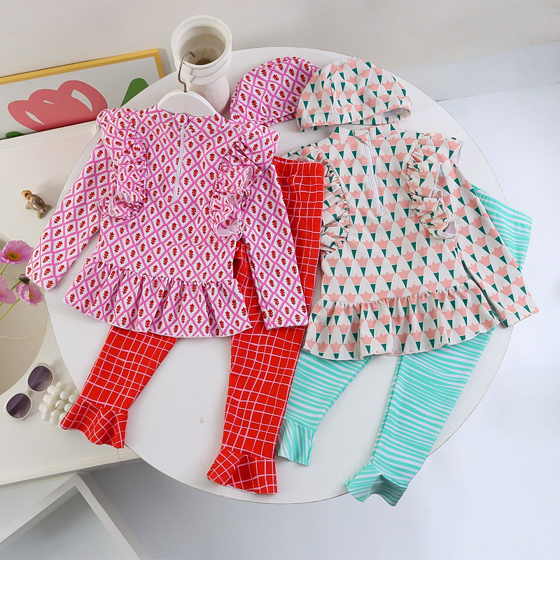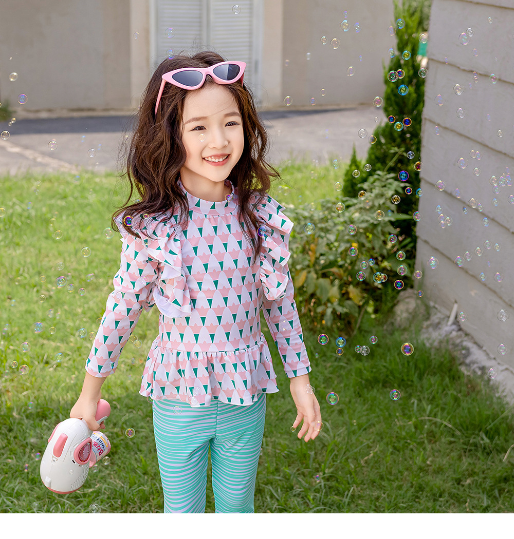 25107TG-Children's floral long-sleeved swimsuit and trousers set + swimming cap
