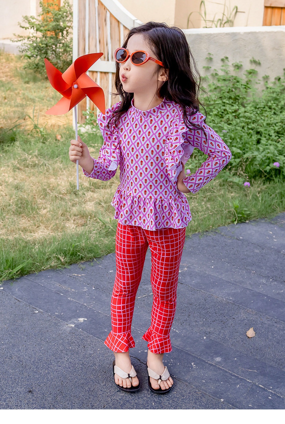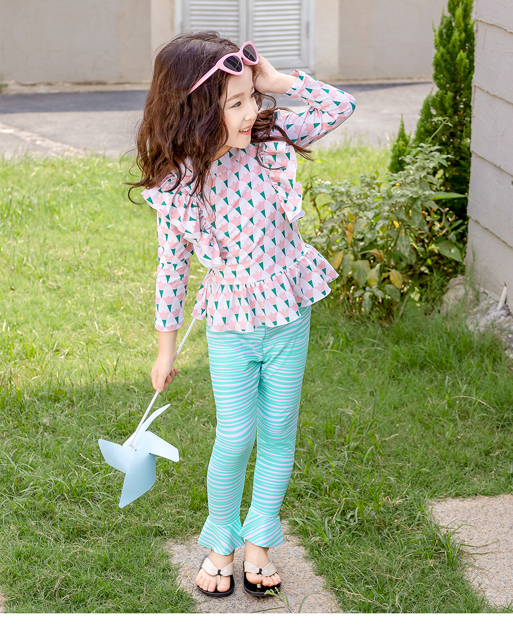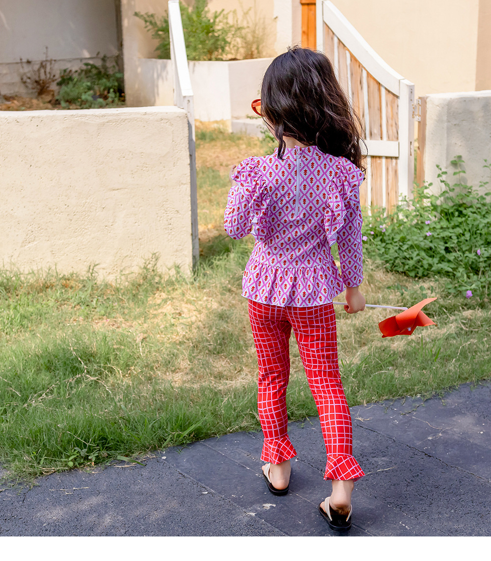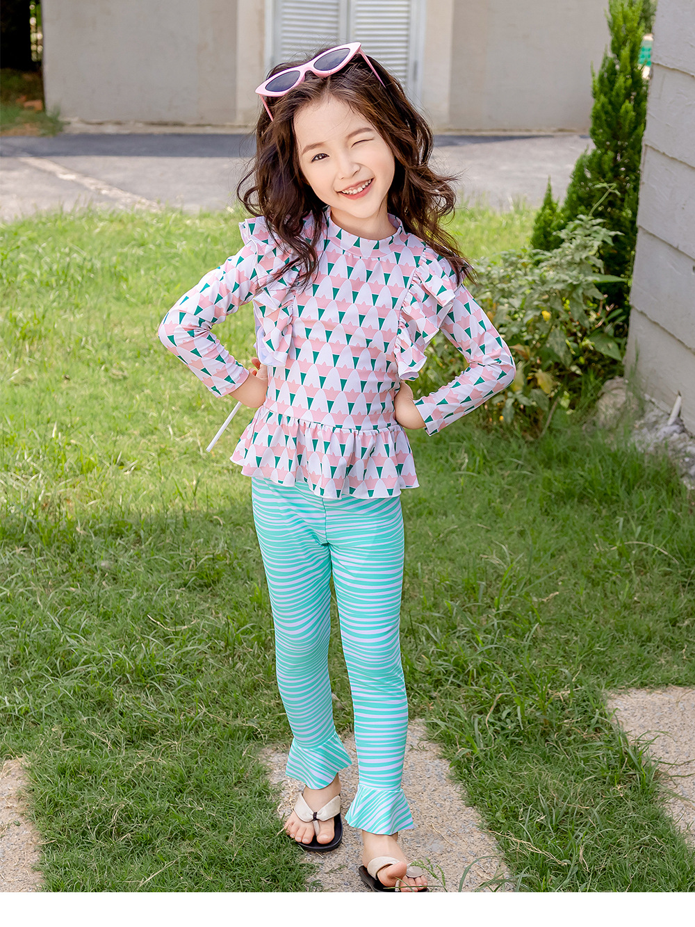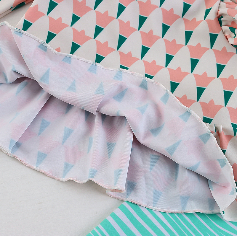 25107TG-Children's floral long-sleeved swimsuit and trousers set + swimming cap