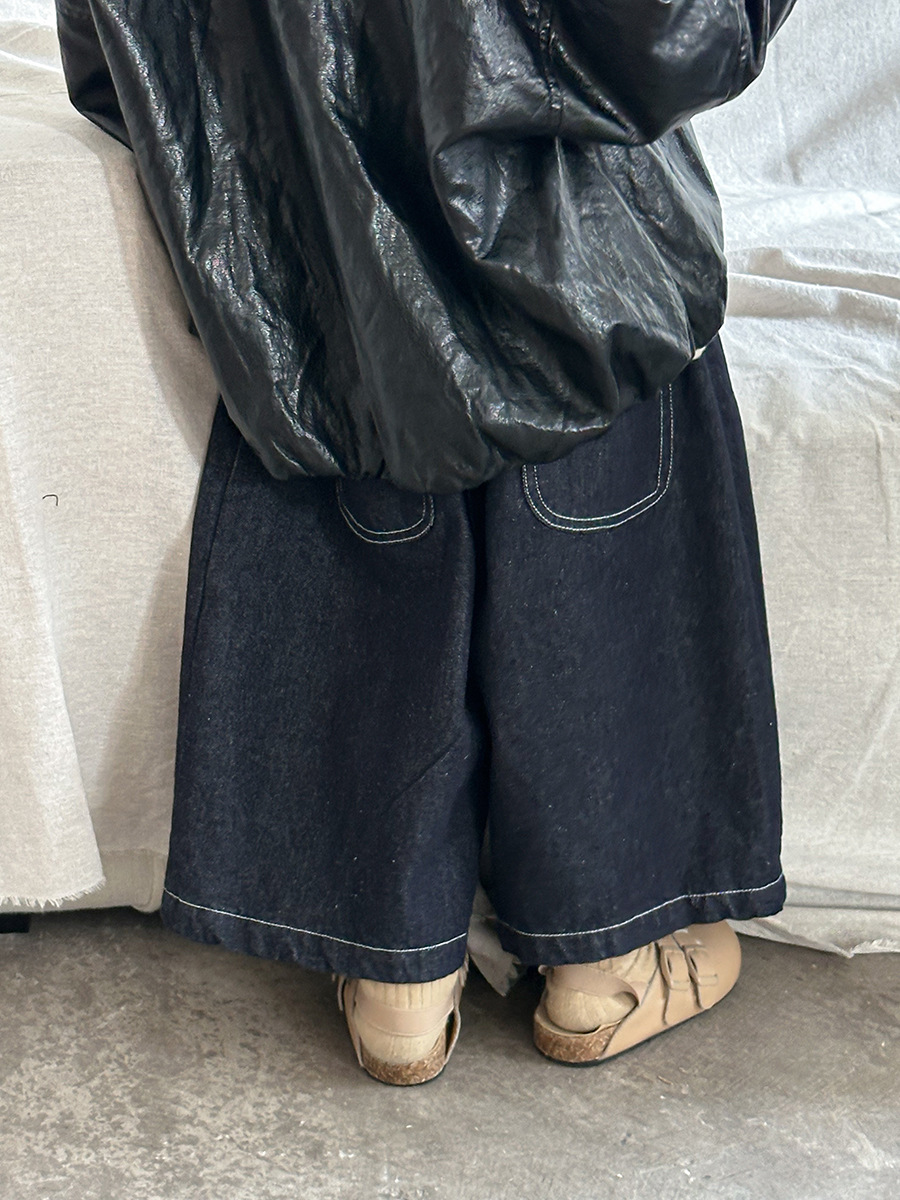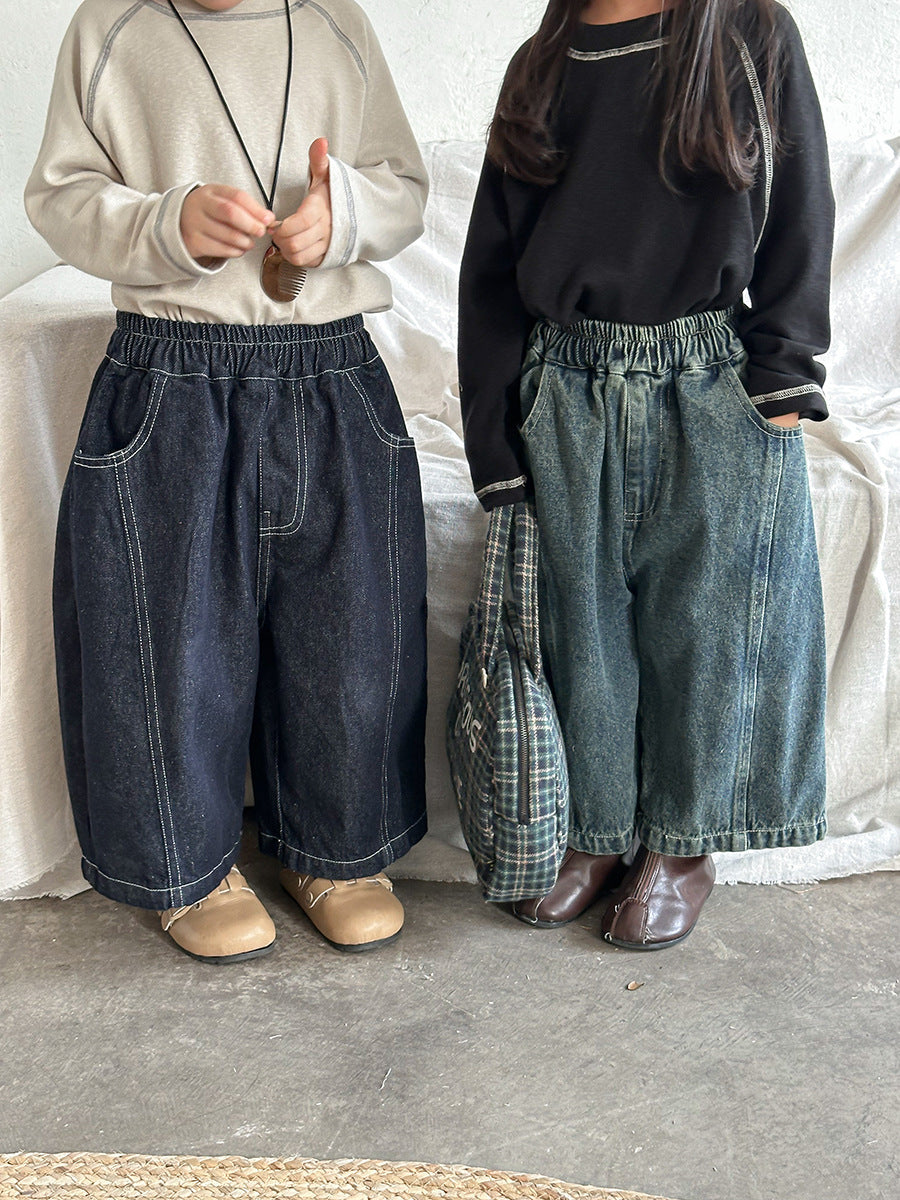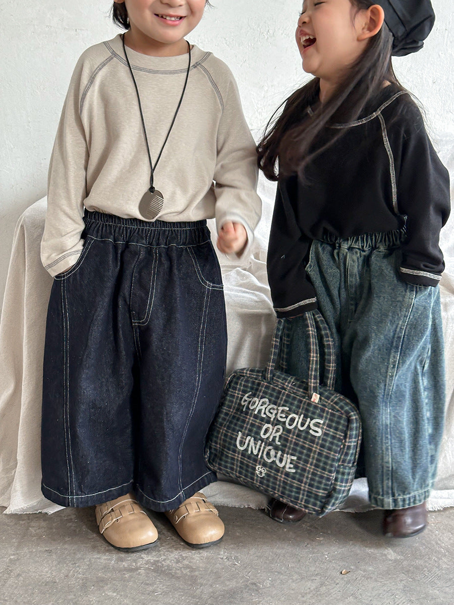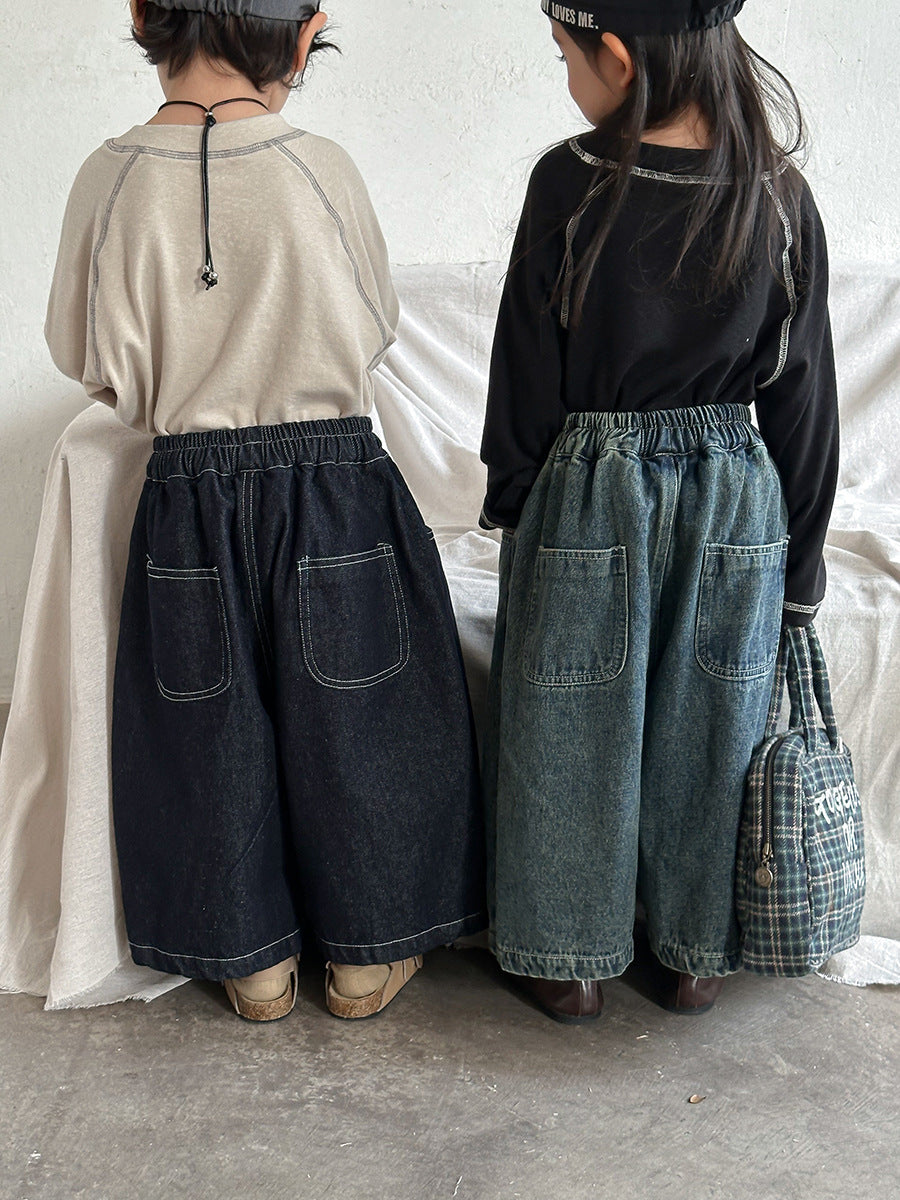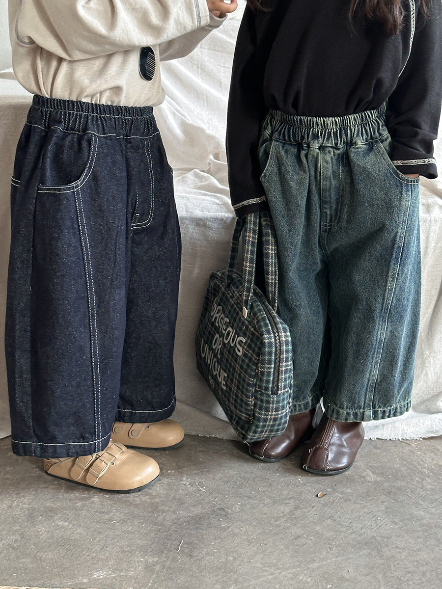 25Q09PA-春季拼接寬鬆直筒牛仔長褲