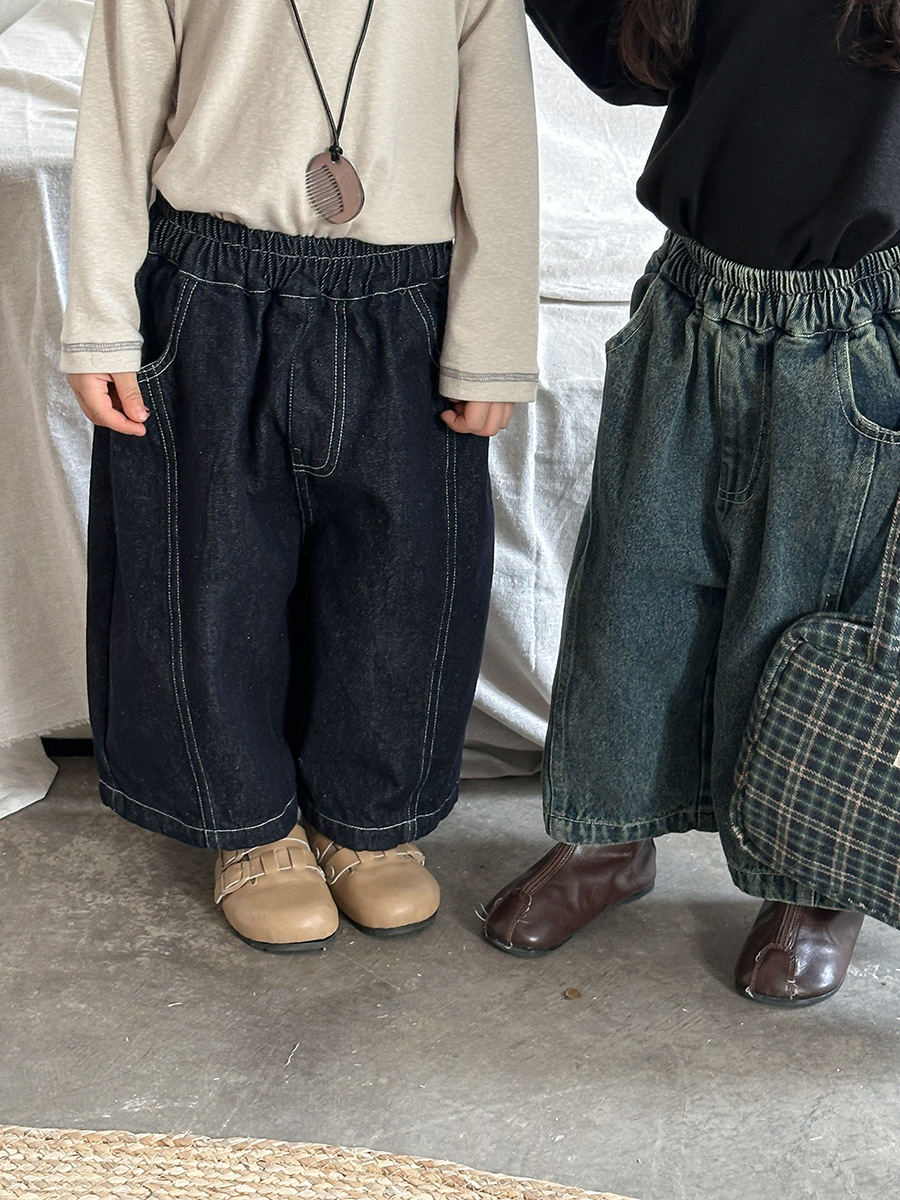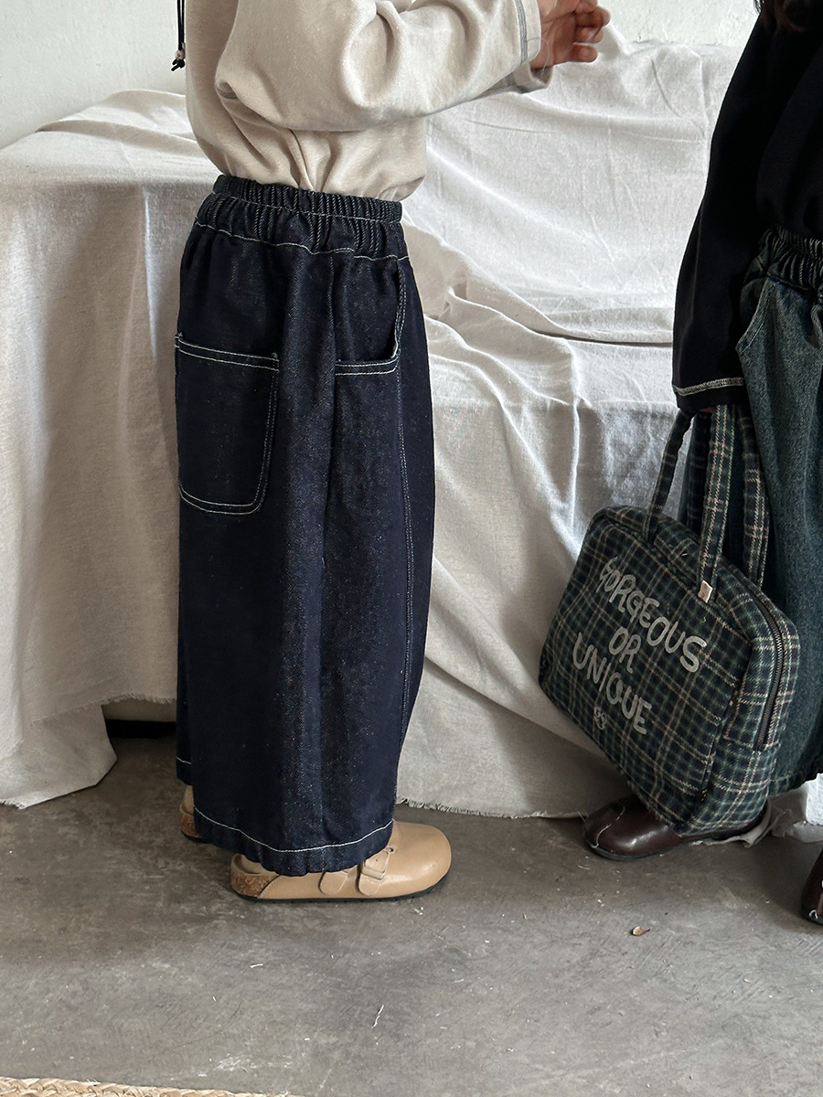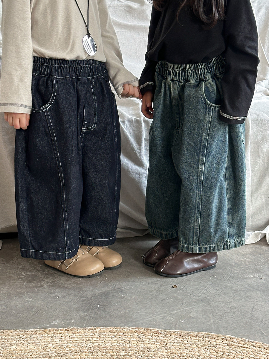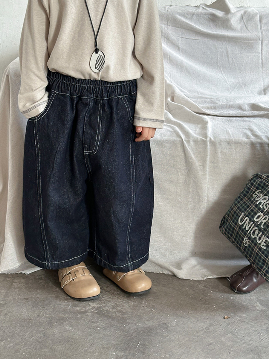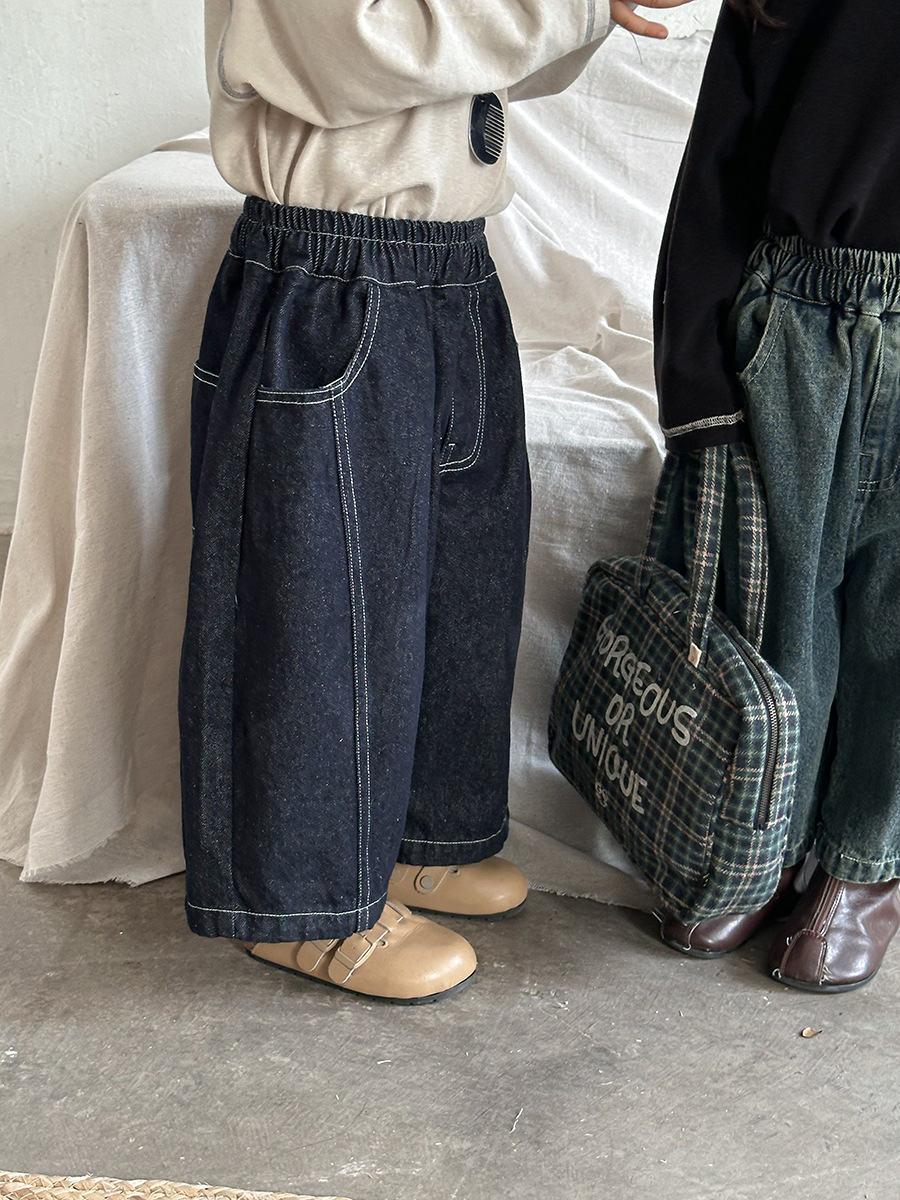 25Q09PA-春季拼接寬鬆直筒牛仔長褲