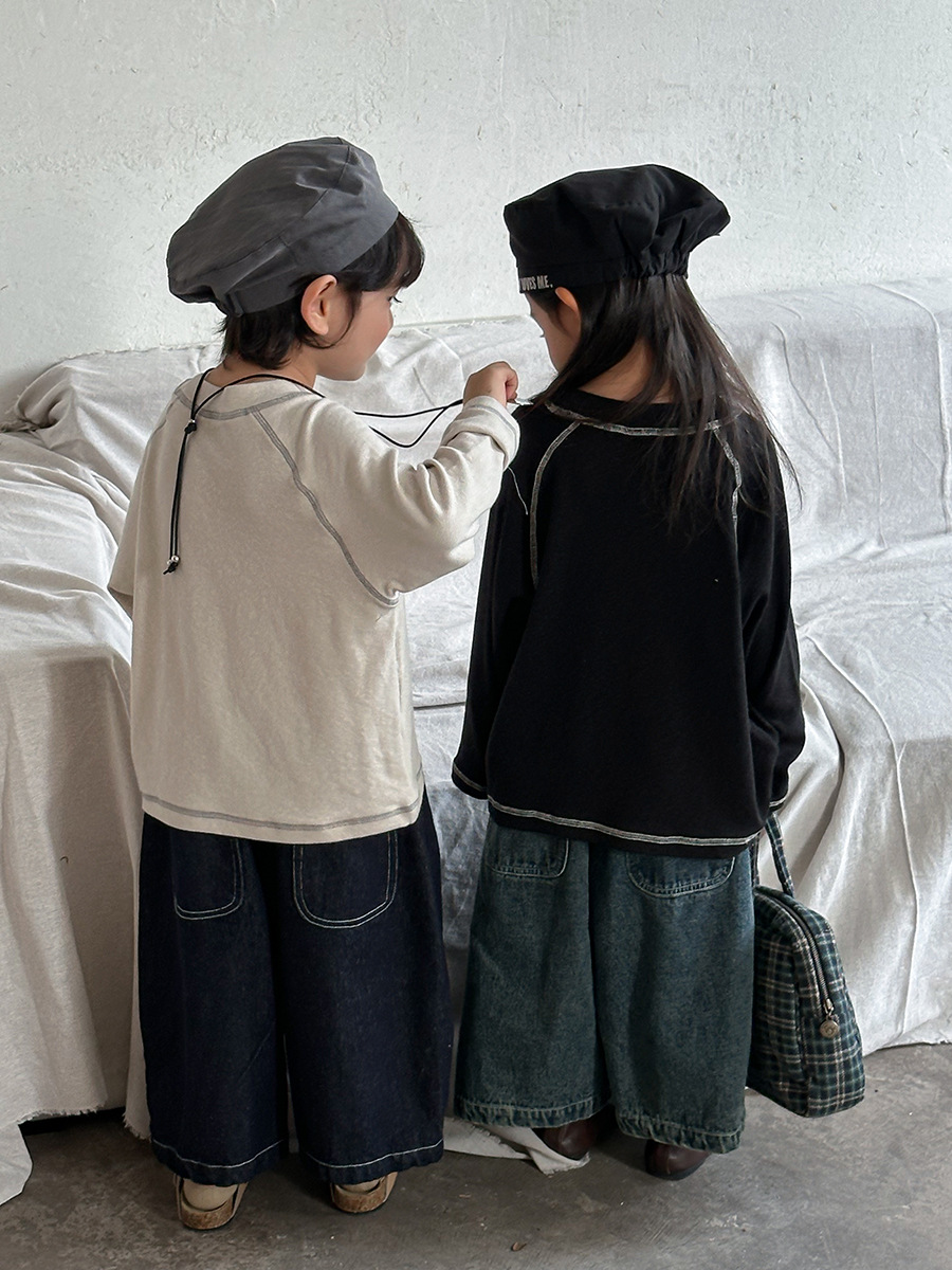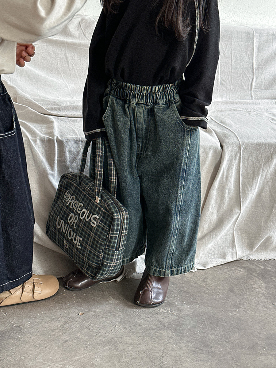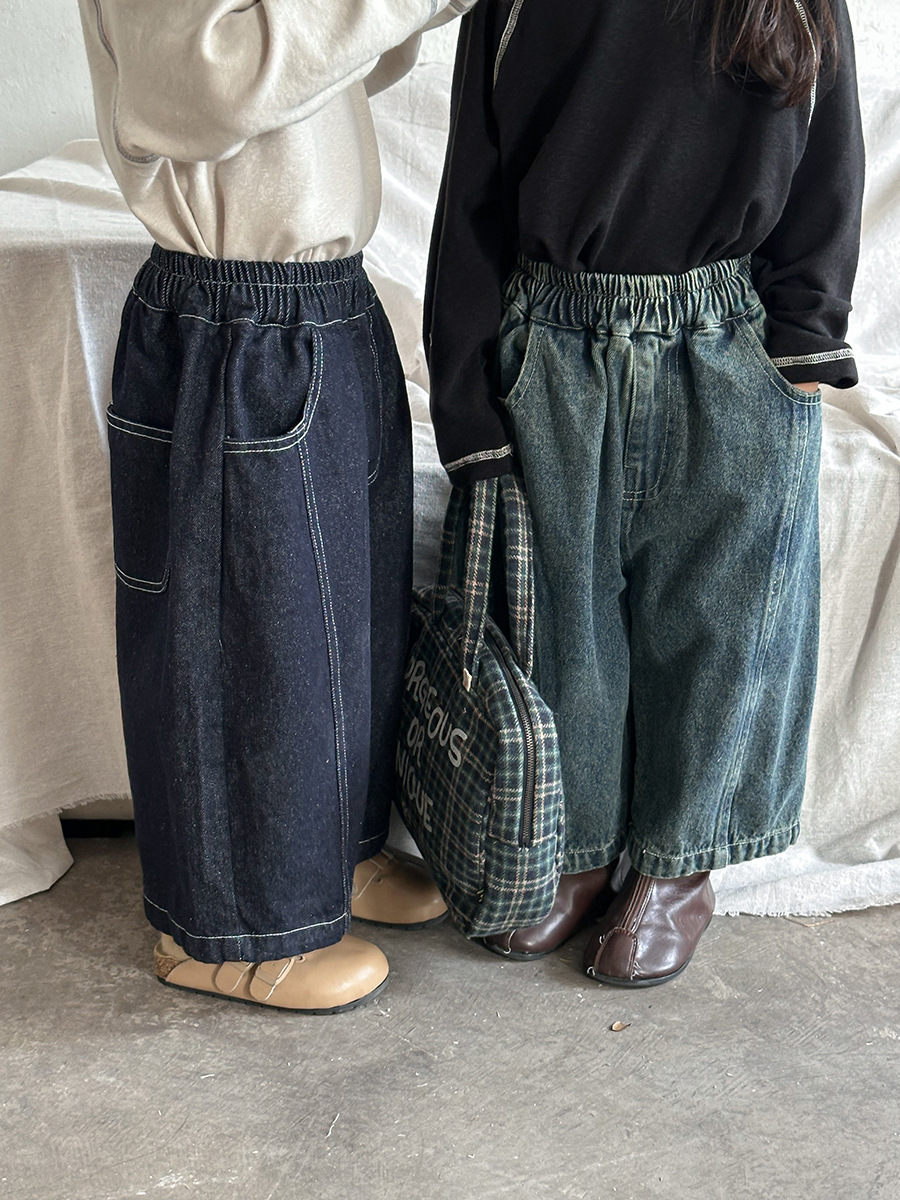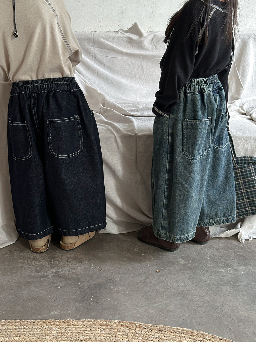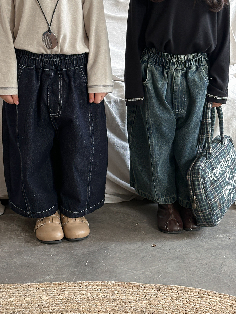 25Q09PA-春季拼接寬鬆直筒牛仔長褲