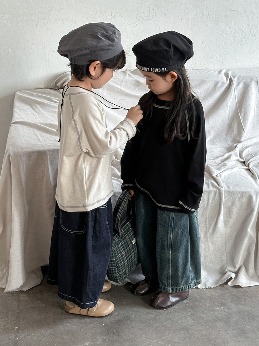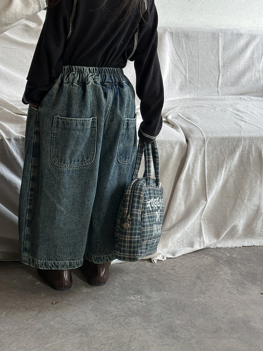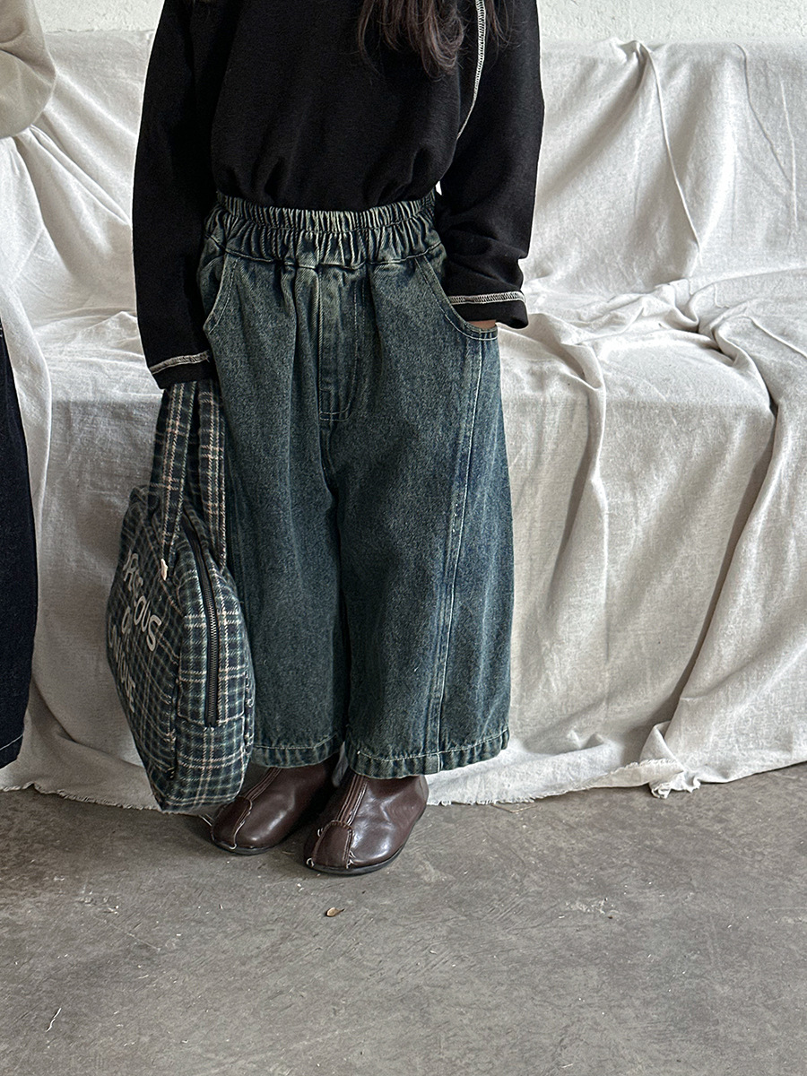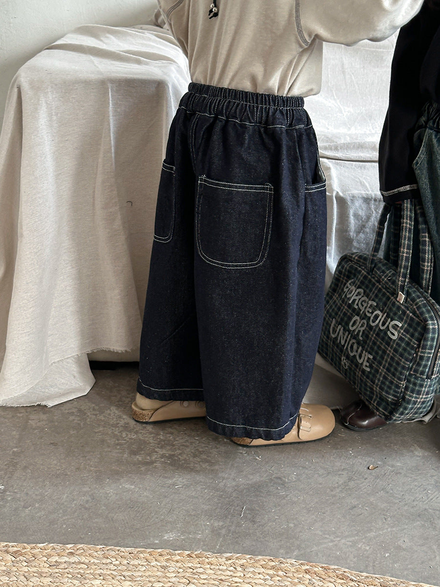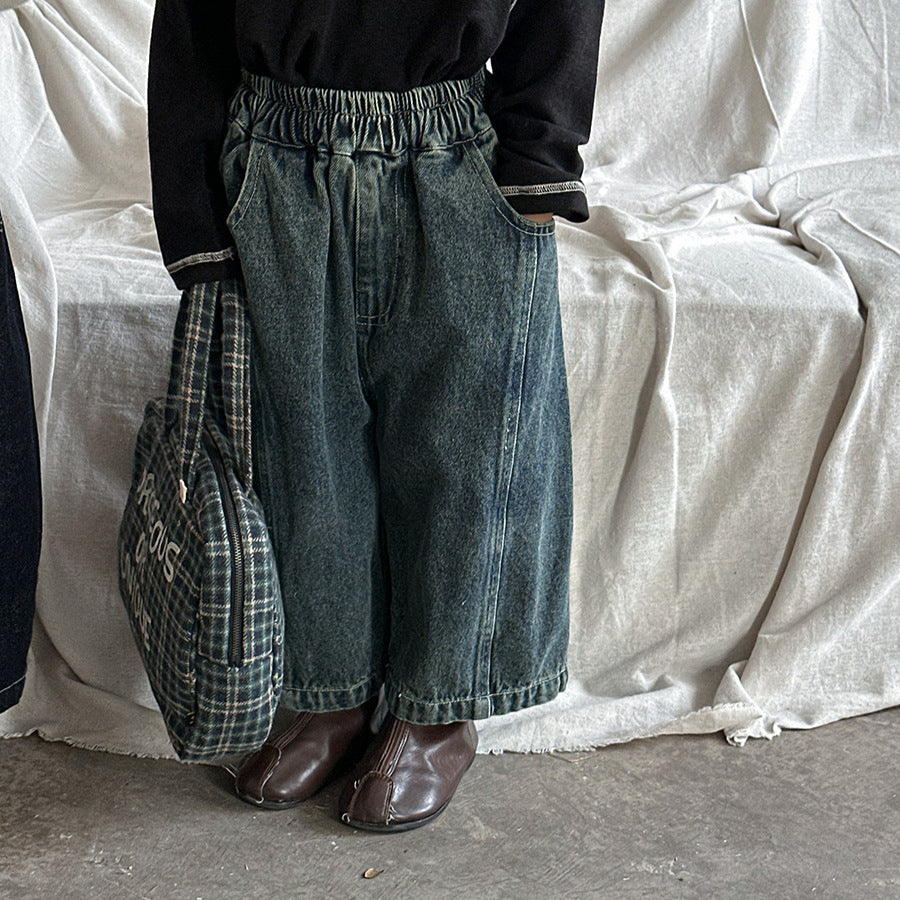 25Q09PA-春季拼接寬鬆直筒牛仔長褲