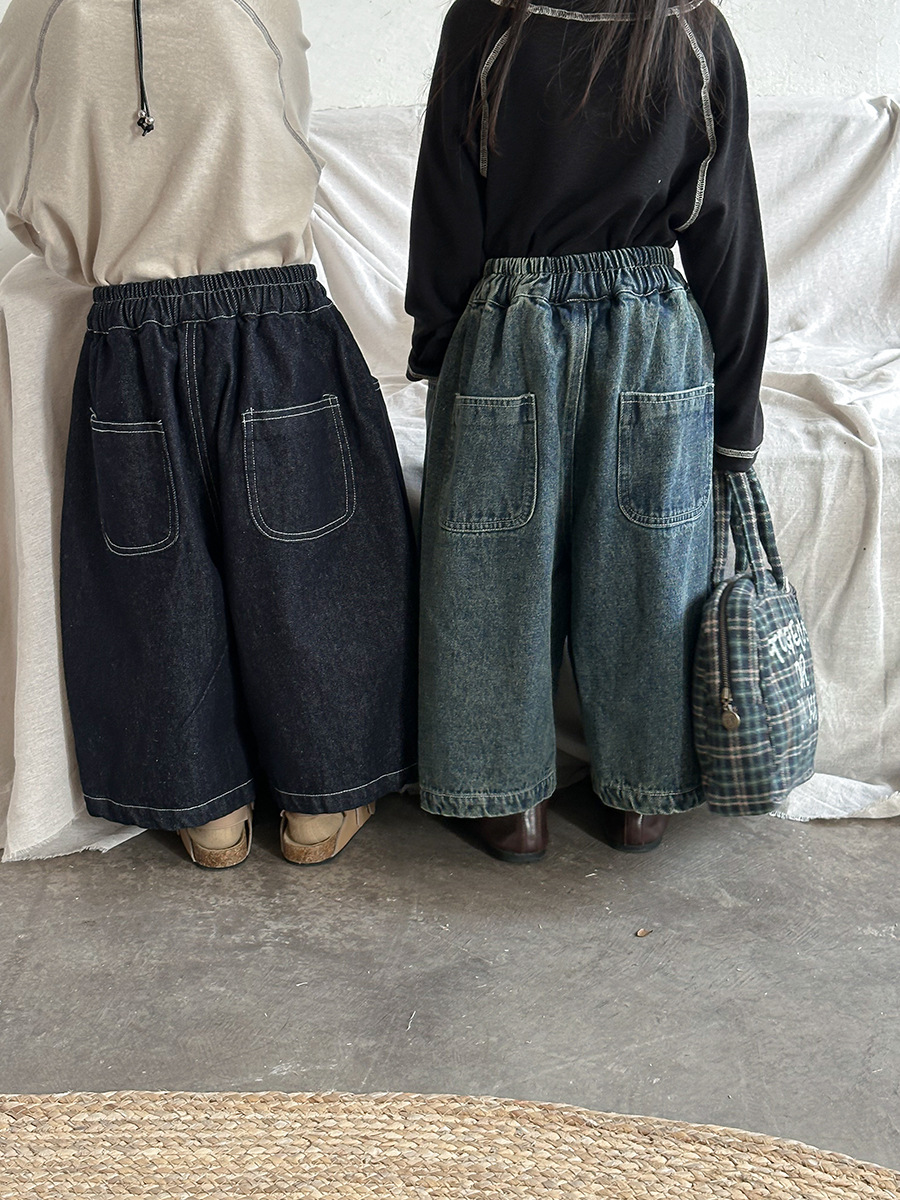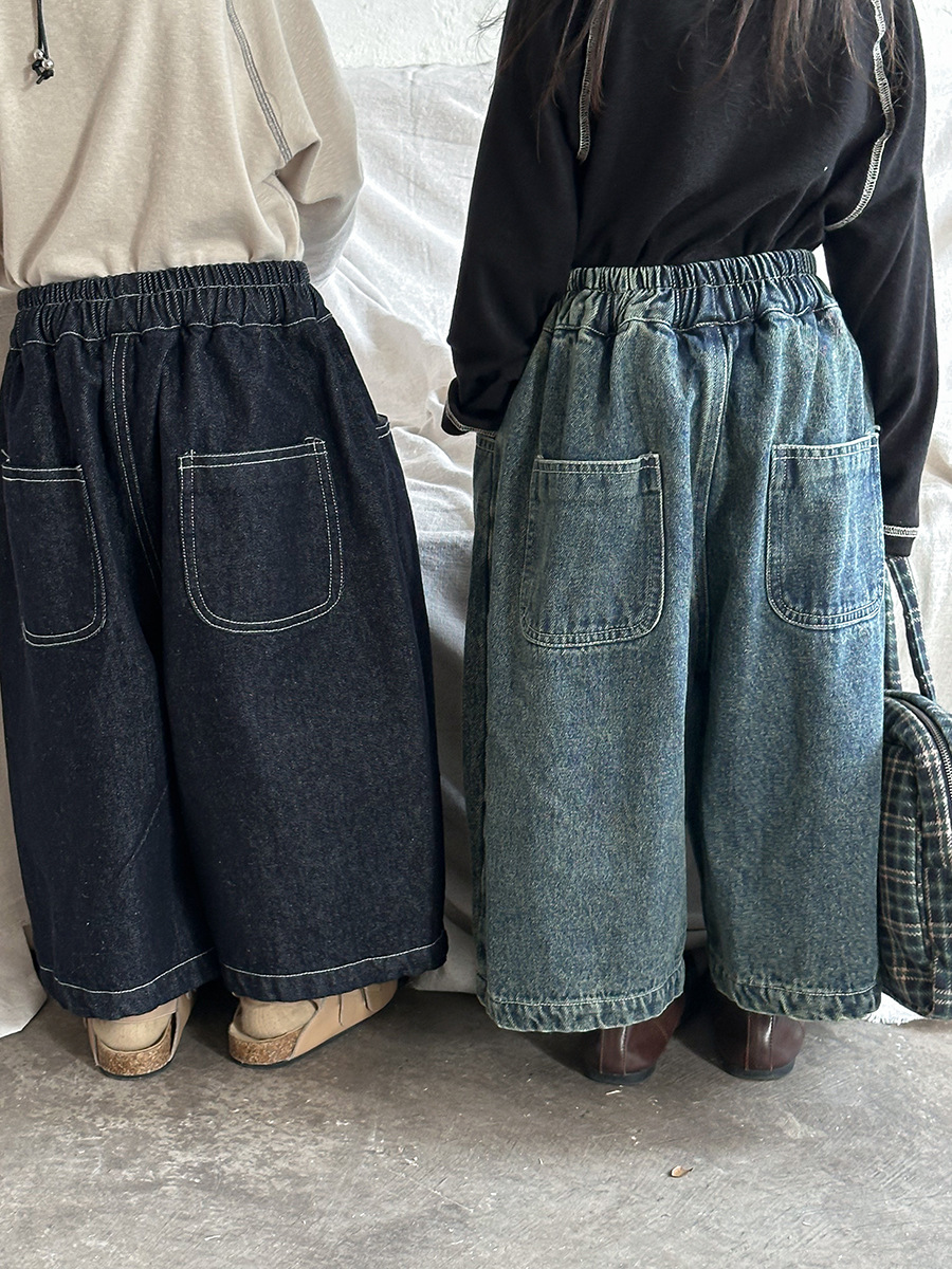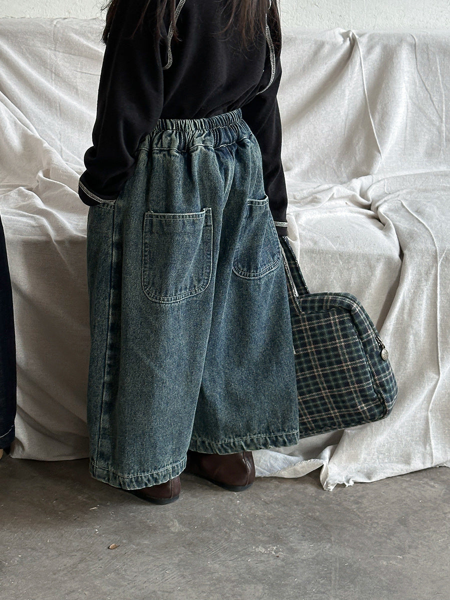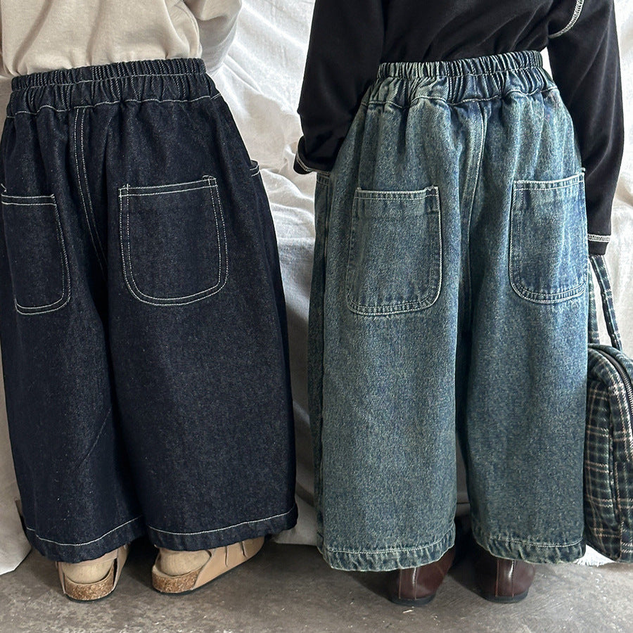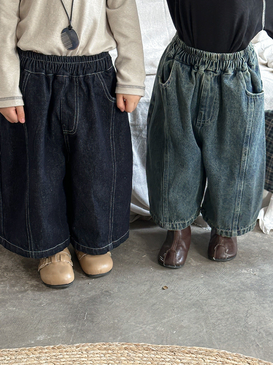 25Q09PA-春季拼接寬鬆直筒牛仔長褲