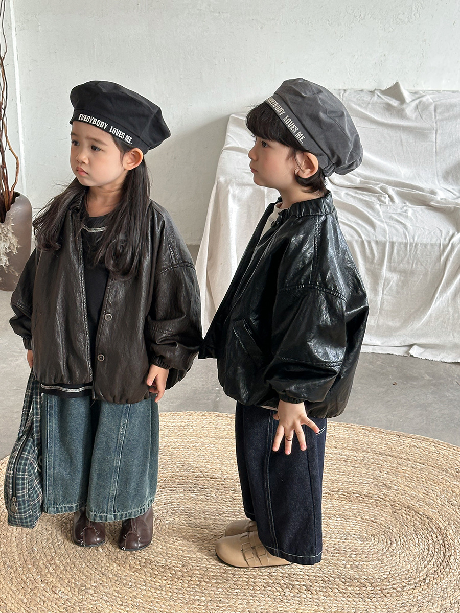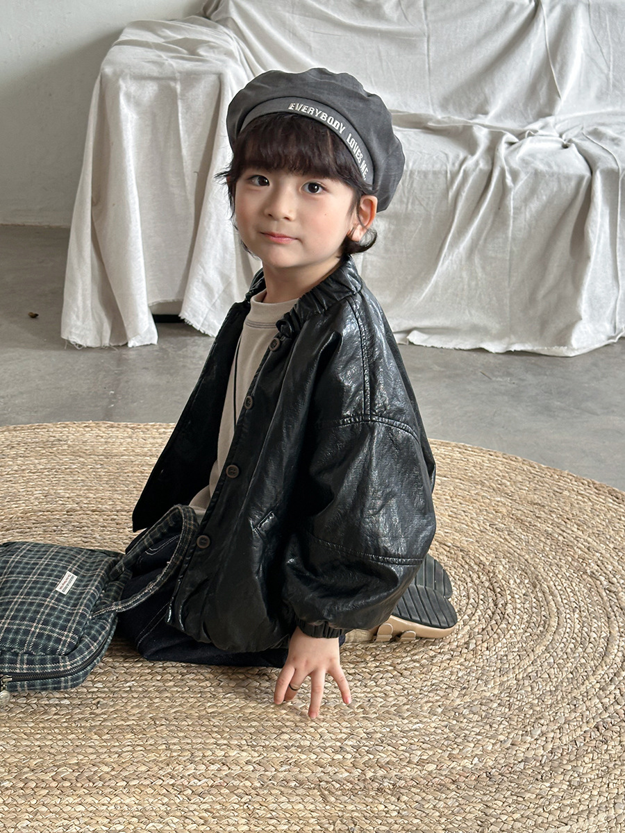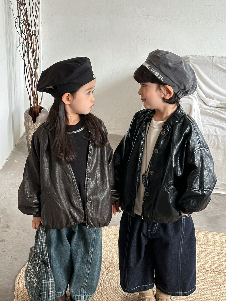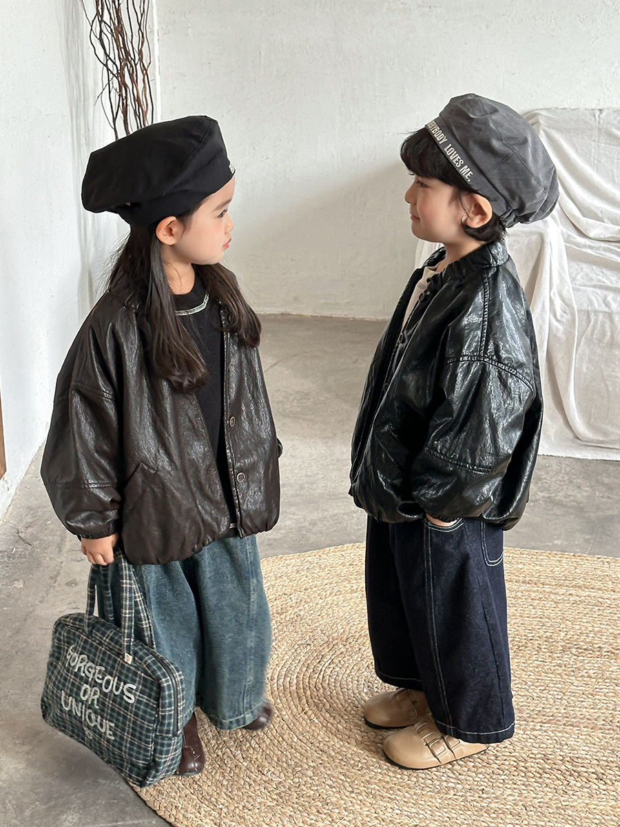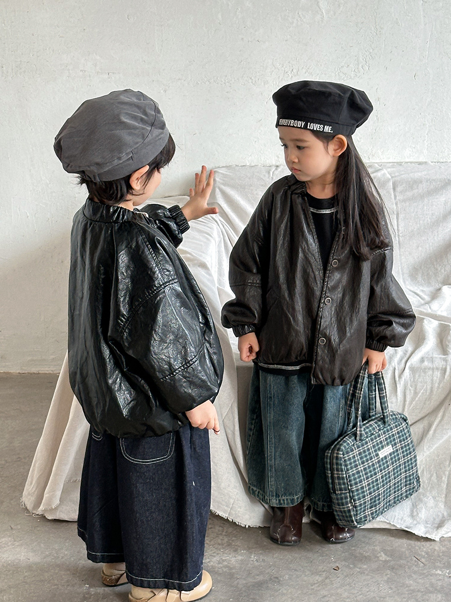 25Q29SE-秋冬兒童棉質復古落肩皮衣外套