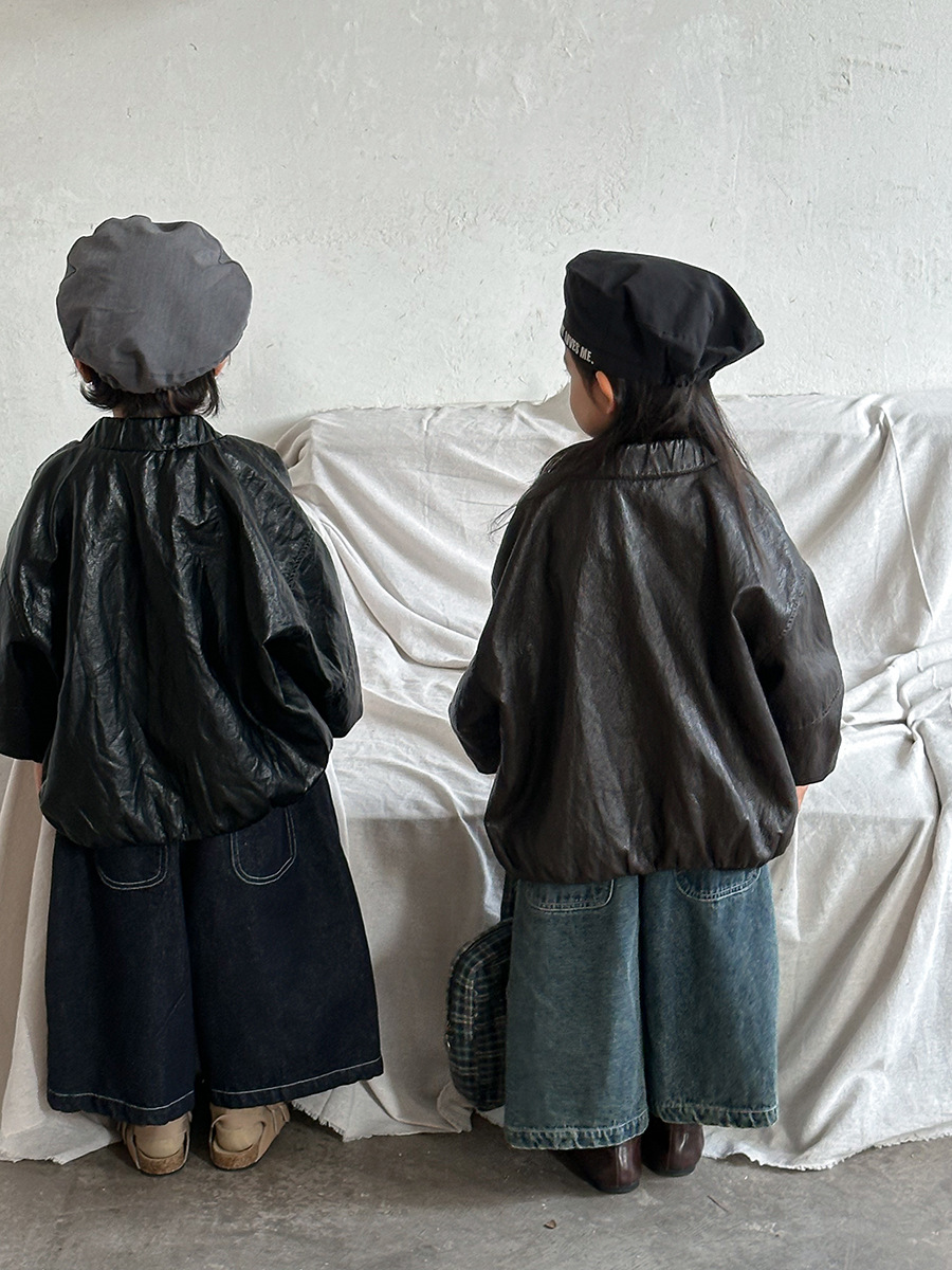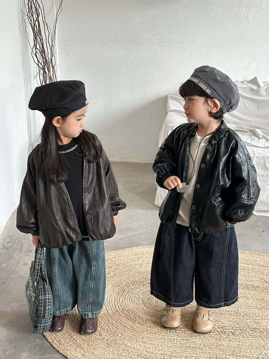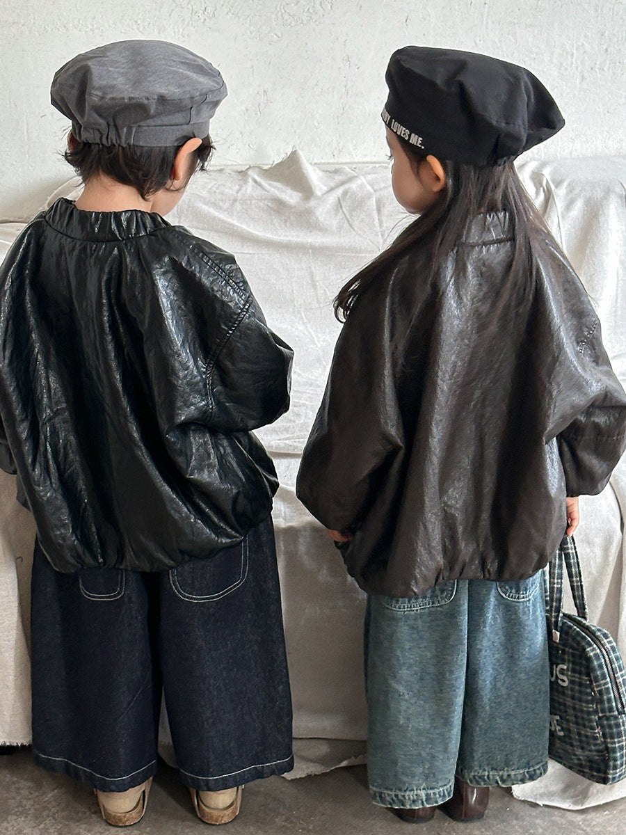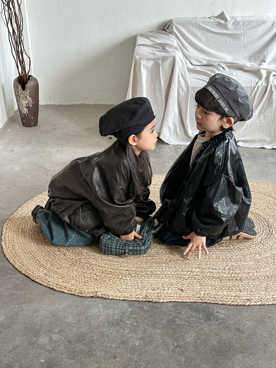 25Q29SE-秋冬兒童棉質復古落肩皮衣外套