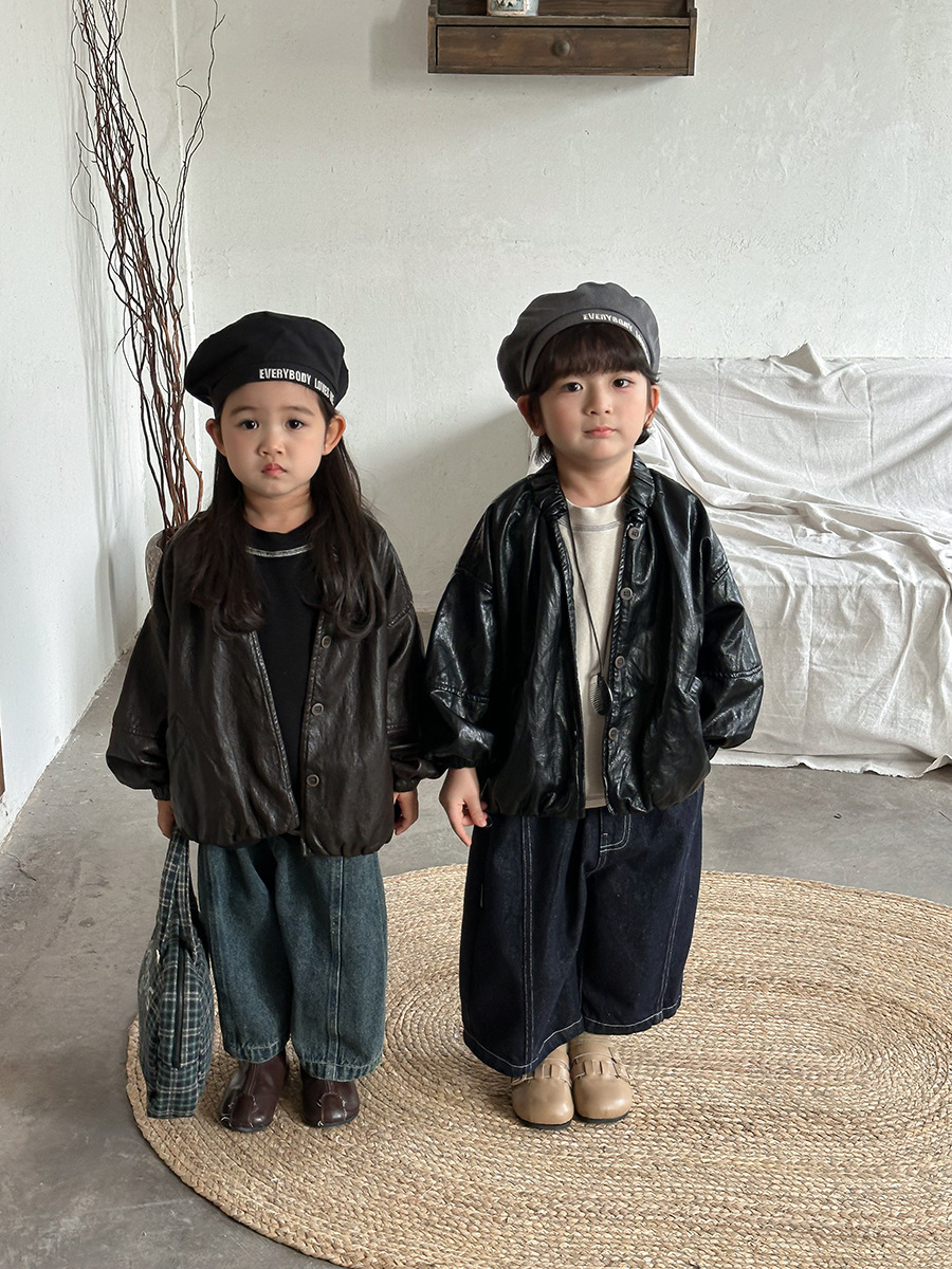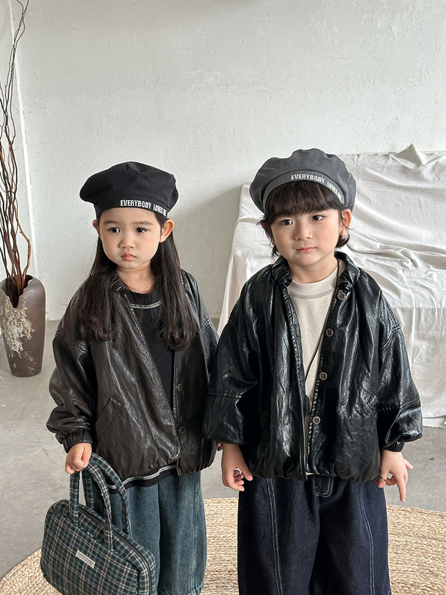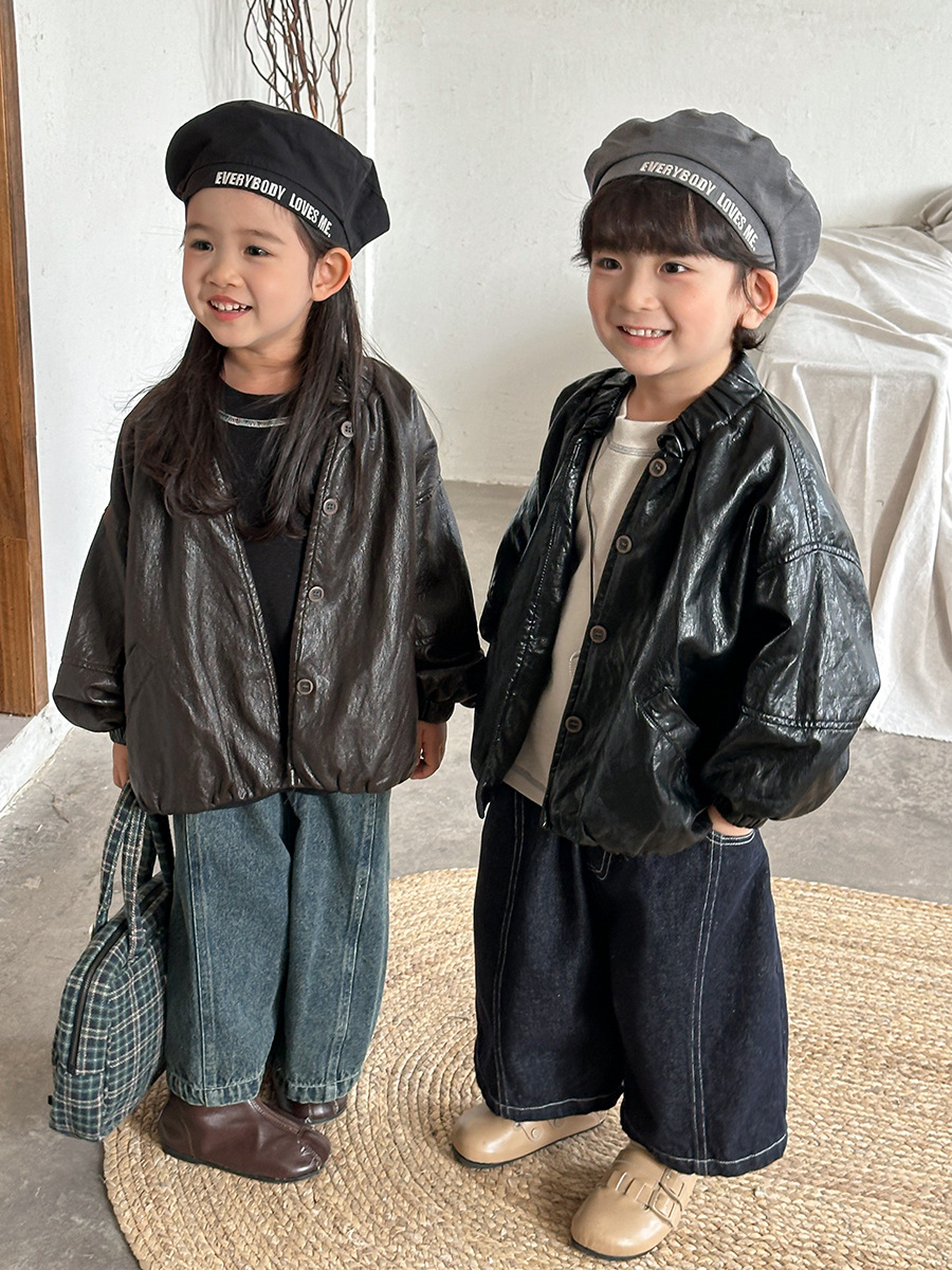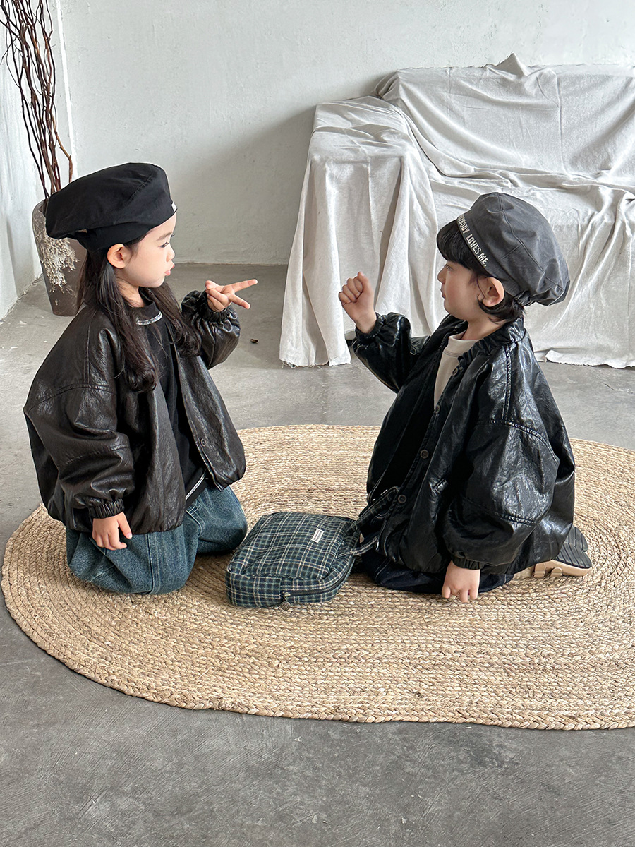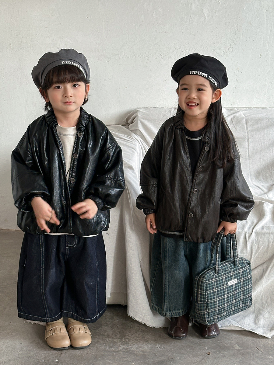 25Q29SE-秋冬兒童棉質復古落肩皮衣外套