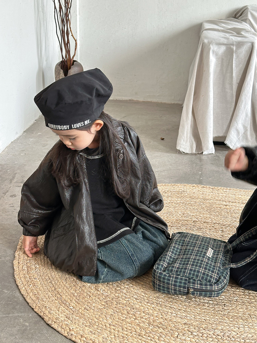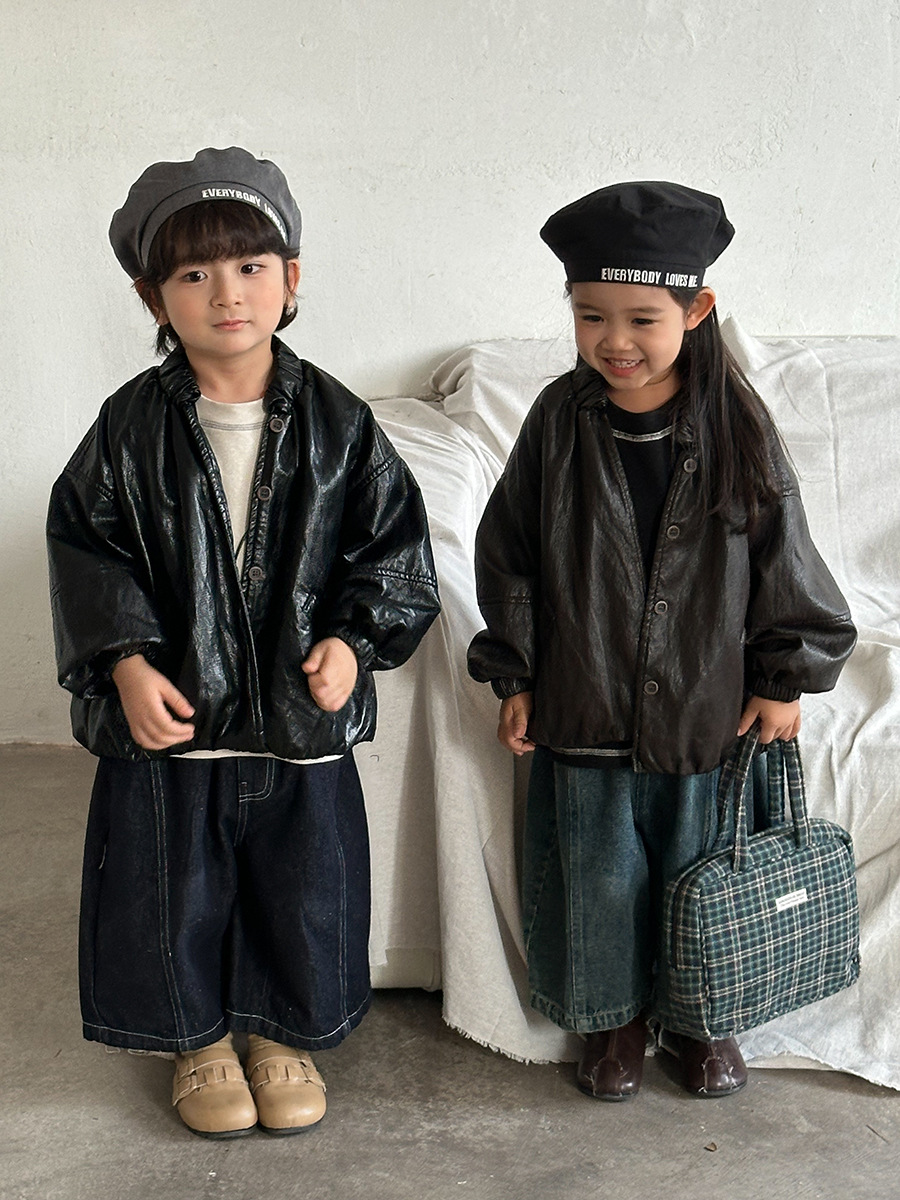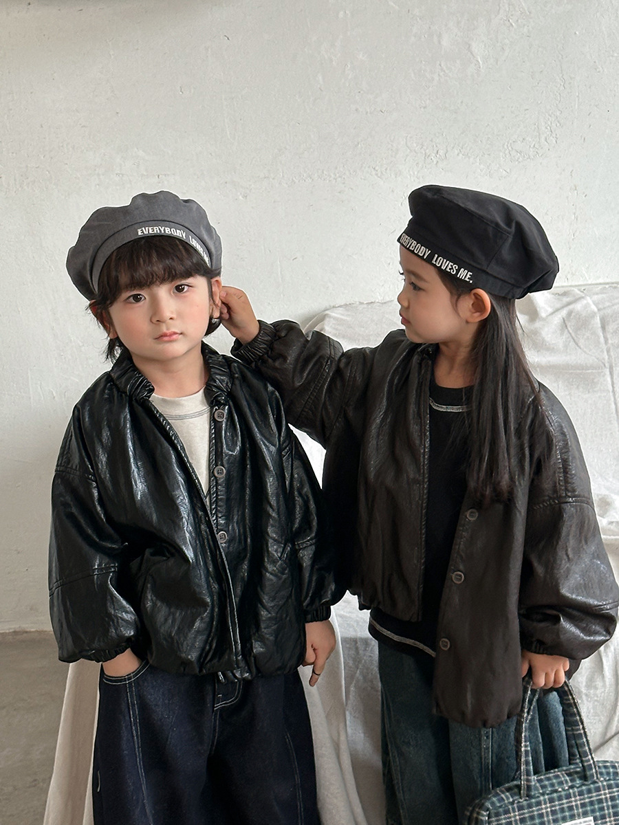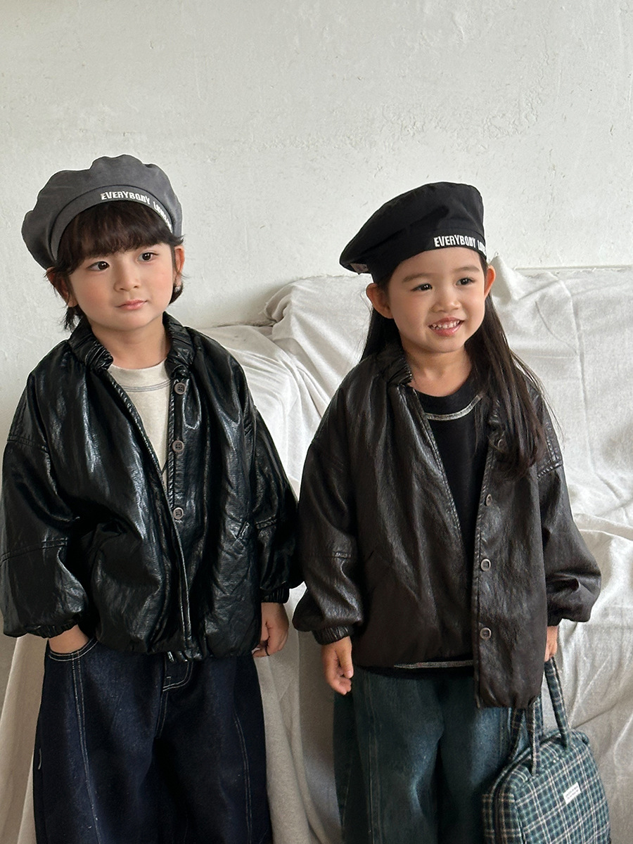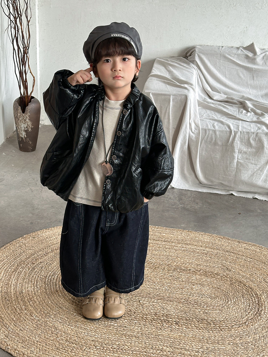 25Q29SE-秋冬兒童棉質復古落肩皮衣外套