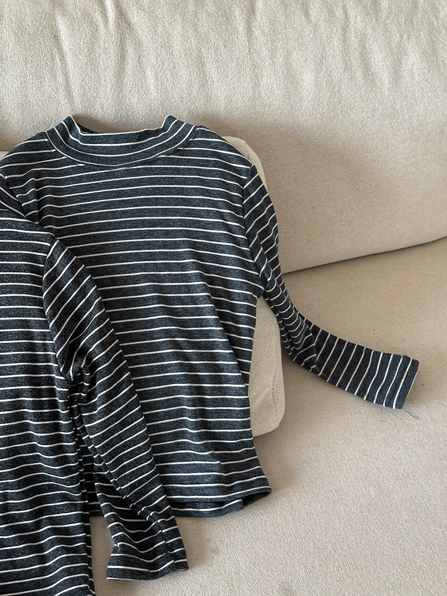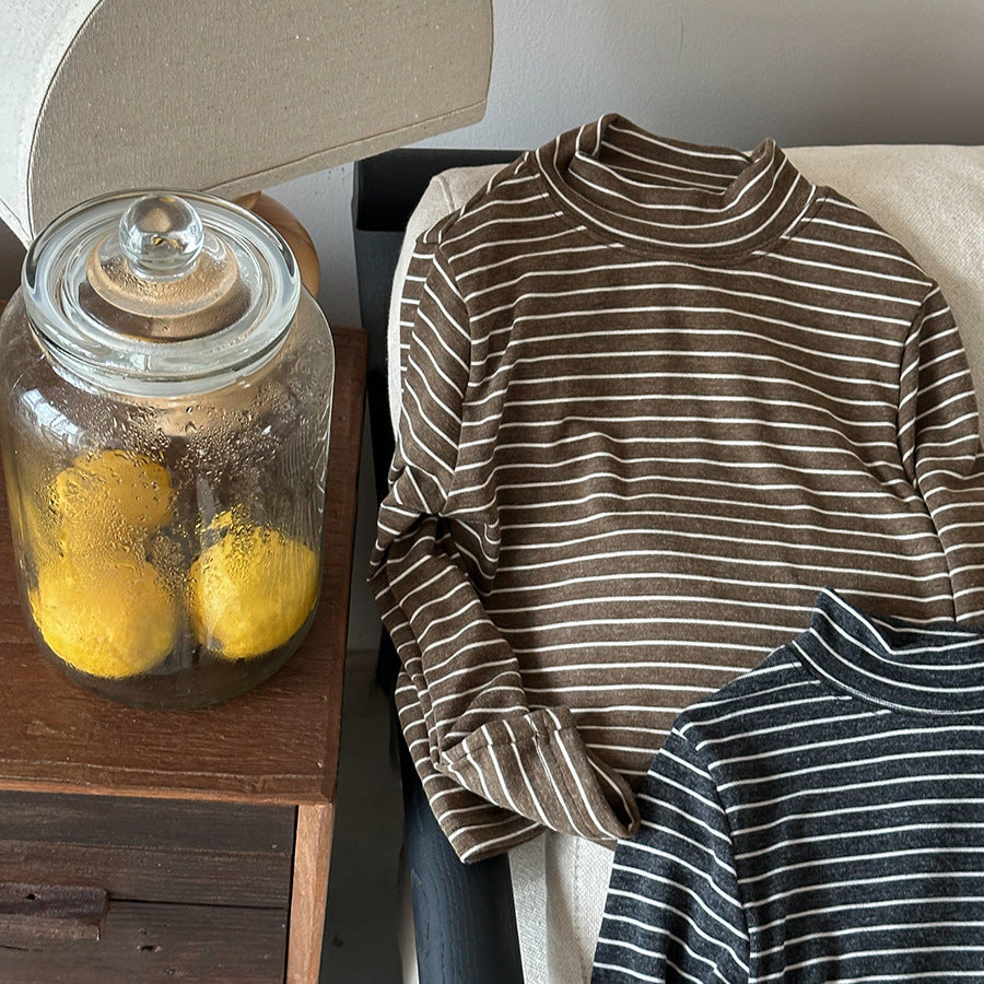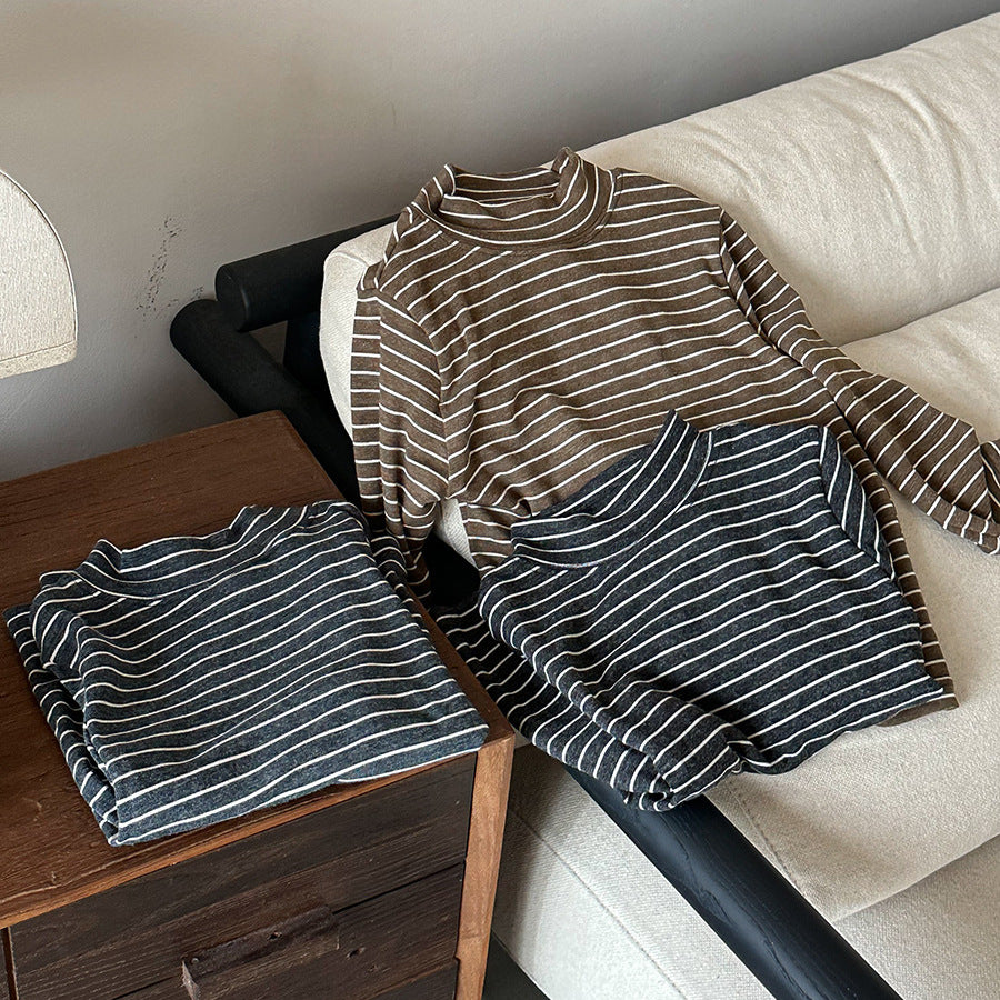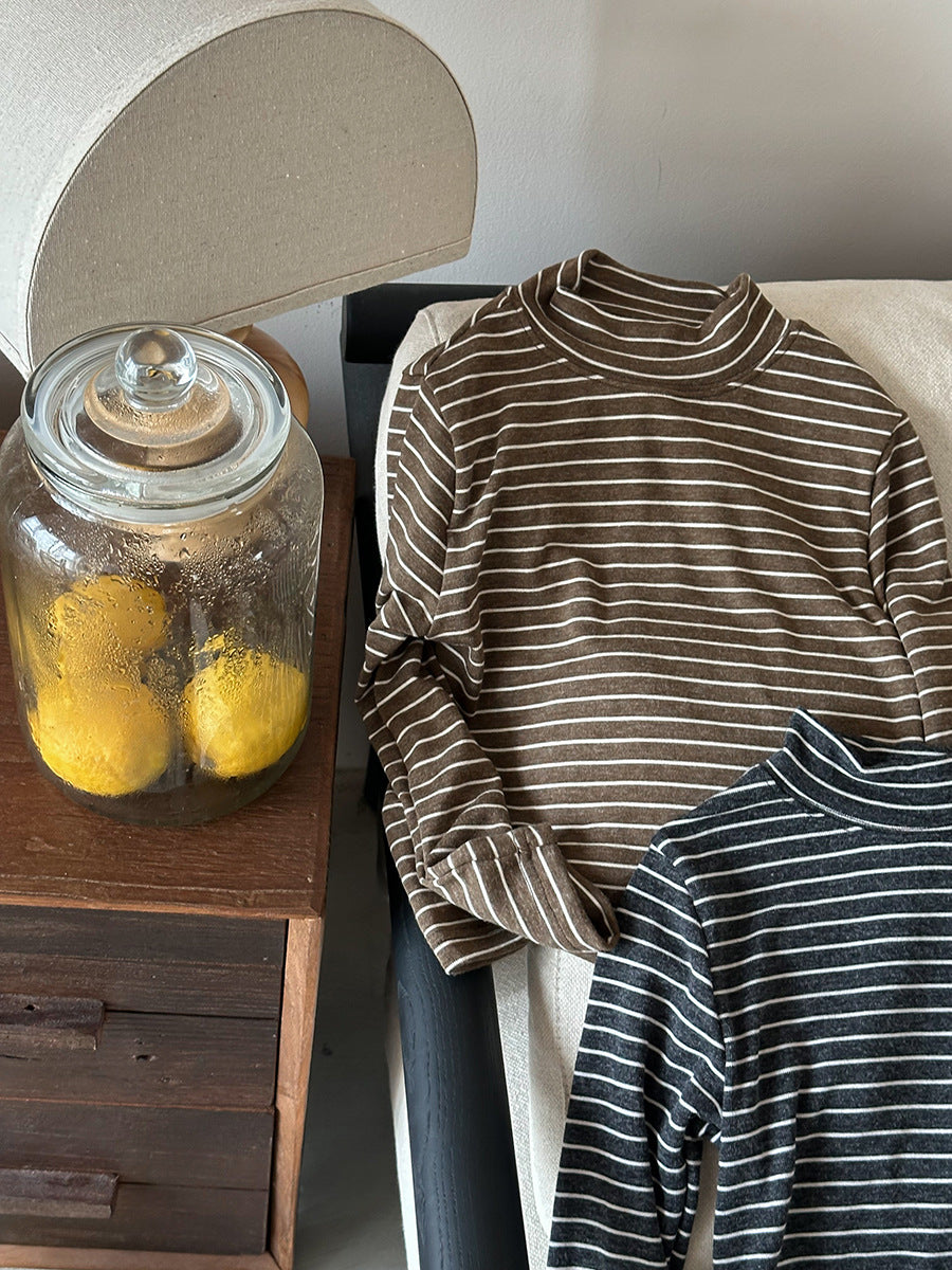 25Q32SE-秋季半高領條紋磨毛內搭上衣
