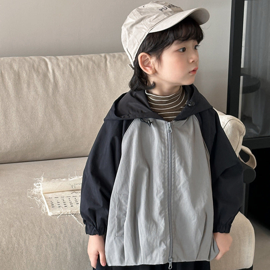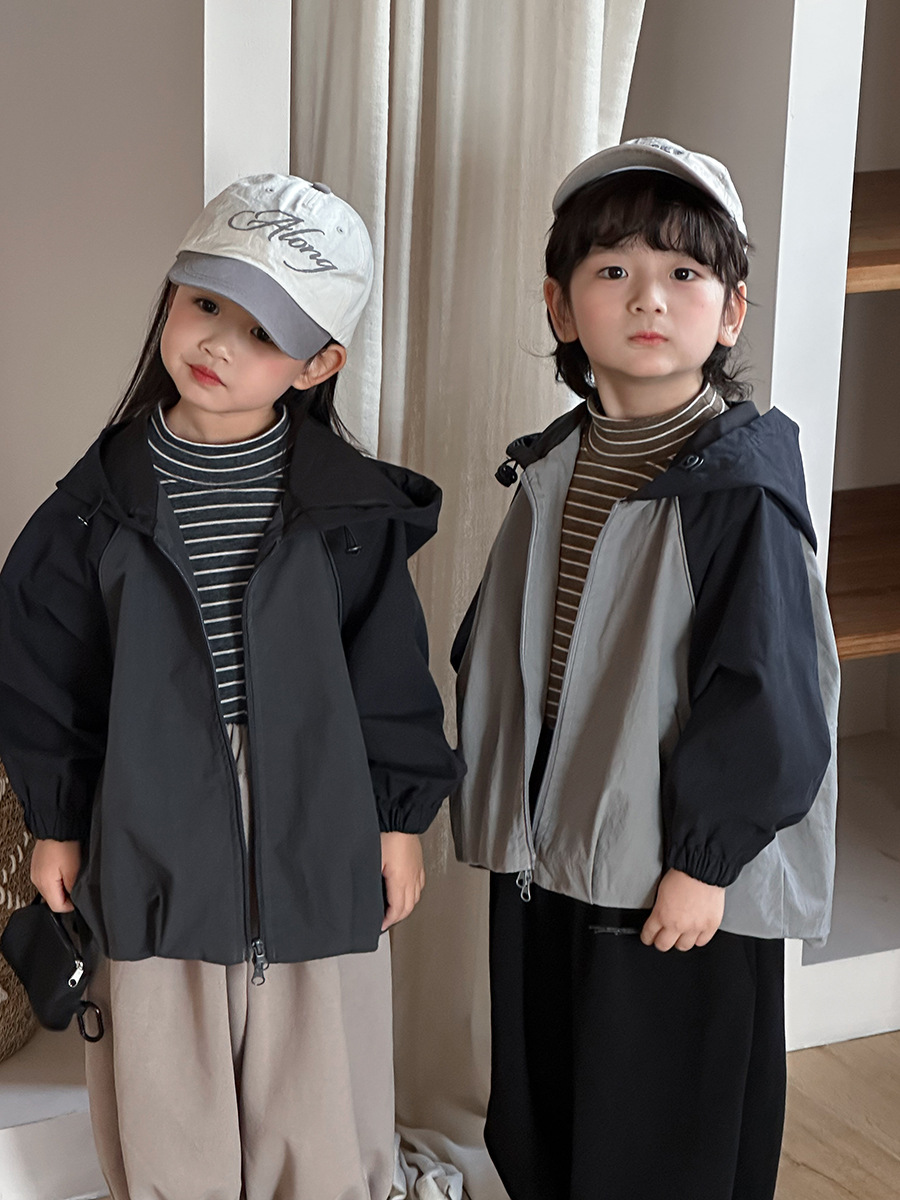25Q49SE-秋季撞色休閒拉鍊連帽外套