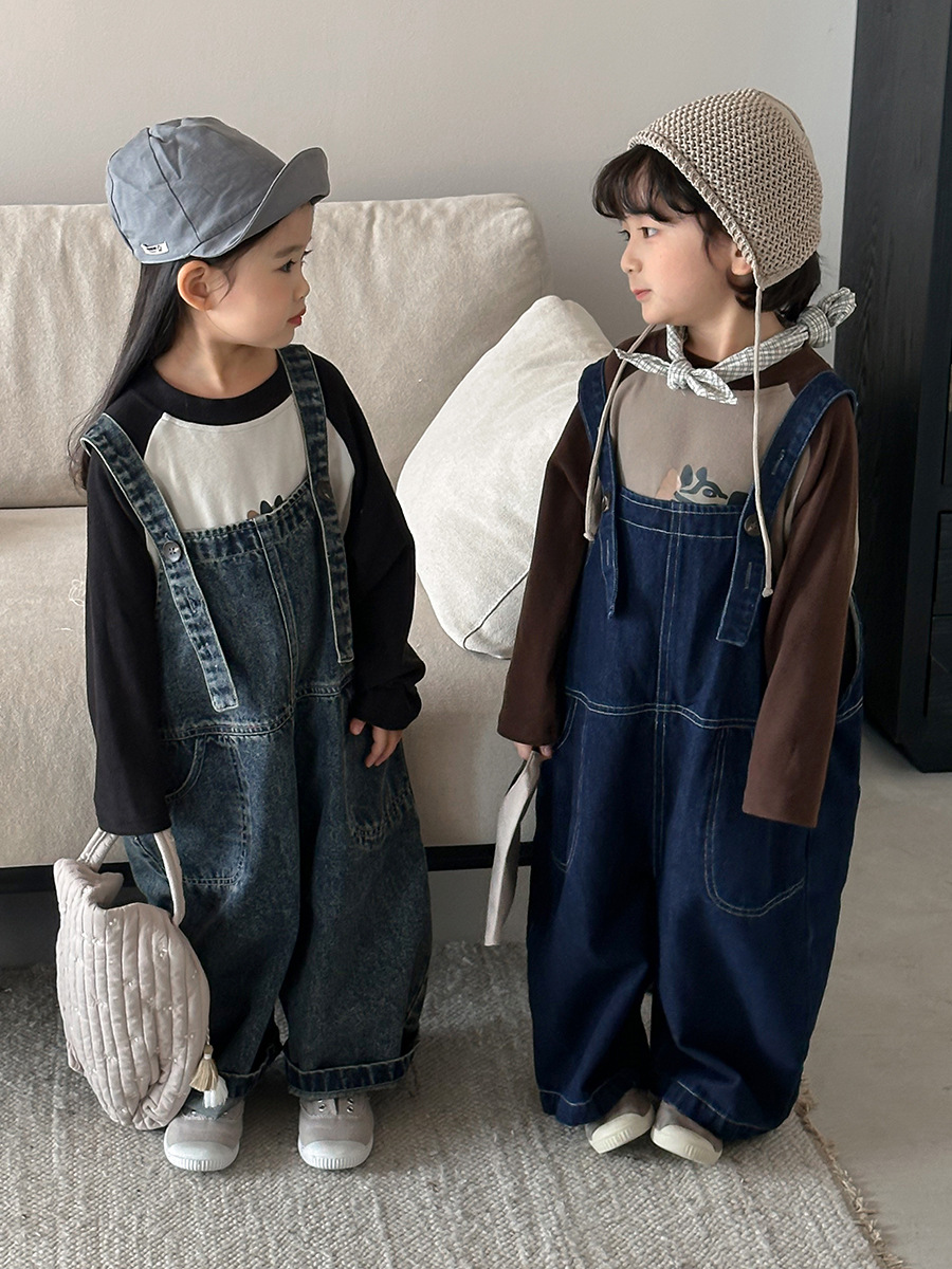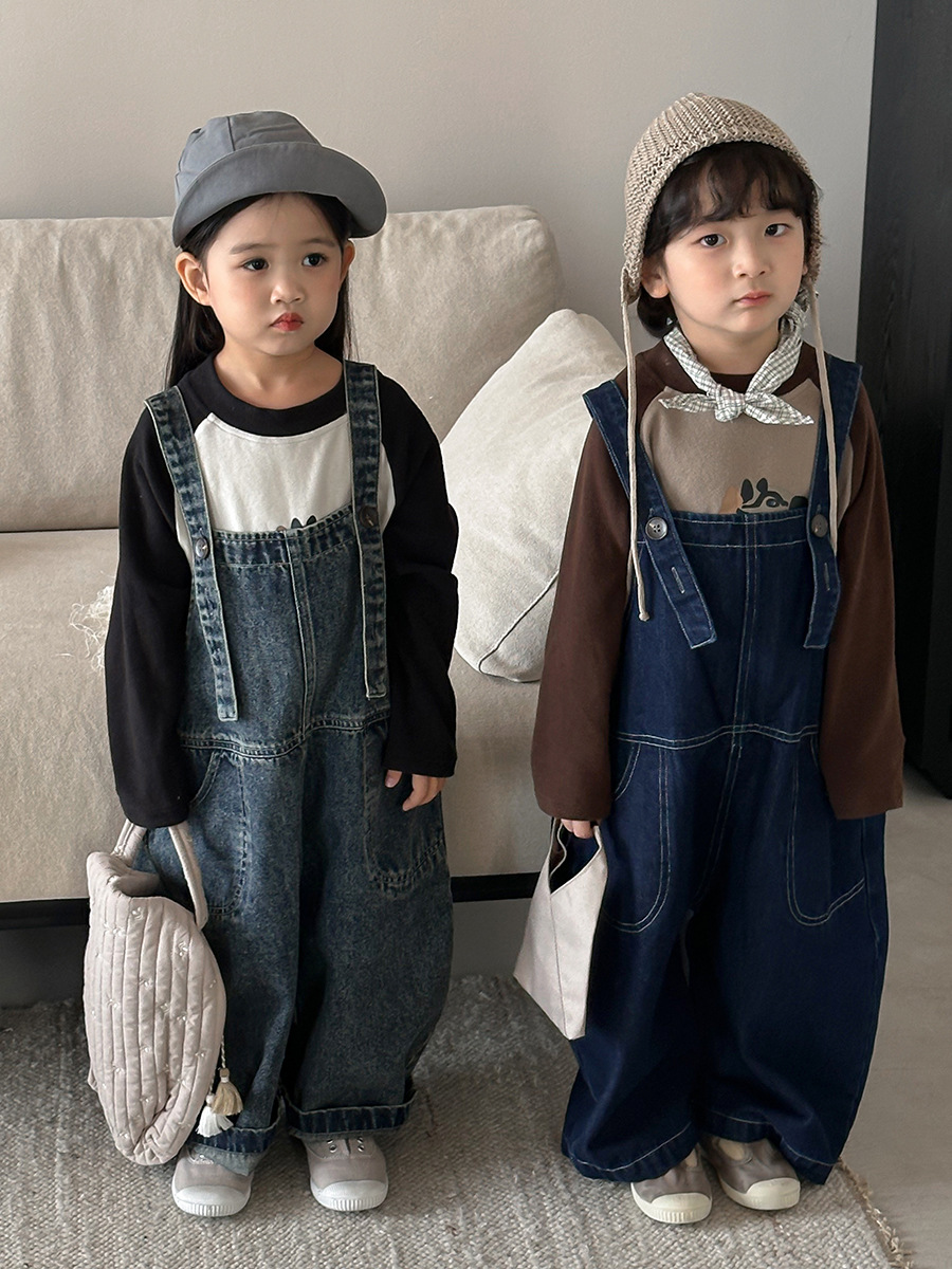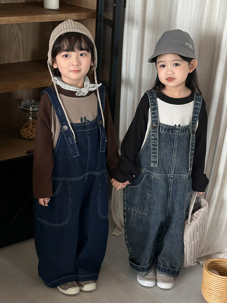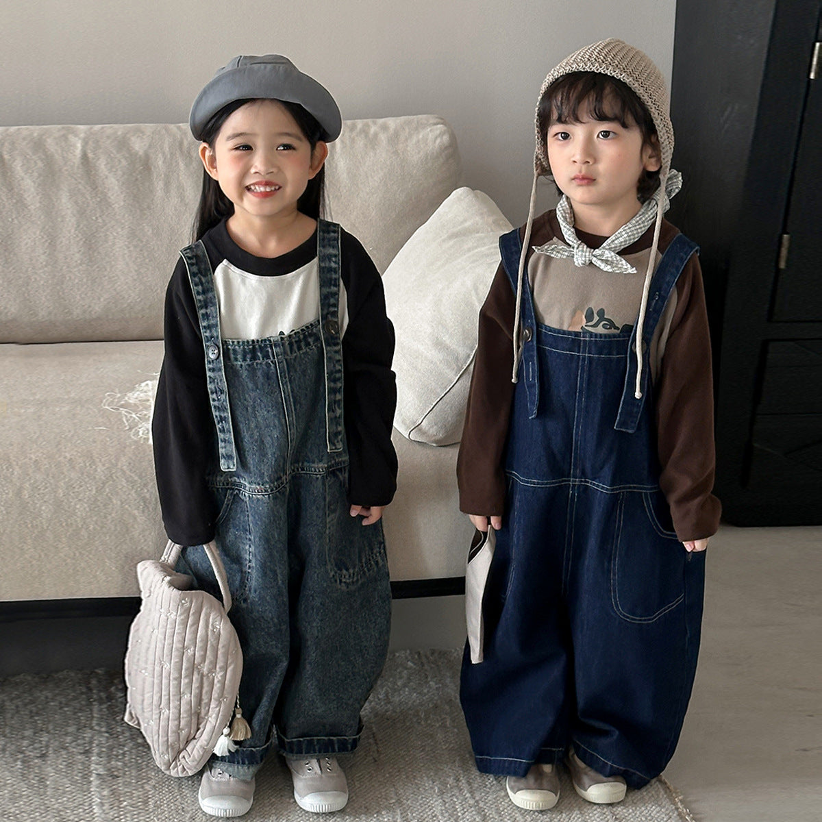 25Q50LS-秋季兒童寬鬆闊腿休閒牛仔吊帶褲