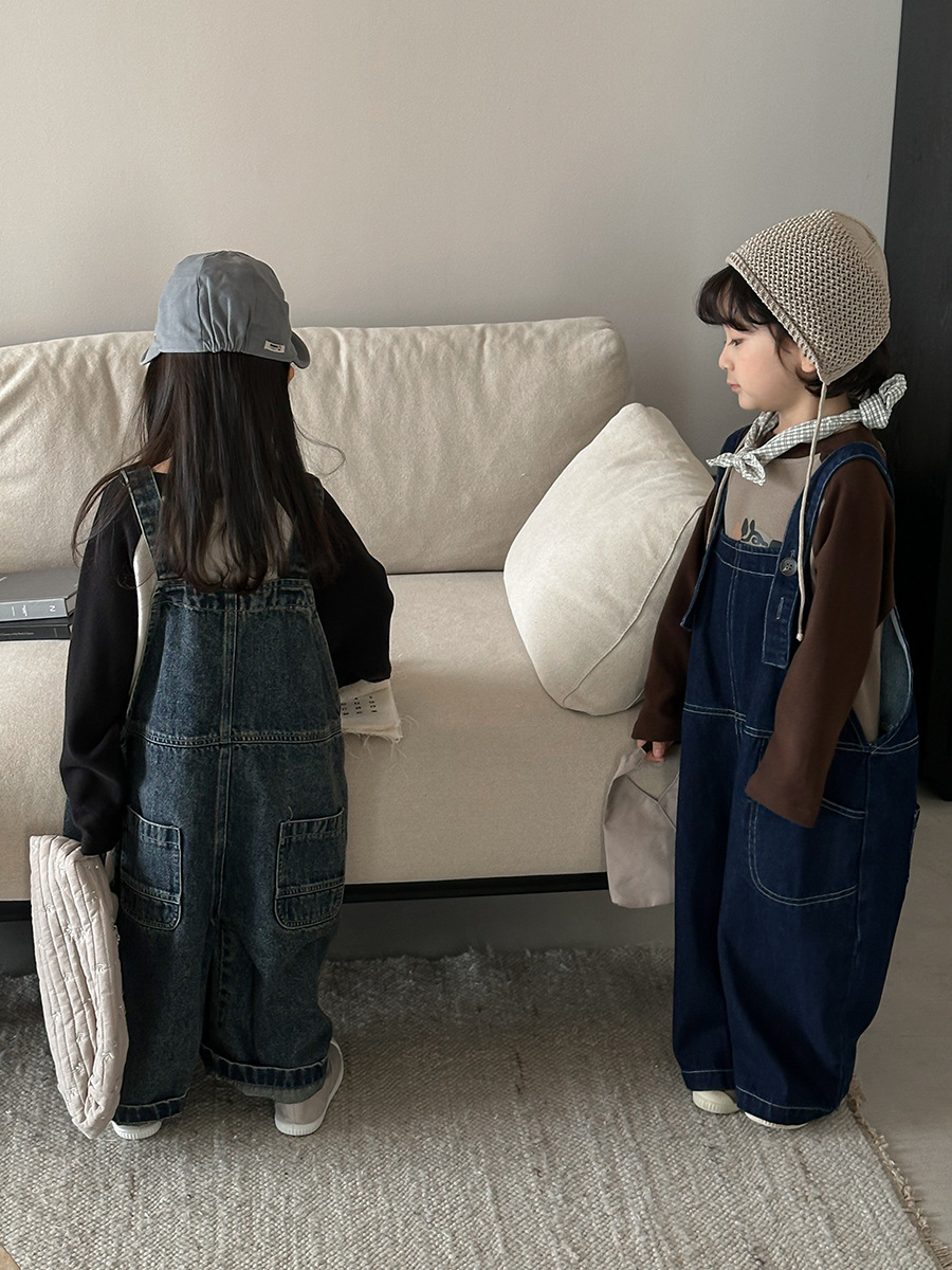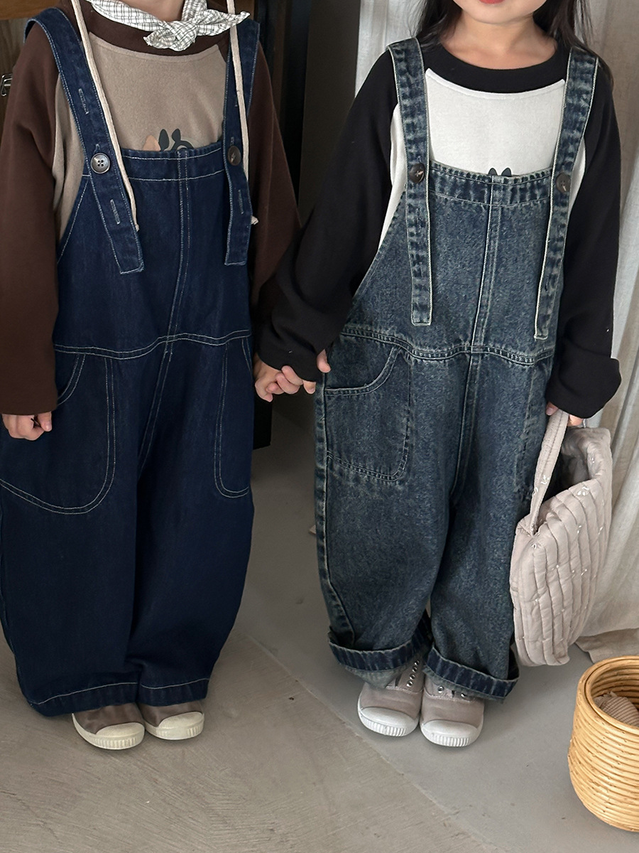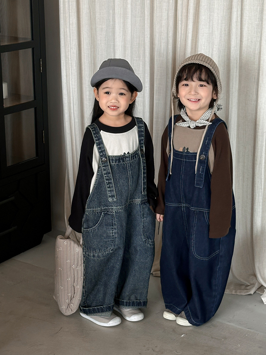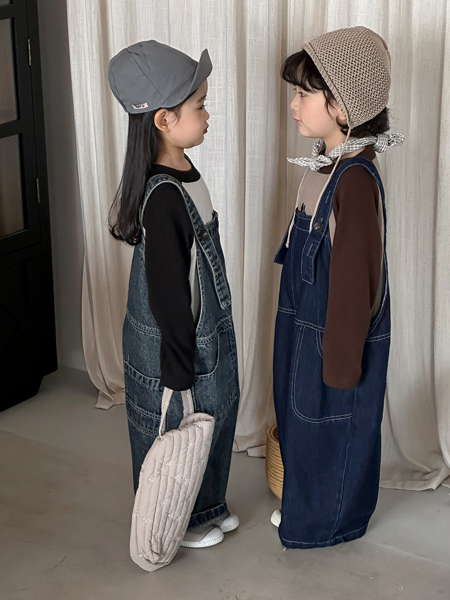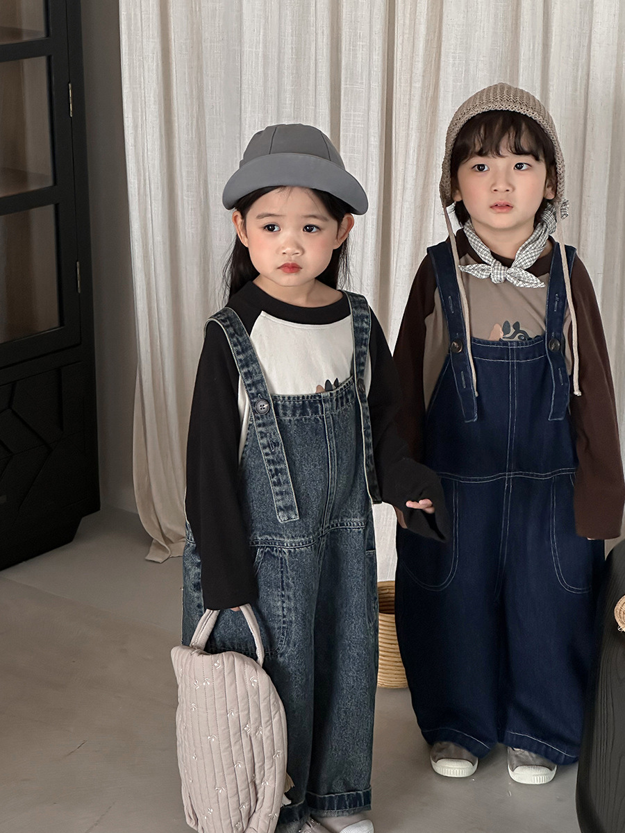 25Q50LS-秋季兒童寬鬆闊腿休閒牛仔吊帶褲
