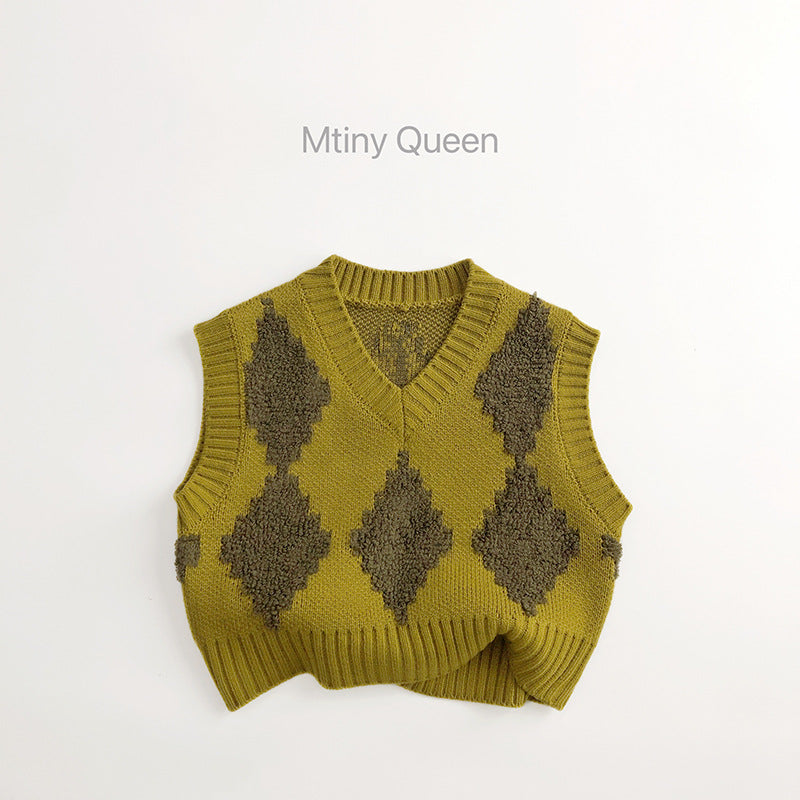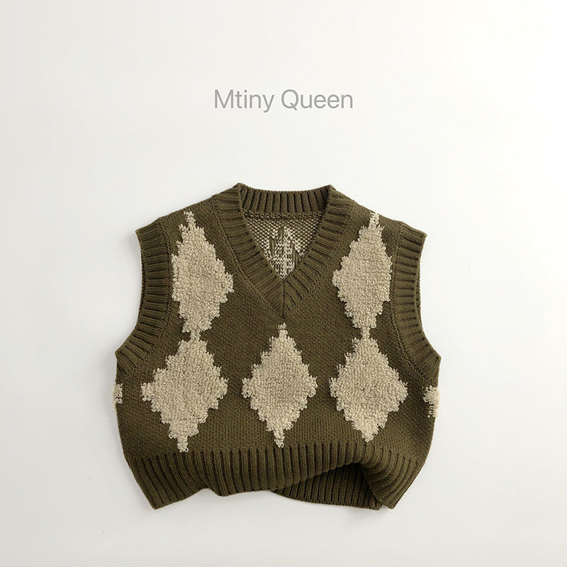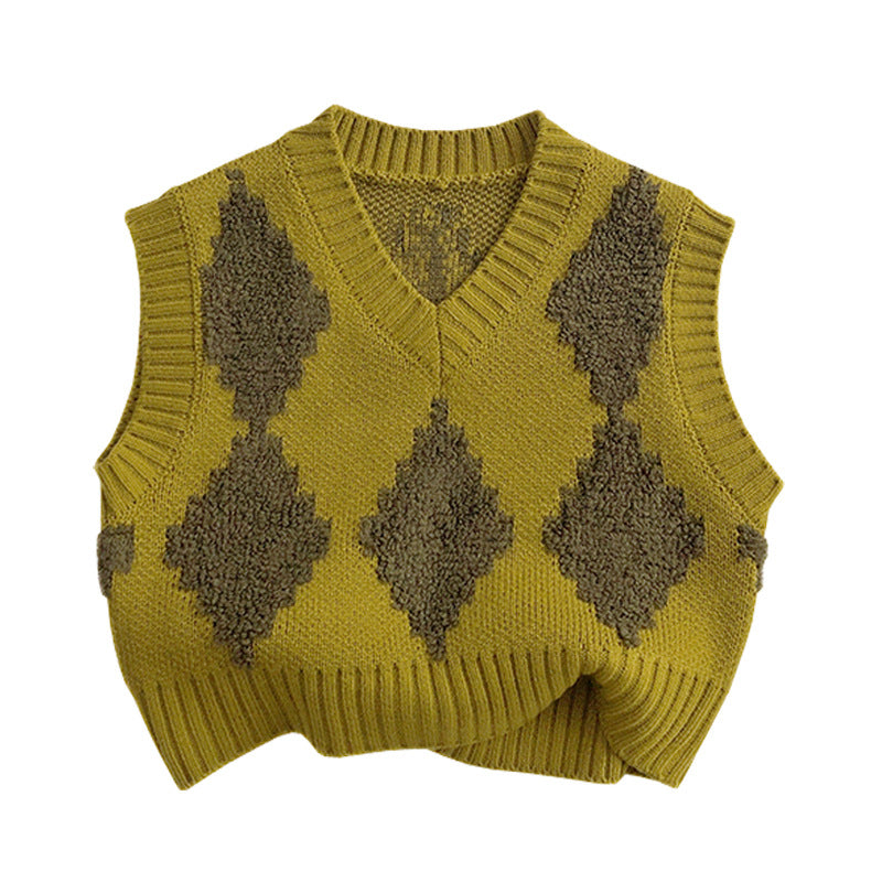 25WJ79SE-春秋菱格針織V領馬甲