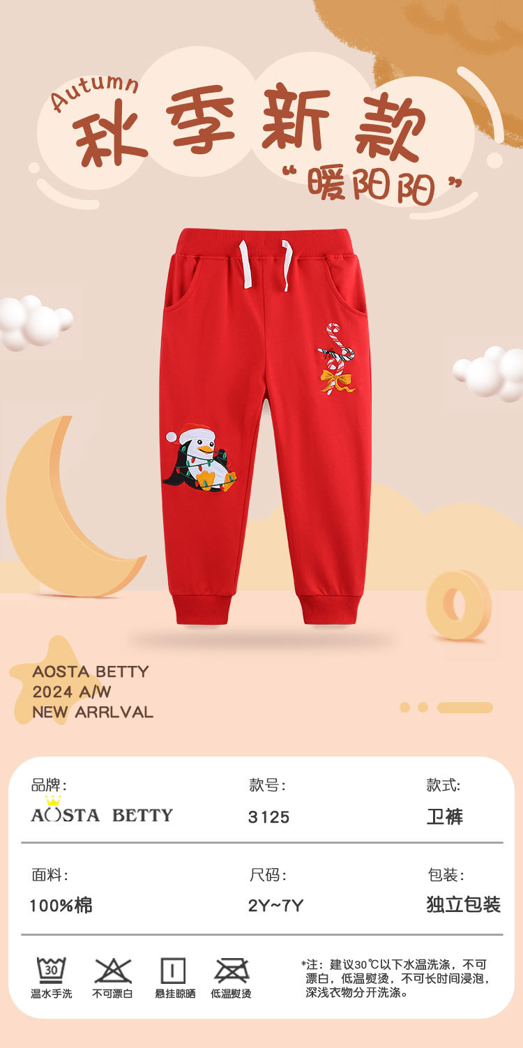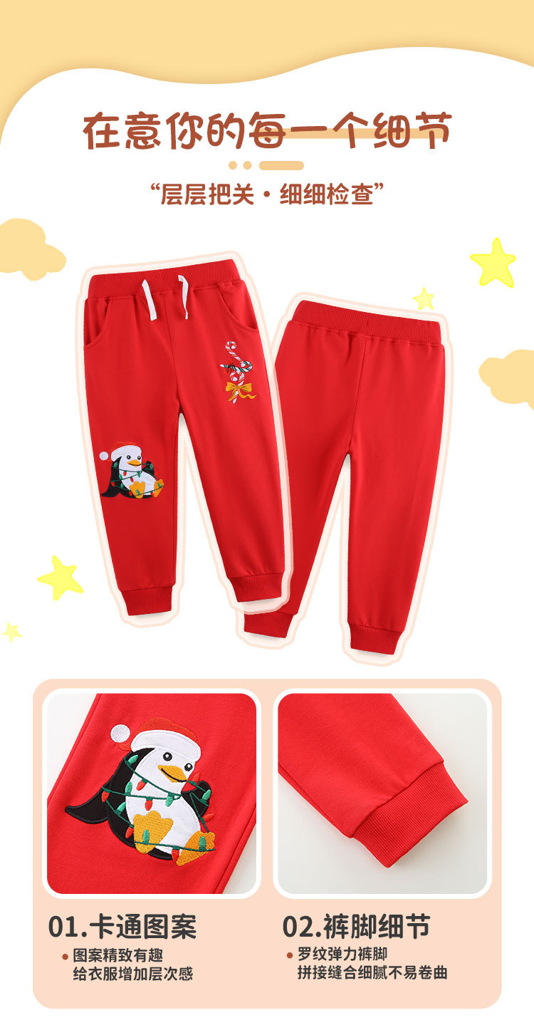 3125PA-Autumn European and American style Christmas embroidered children's trousers