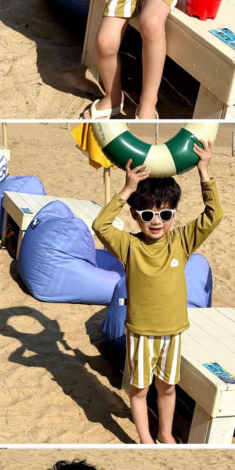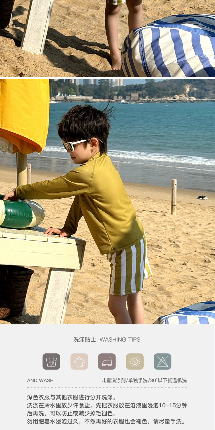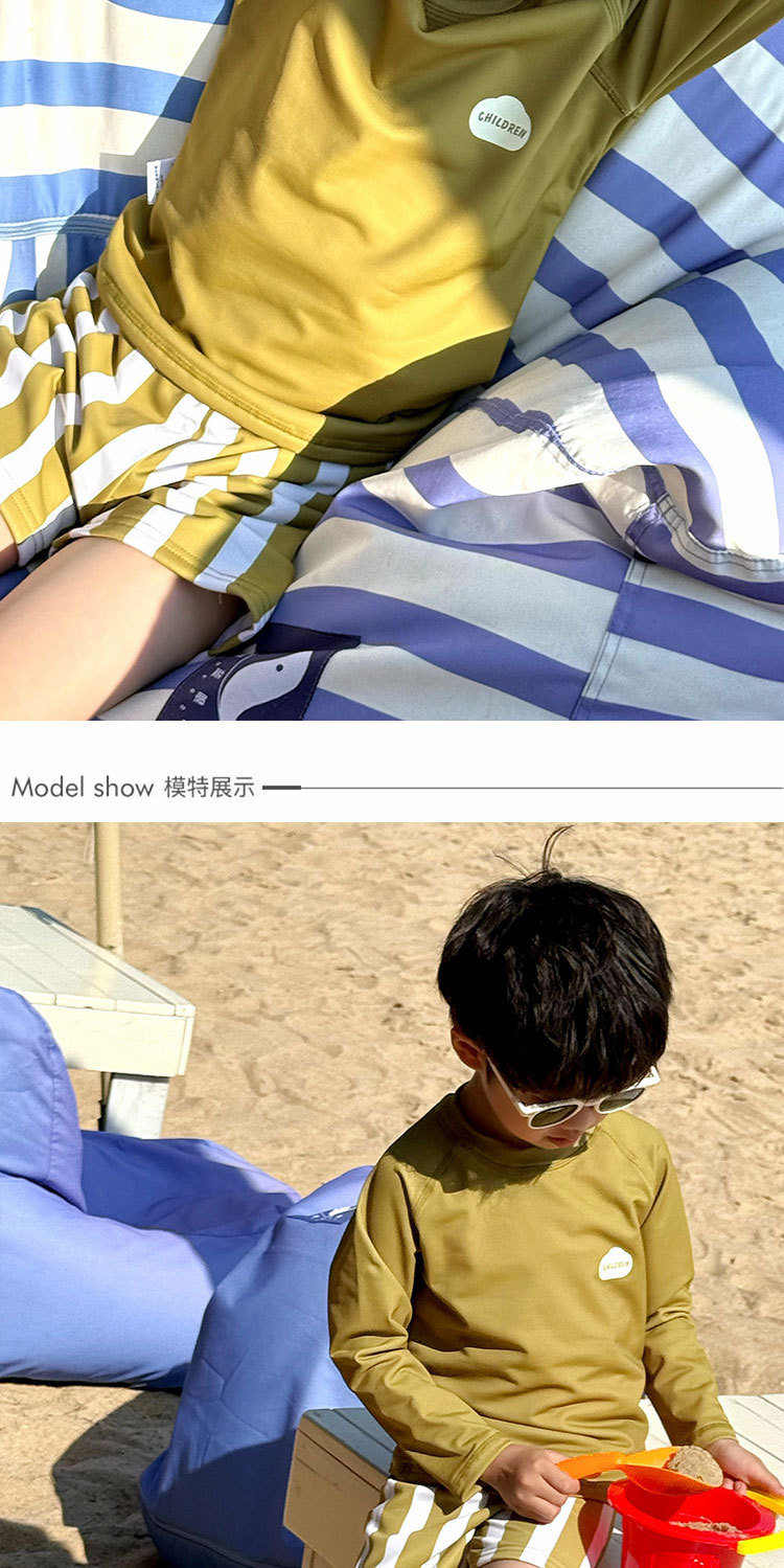 32401TG-Summer long-sleeved sun protection top + shorts leisure hot spring resort quick-drying swimsuit