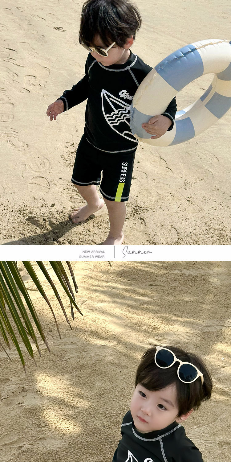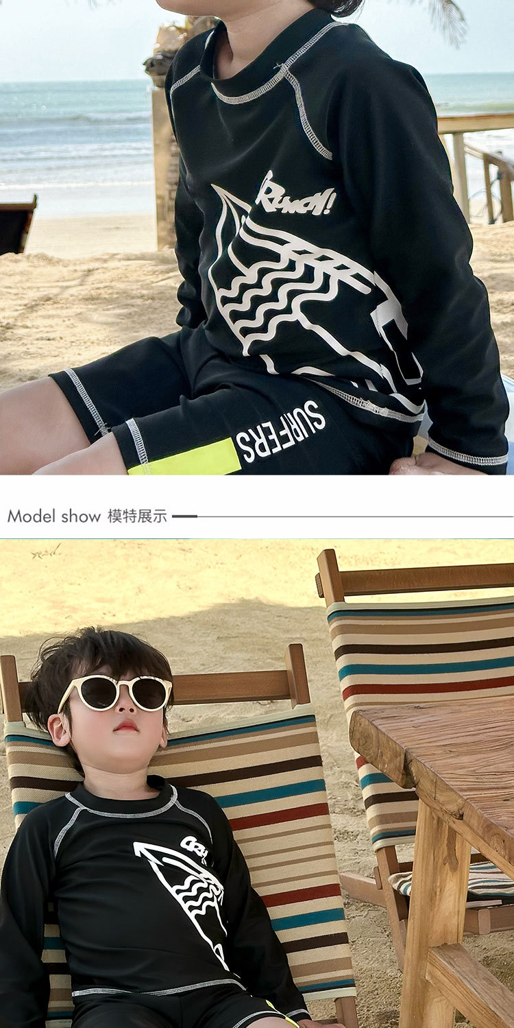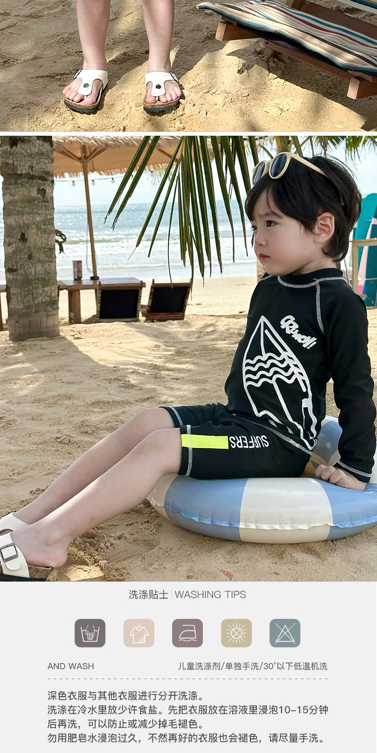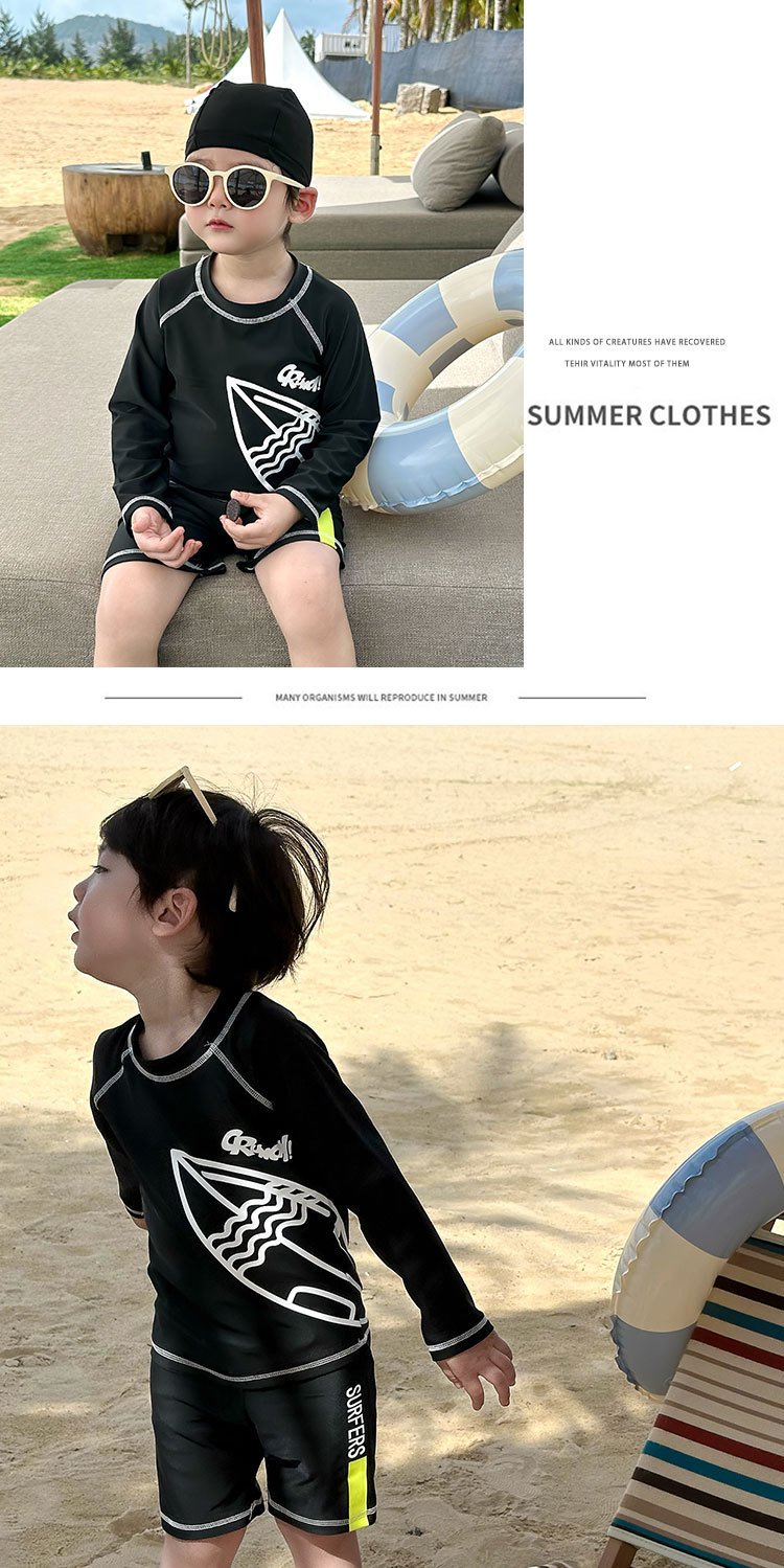 32403TG-Summer children's long-sleeved sun protection swimsuit + swimming trunks sunshade spring beach vacation quick-drying swimsuit