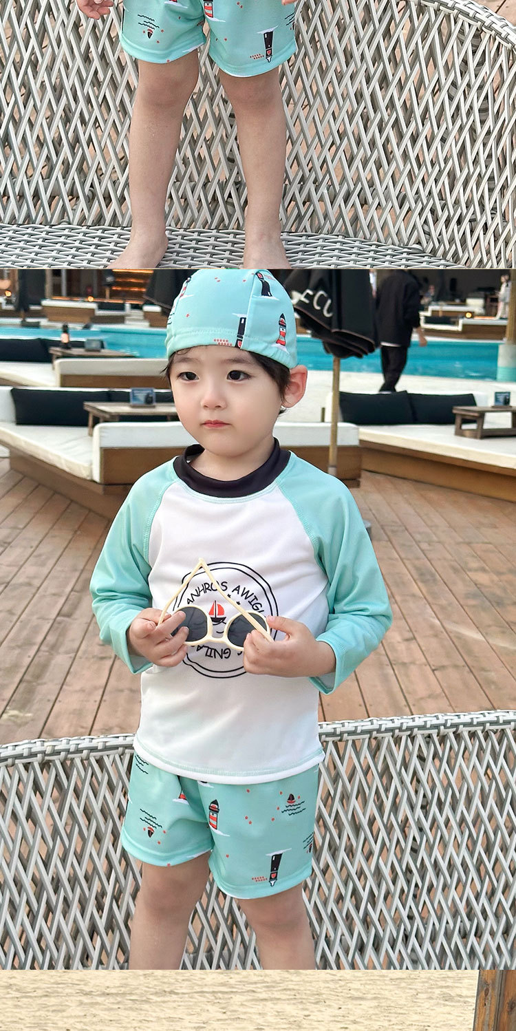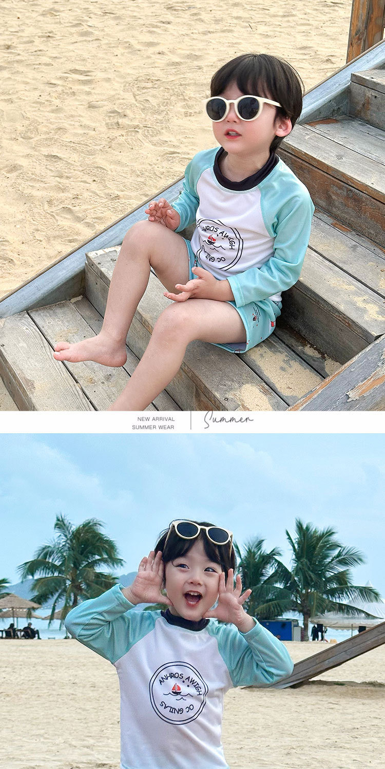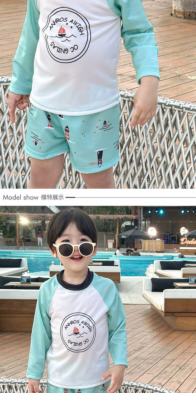 32410TG-Summer children's detachable long-sleeved sun protection top + swimming trunks set