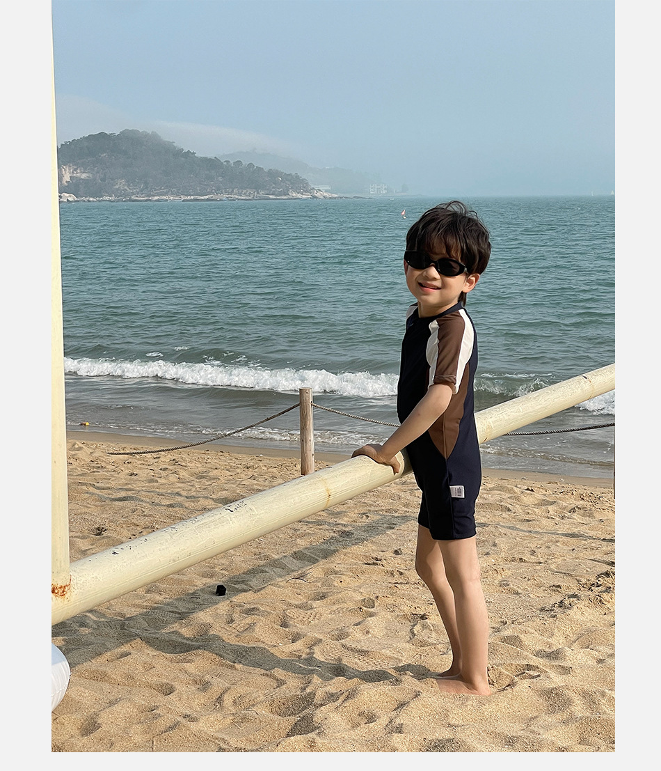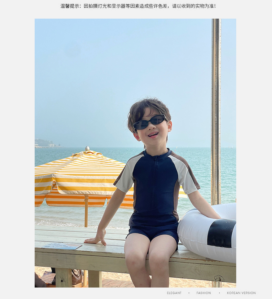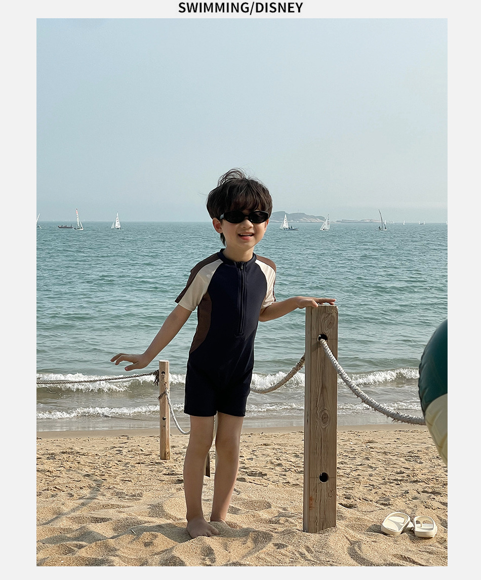 33107LS-Summer children's short-sleeved quick-drying simple one-piece swimsuit